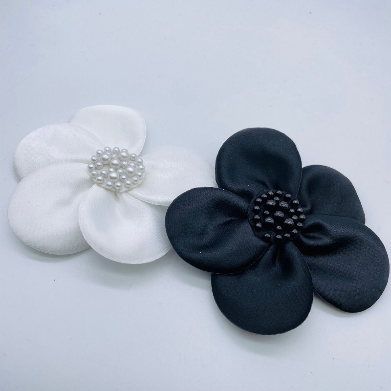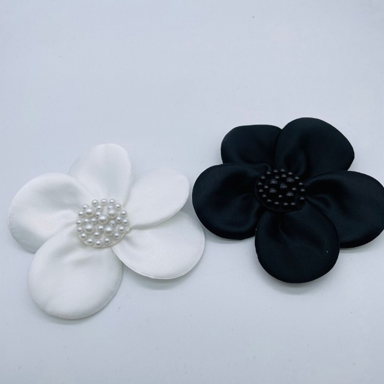 공장 재고 진주 진주 꽃 새틴 코사지 신발 꽃 다섯 꽃잎 꽃 양말 의류 액세서리 DIY 액세서리
