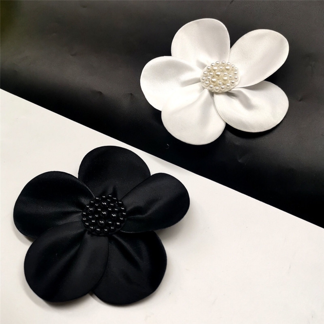 공장 재고 진주 진주 꽃 새틴 코사지 신발 꽃 다섯 꽃잎 꽃 양말 의류 액세서리 DIY 액세서리스토어 가기