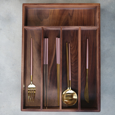 검은 호두 나무 칸막이 식기 문구 잡화 보석 보관 상자 주방 단단한 나무 칼, 포크, 젓가락 및 숟가락 보관 상자스토어 가기