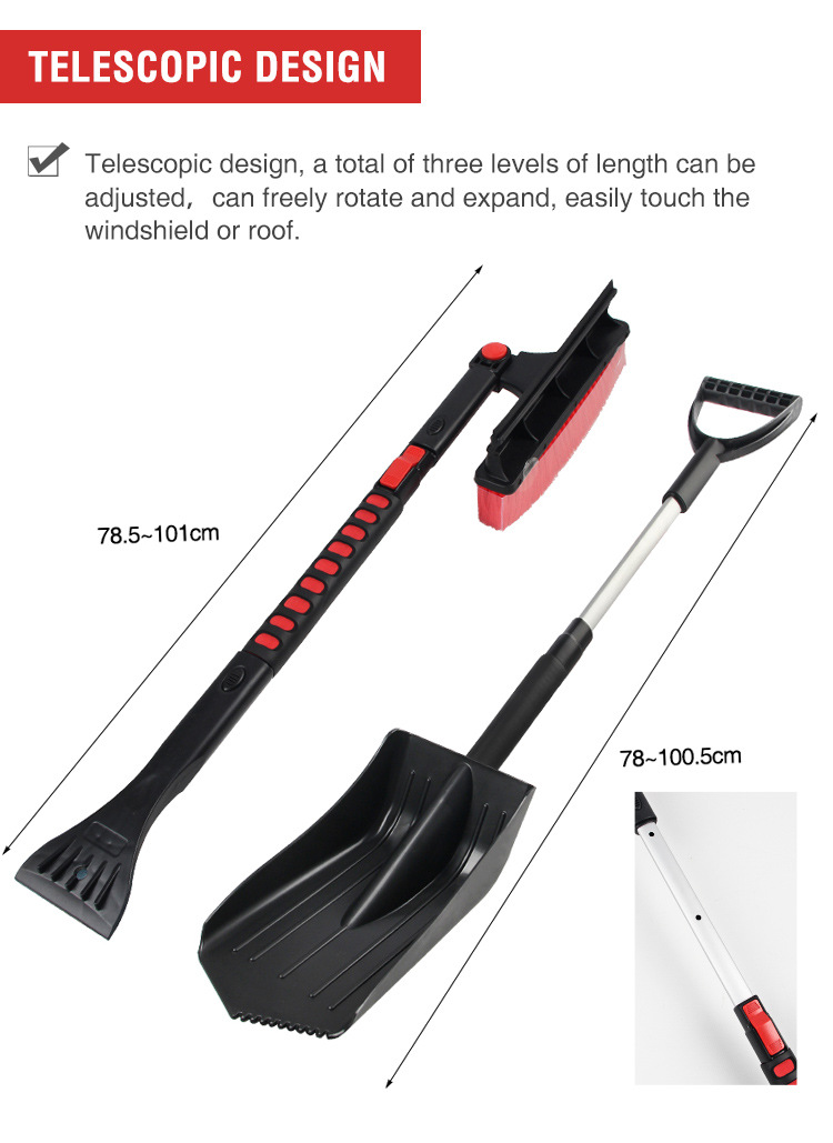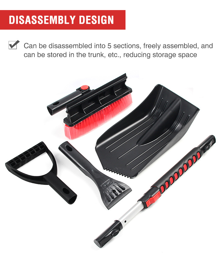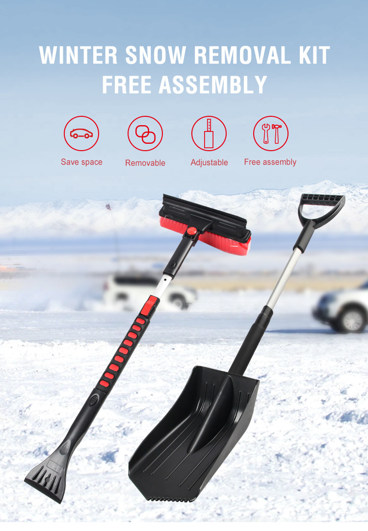 4-in-1 탈착식 겨울 제설 세트 눈 삽 스노우 브러시 얼음 삽 개폐식