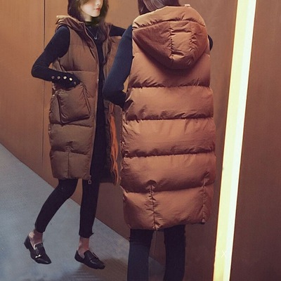 여성을위한 대형 코튼 조끼 가을, 겨울 2025 새로운 두꺼운 후드 겉옷 중간 길이 여성 조끼 자켓스토어 가기