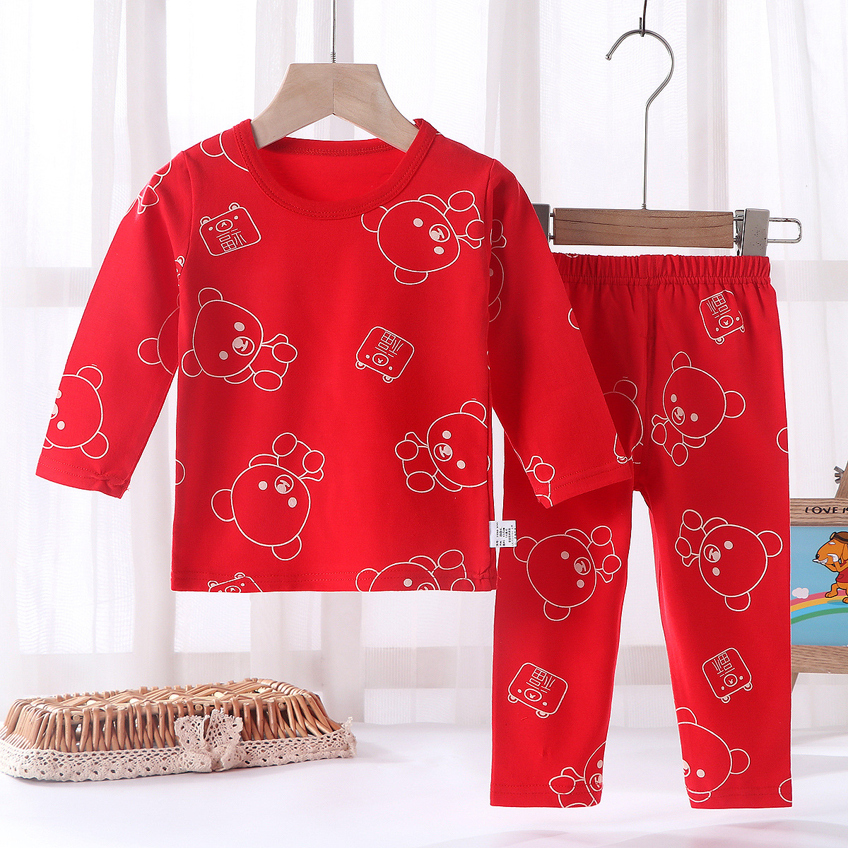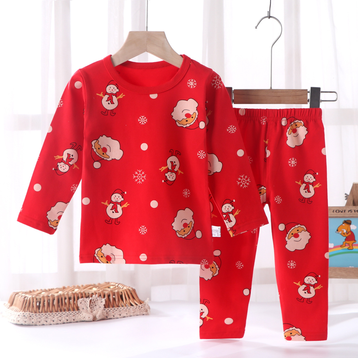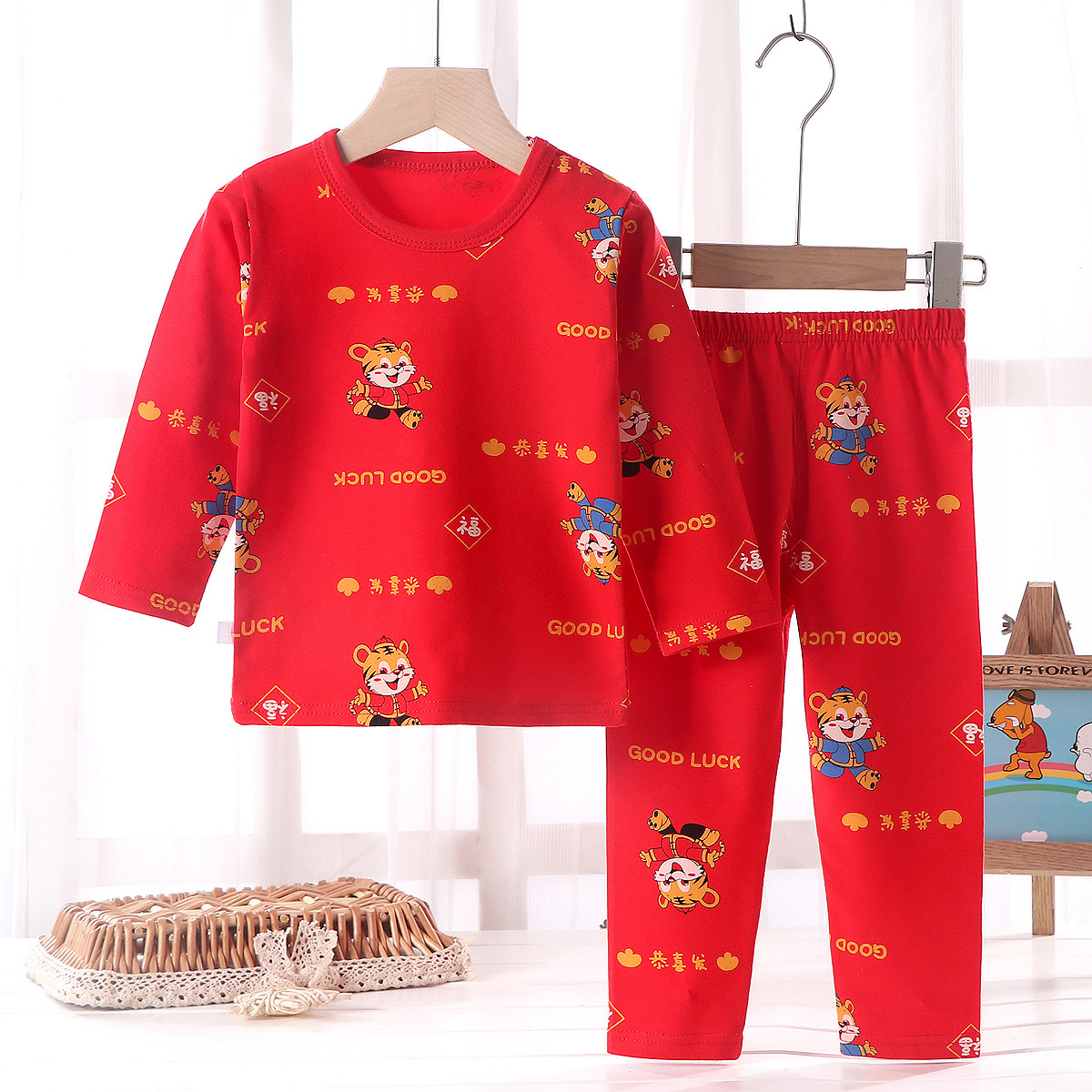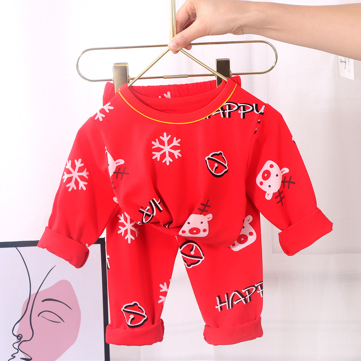 어린이의 새해 축하 큰 빨간 소년과 소녀의 가을 옷 긴 존스 세트 속옷 유아의 새해 옷 인생의 올해