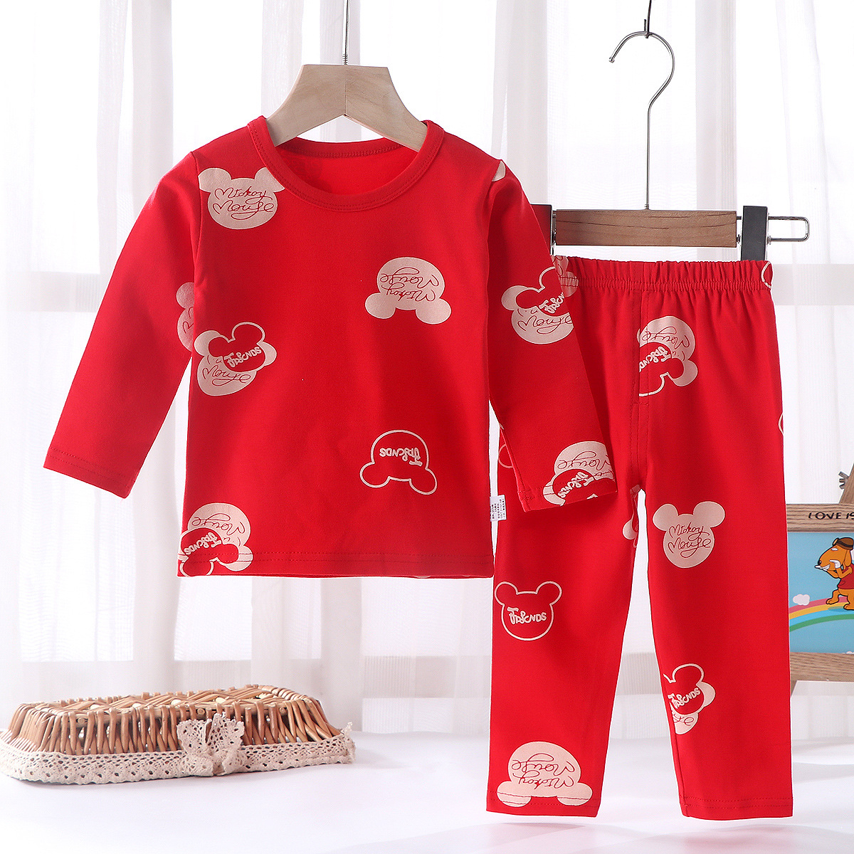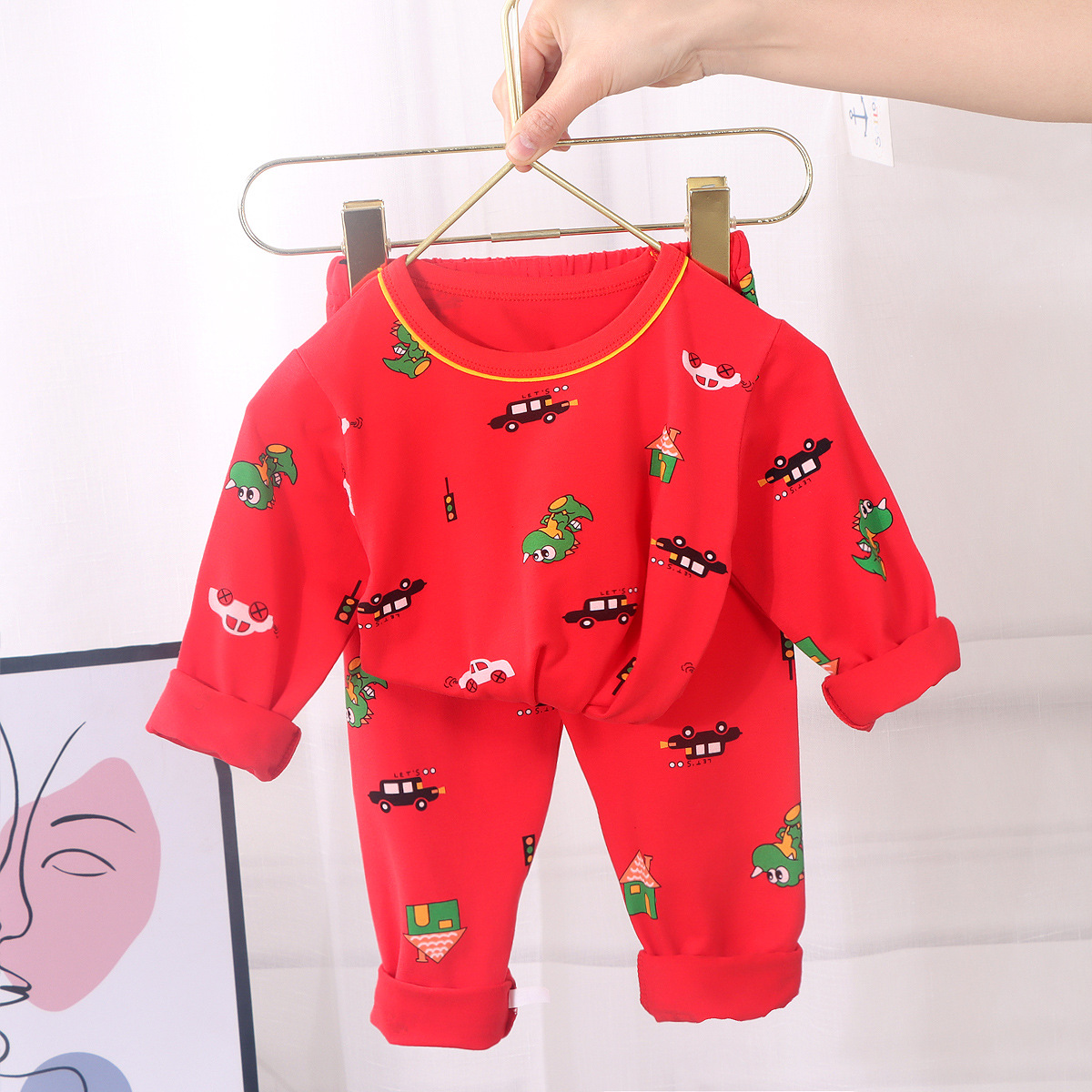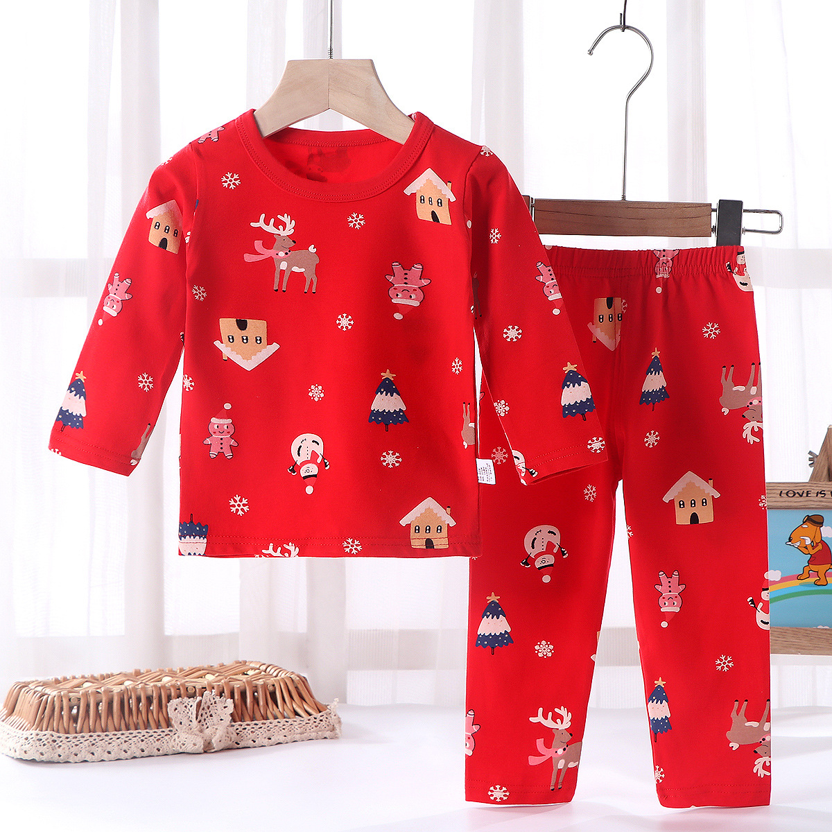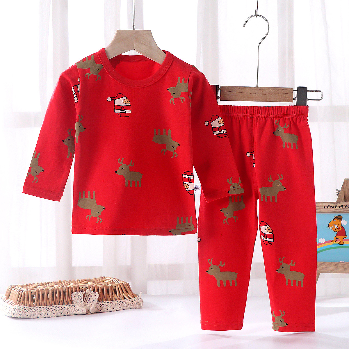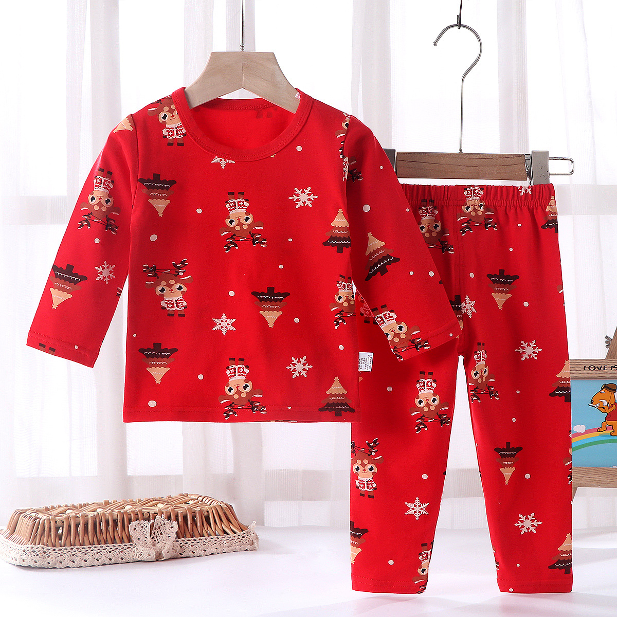 어린이의 새해 축하 큰 빨간 소년과 소녀의 가을 옷 긴 존스 세트 속옷 유아의 새해 옷 인생의 올해