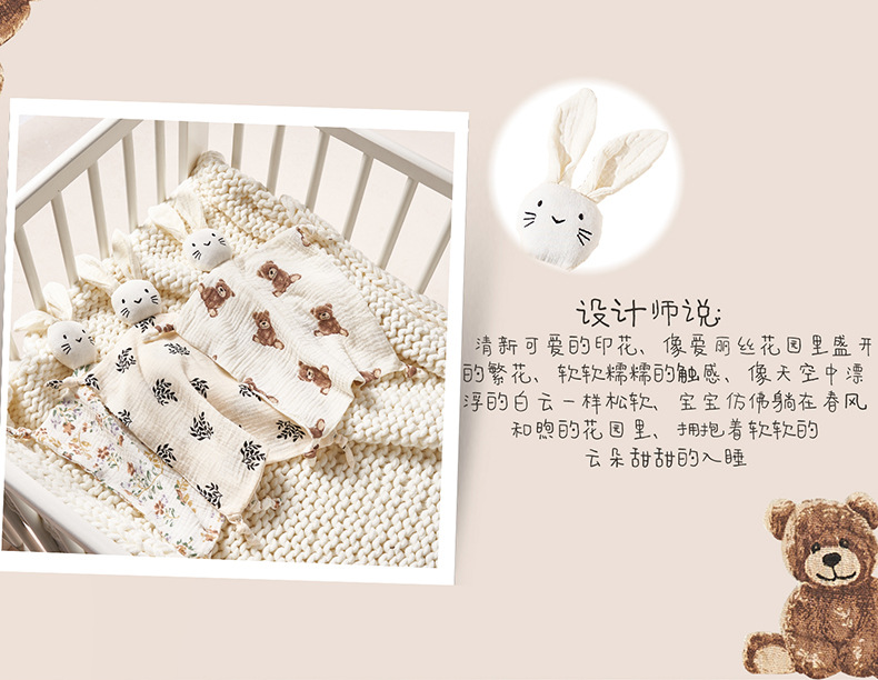 跨境婴儿纯棉纱布安抚巾宝宝陪睡玩偶兔子安抚手帕安抚玩具