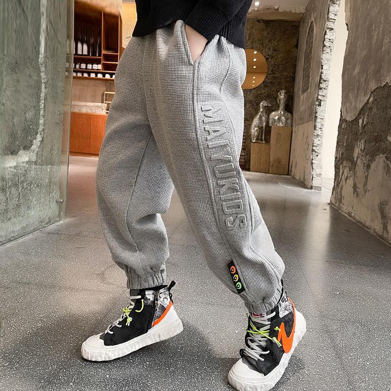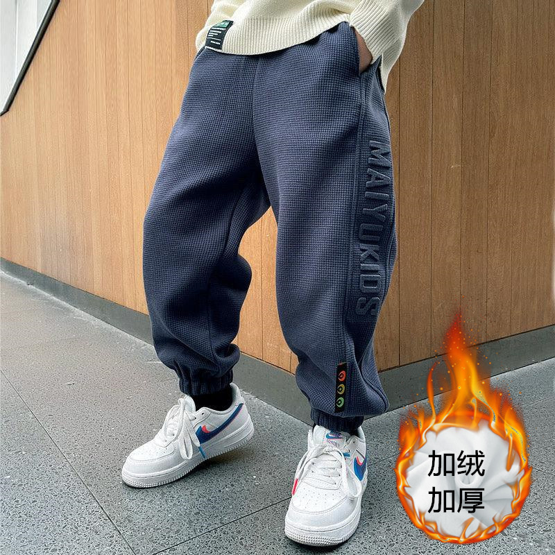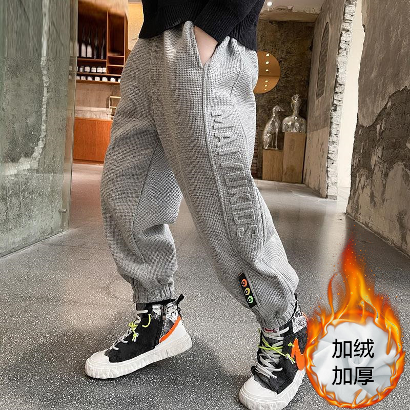 가을 겨울 남아용 바지, 기모 안감 두꺼운 중대형 아동용 일체형 기모 하렘 팬츠, 아동 캐주얼 팬츠, 남아용 스포츠 팬츠스토어 가기