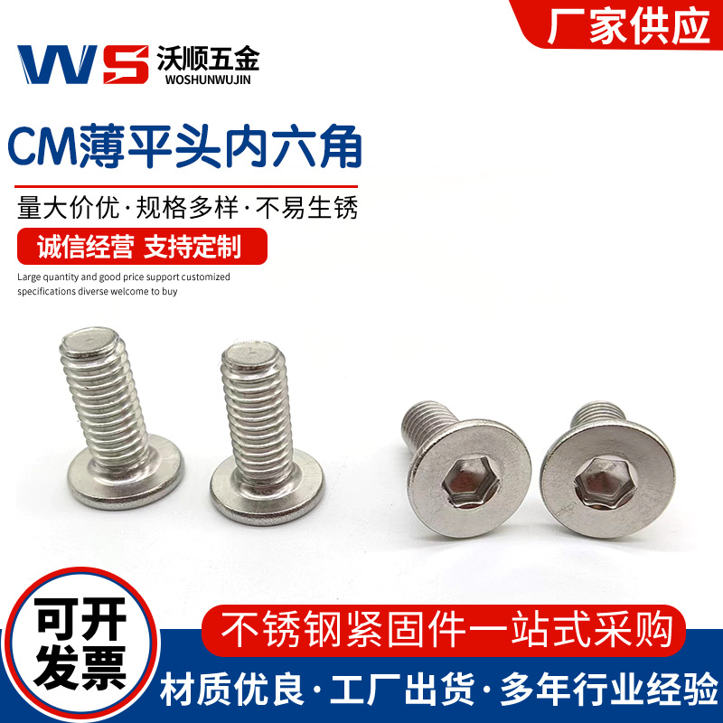 304 스테인레스 스틸 얇은 플랫 헤드 육각 소켓 머신 나사 플랫 헤드 육각 와이어 CM 헤드 나사 M2-M8 재고