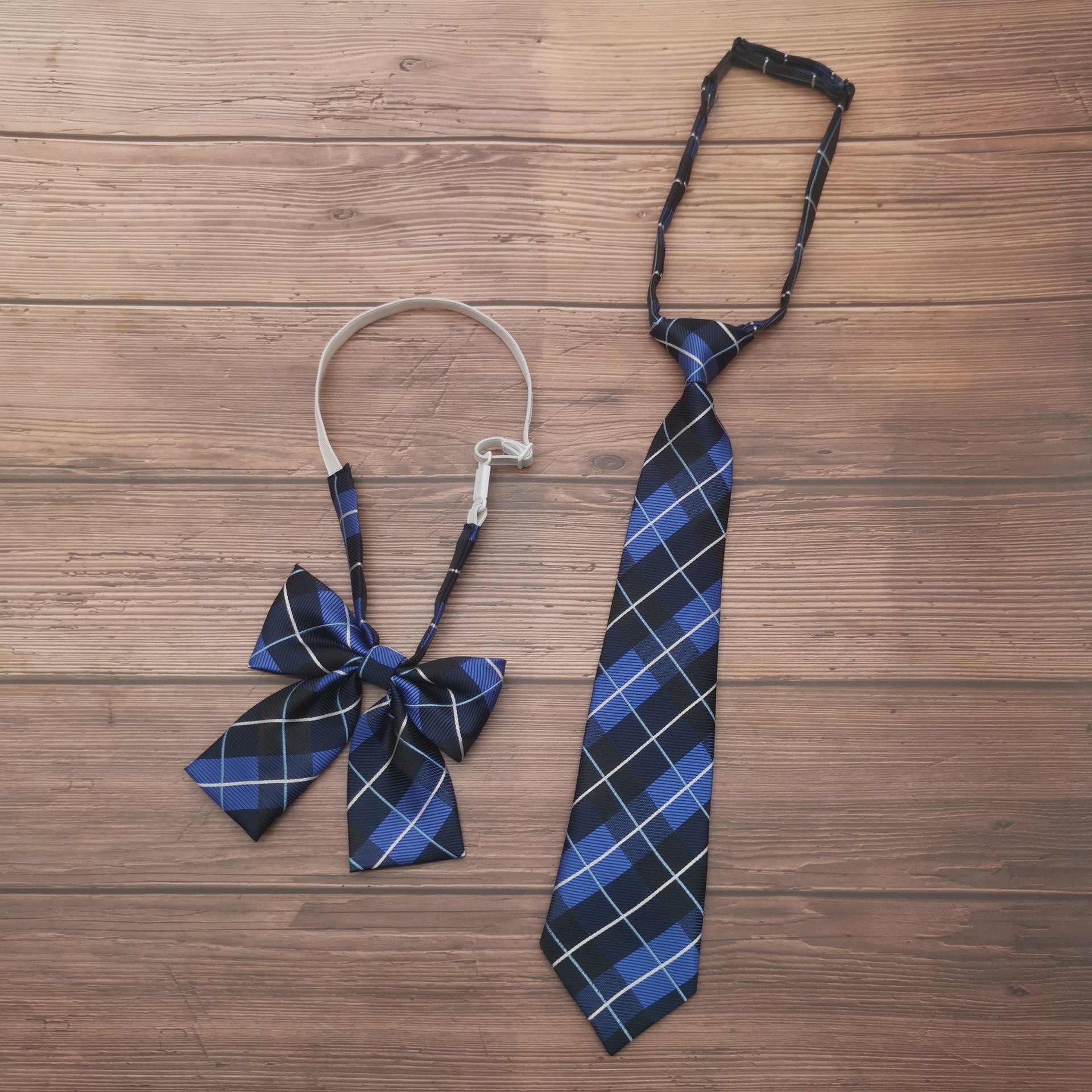 블루 스코틀랜드 메쉬 jk 작은 넥타이 tb 게으른 세트 남성 한국식 대학 스타일 학생 넥타이없는 여성 패션