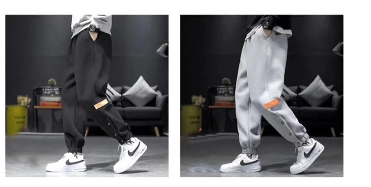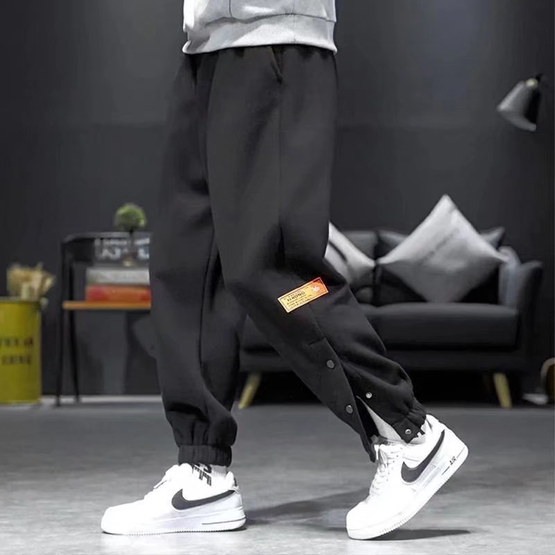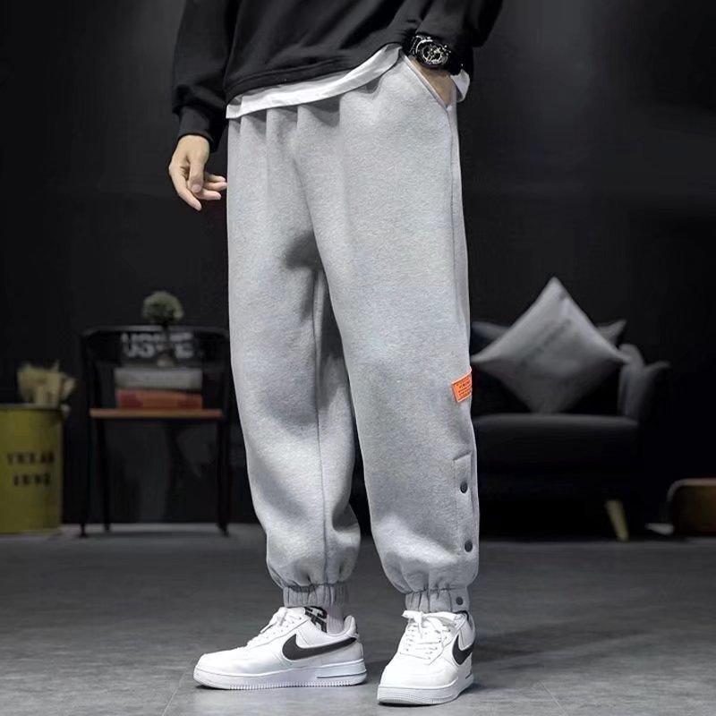 남성용 캐주얼 팬츠 가을 겨울 신상 한국 스타일 루즈핏 트렌디 스포츠 팬츠 남성용 버튼 장식 패션 레깅스 팬츠 도매