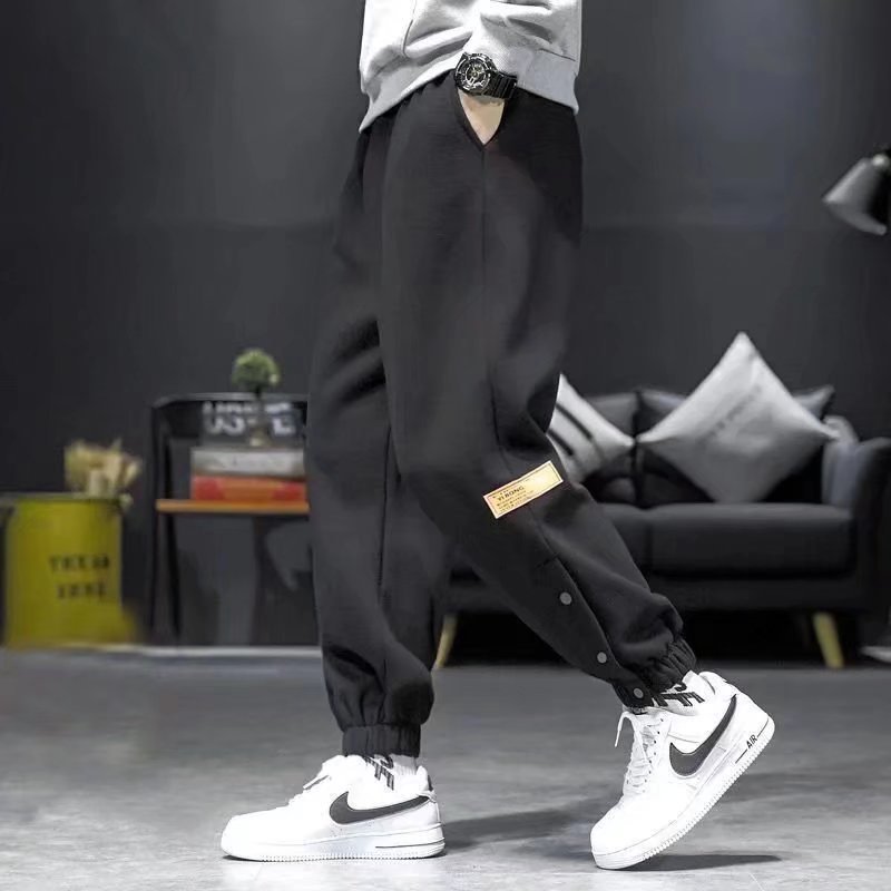 남성용 캐주얼 팬츠 가을 겨울 신상 한국 스타일 루즈핏 트렌디 스포츠 팬츠 남성용 버튼 장식 패션 레깅스 팬츠 도매스토어 가기