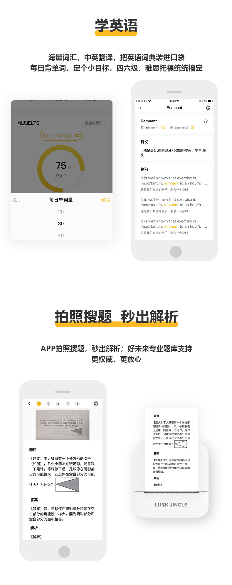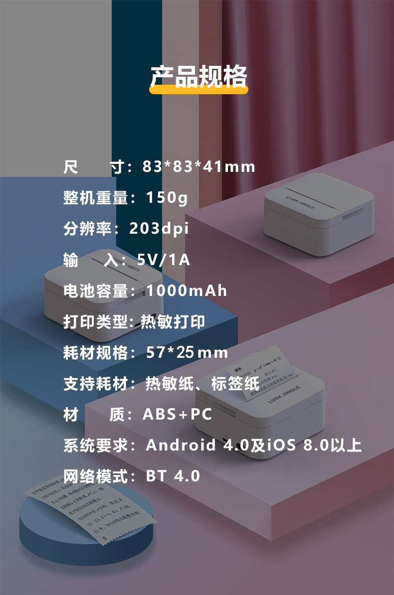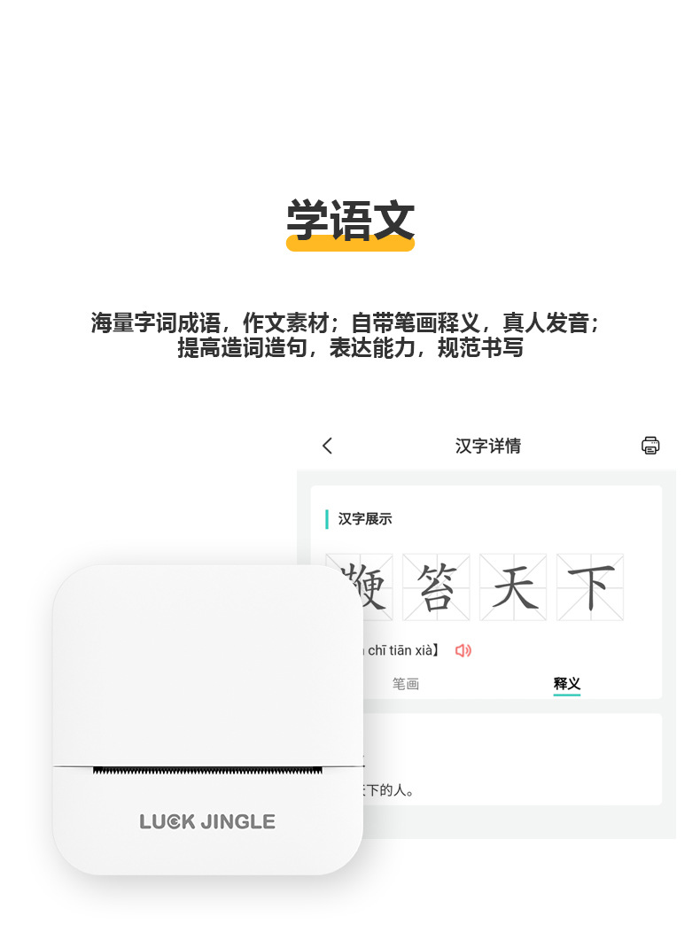 Xunchen LUCKJINGLE 딩당 동급생 고화질 미니 AI 소형 프린터 오답노트 라벨 메모 사진 텍스트