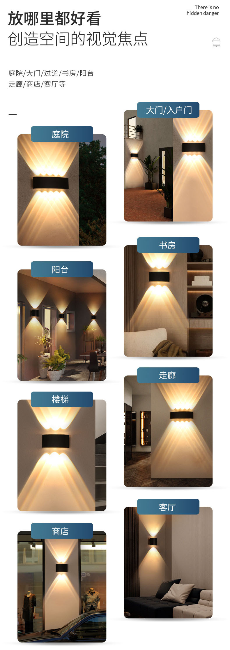 국경을 넘는 초박형 LED 실외 벽 램프, 인체 센서 램프, 실내 거실 침실 침대 옆 램프, 방수 정원 램프스토어 가기