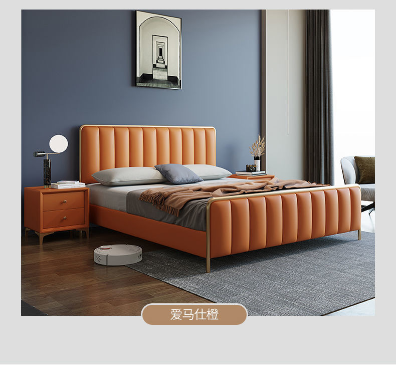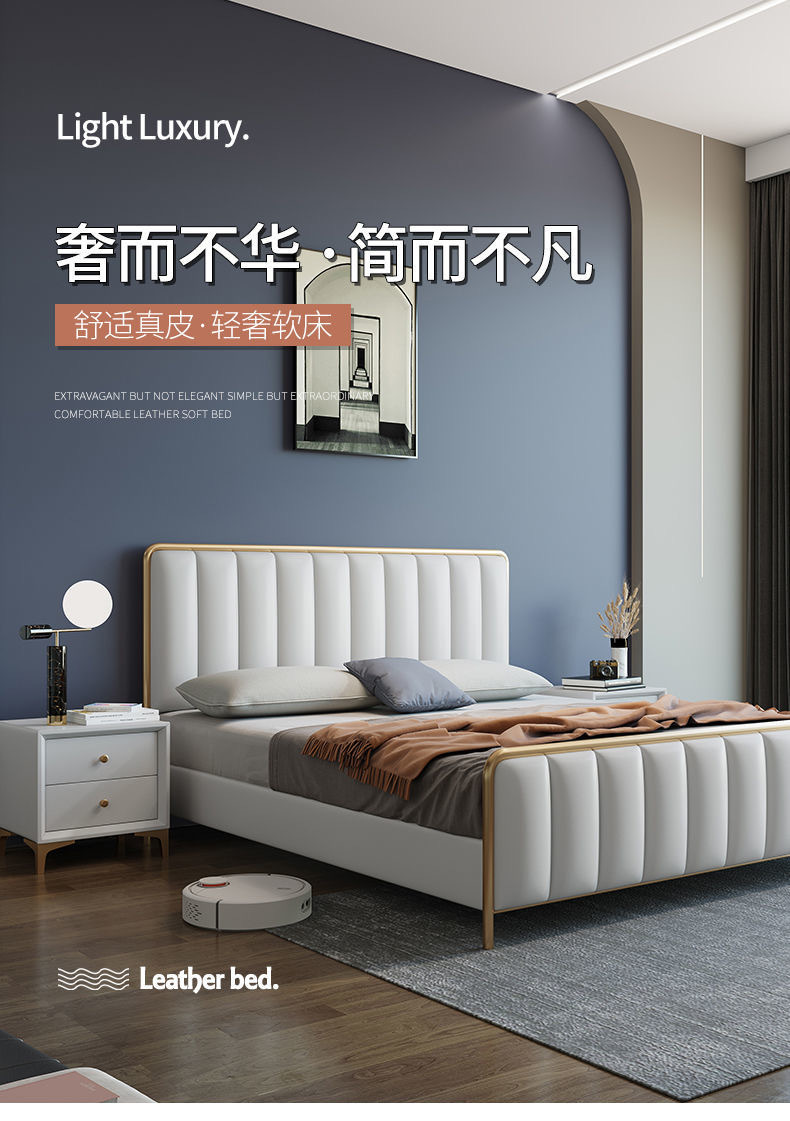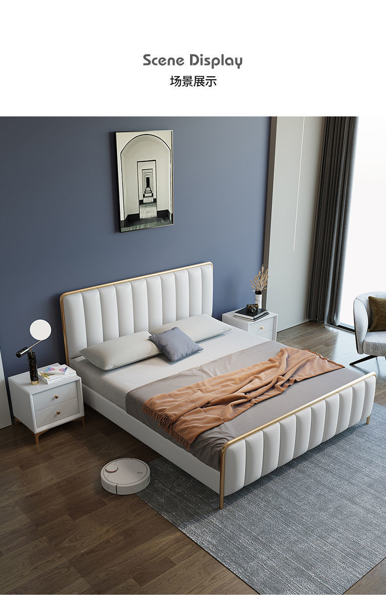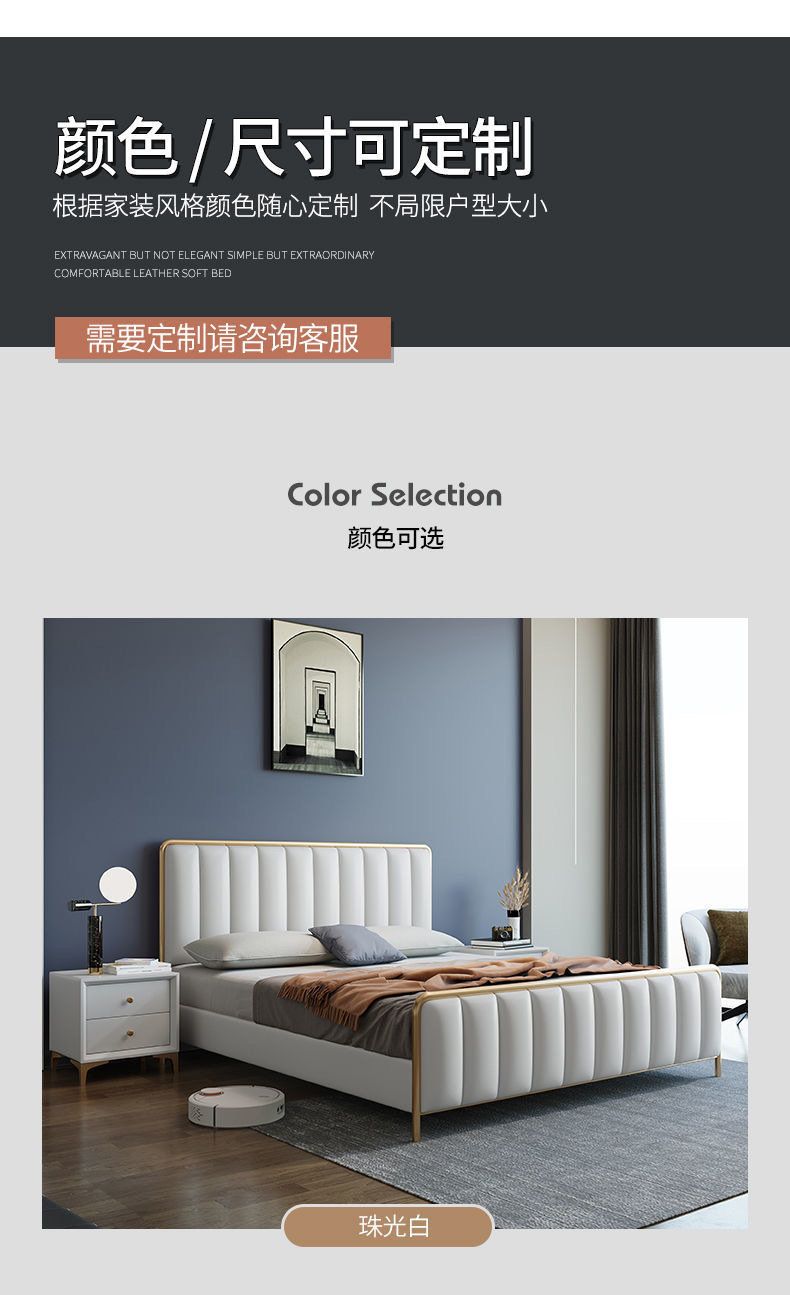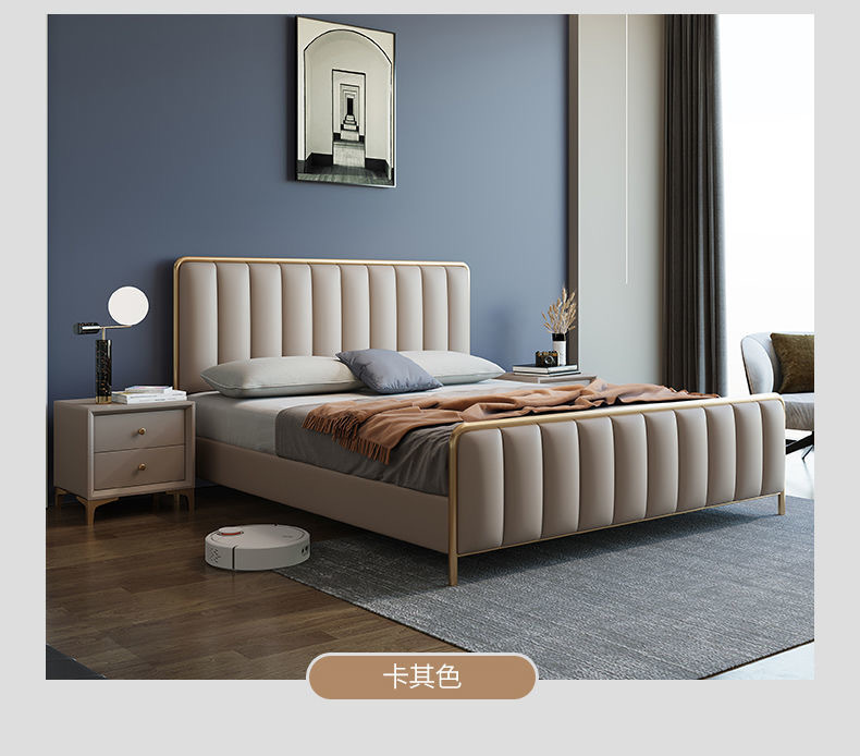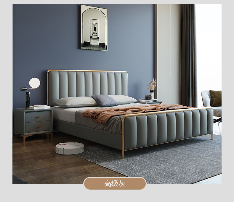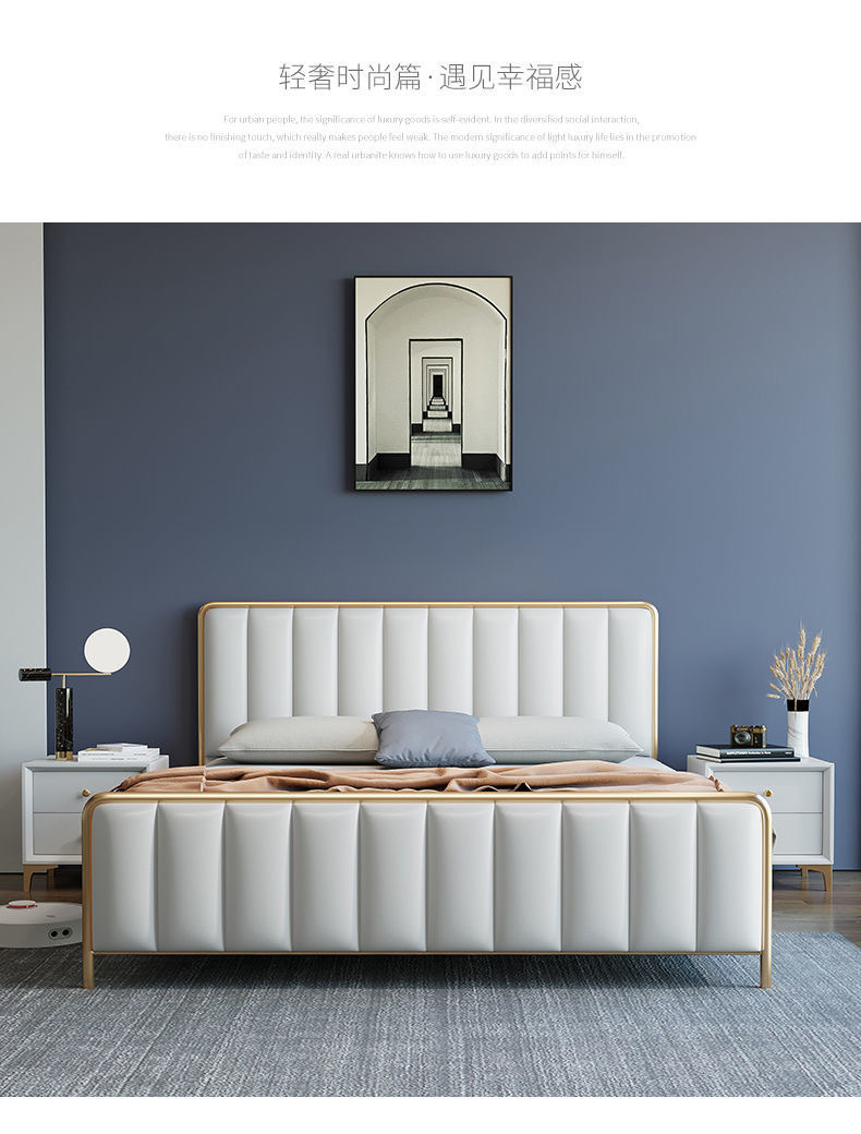 가죽 침대 현대 간단한 스타일 직접 판매 가벼운 고급 가죽 아트 침대 현대 간단한 부드러운 침대 더블 마스터 침실 웨딩 침대