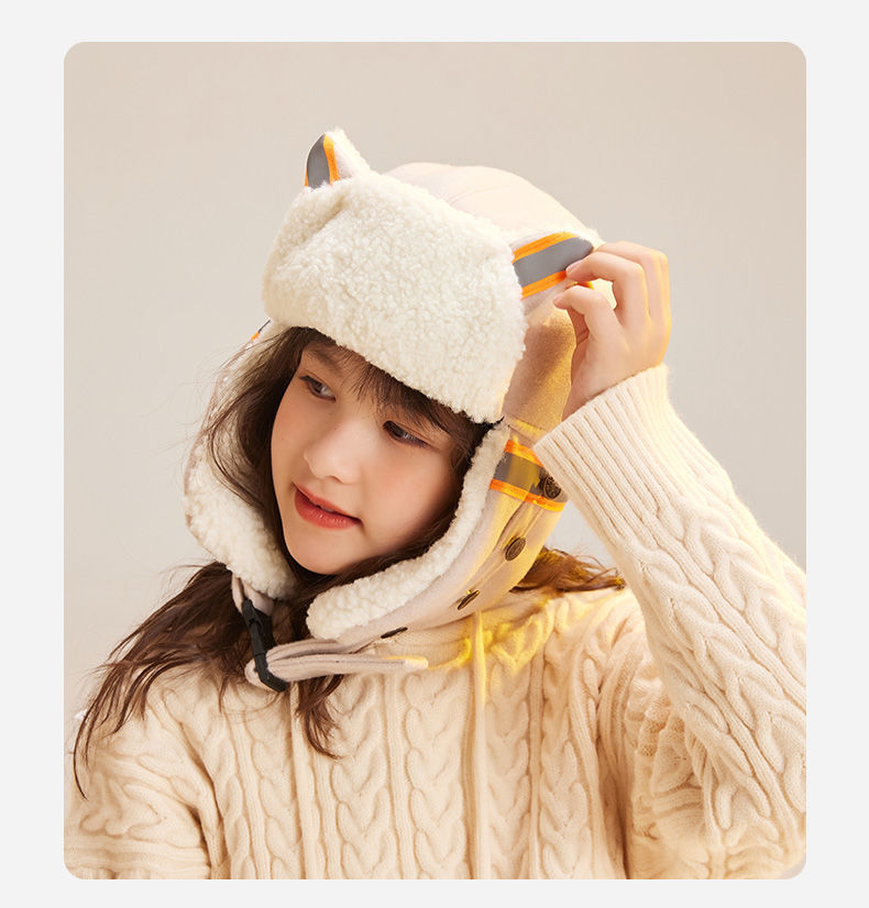 • 반사 스트립 고양이 귀 레이 펑 모자-살구색