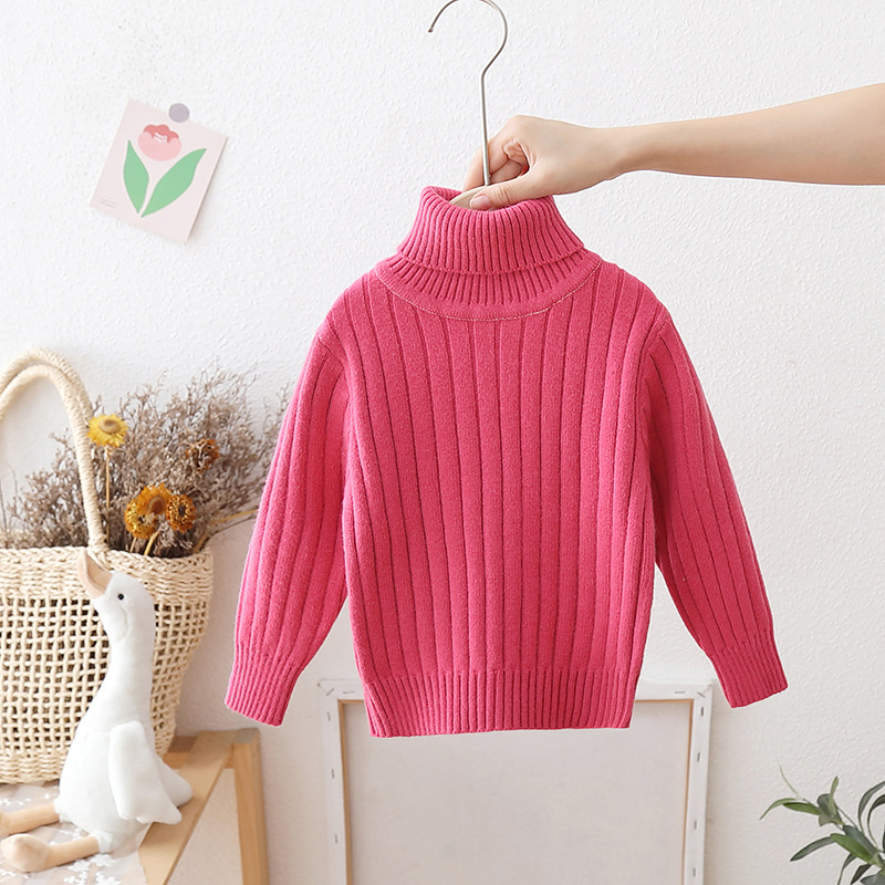 아동용 터틀넥 스웨터, 두꺼운 단색 여아 가을 겨울 풀오버, 남아용 니트 베이스 레이어, 해외에서 인기 판매스토어 가기