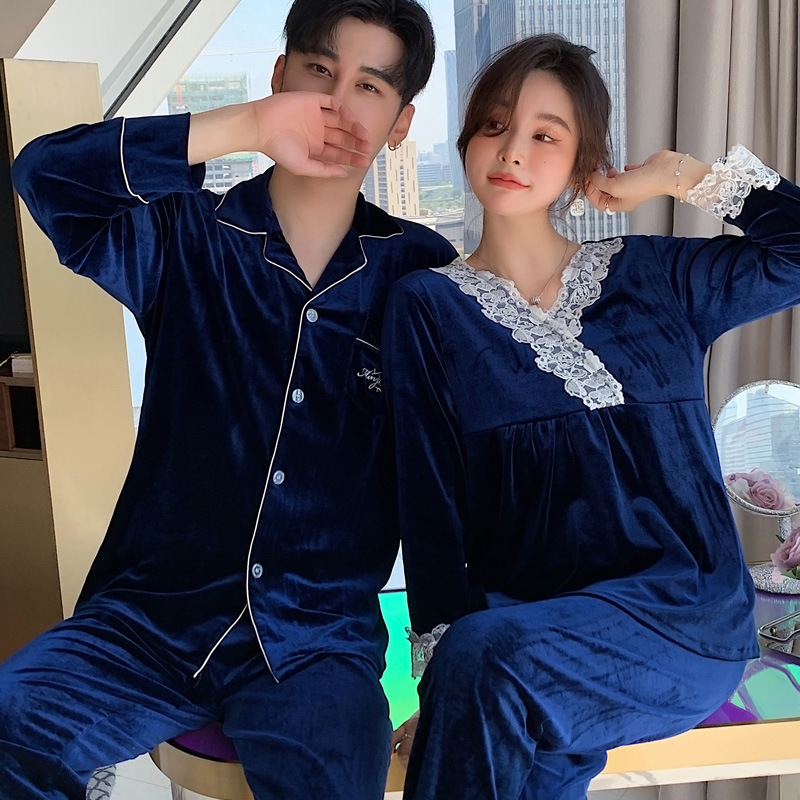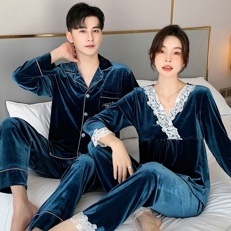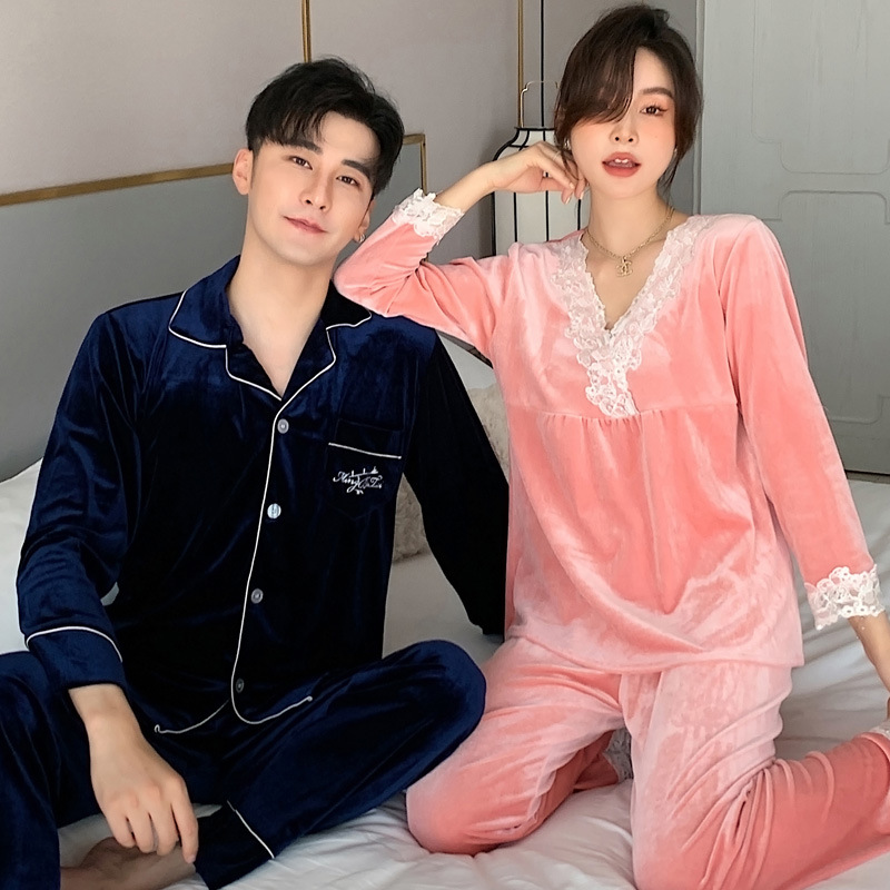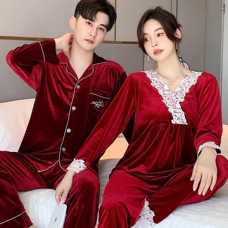 커플 잠옷 가을과 겨울 플란넬 빨간 결혼식 남자와 여자의 긴 소매 기모 따뜻한 산호 양털 가정 옷