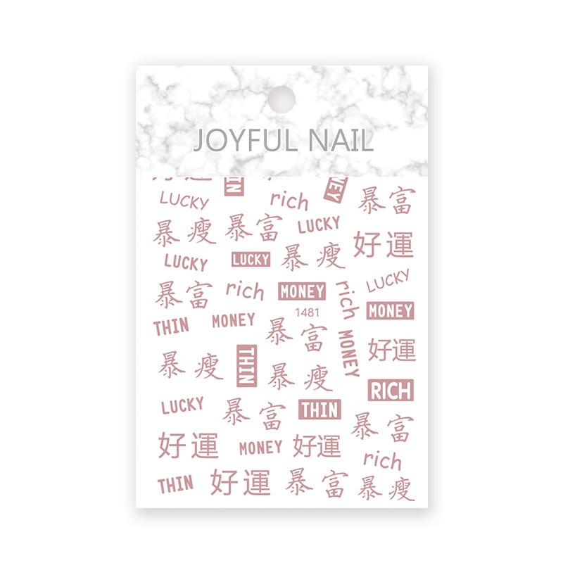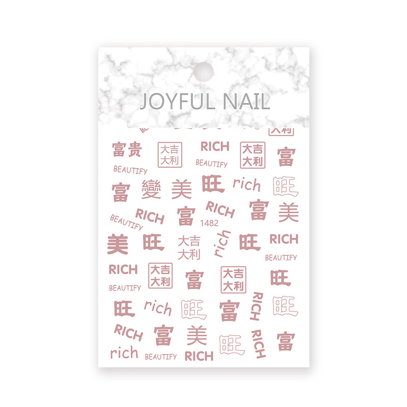 Yue Ji 새해 봄 축제 중국 스타일 네일 아트 스티커 신부 웨딩 네일 스티커 3D 부의 신 접착 데칼 패치