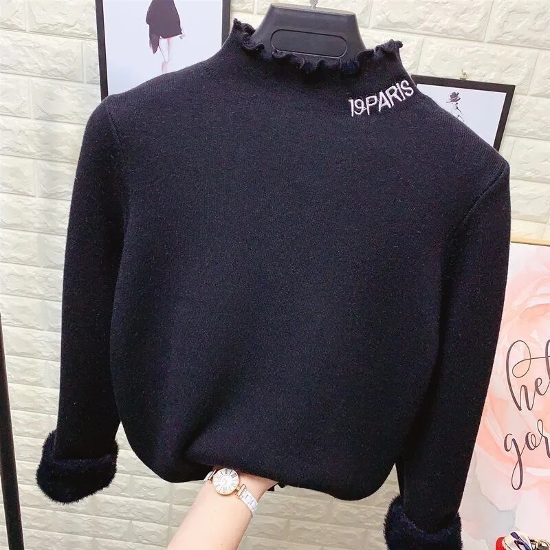 여아용 가을 내의, 중대형 아동용 긴팔 양면 독일산 벨벳 하프넥 일체형 보온 상의