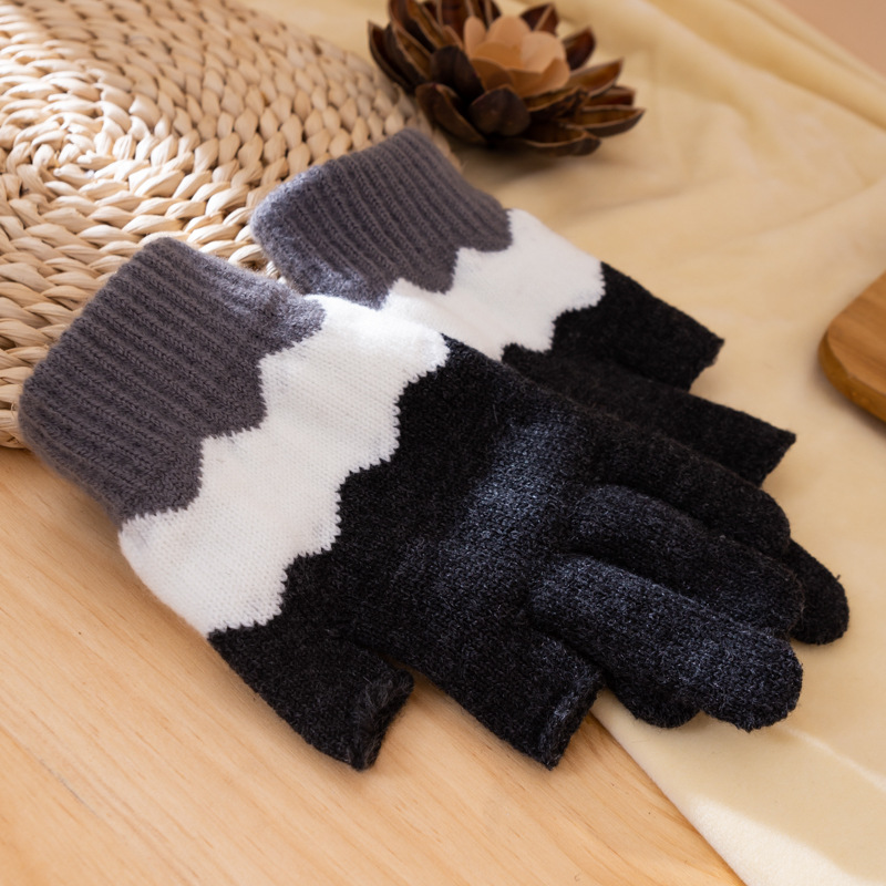 가을과 겨울 방한 장갑 여성용 양모 따뜻한 사무실 타이핑 귀여운 학생 한국식 손가락 모든 경기 하라주쿠 반 손가락