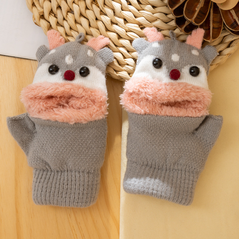 플립 반 손가락 장갑 여성 가을과 겨울 부모-자식 따뜻한 기모 두꺼운 승마 감기 방지 만화 귀여운 엘크