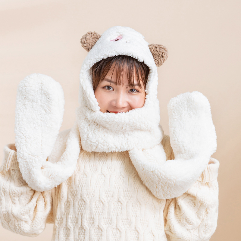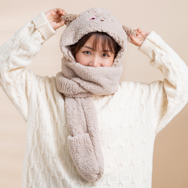 곰 귀 보호 모자 어린이 가을과 겨울 귀여운 겨울 봉제 스카프 후드 원피스 세트 올매치 웜스토어 가기
