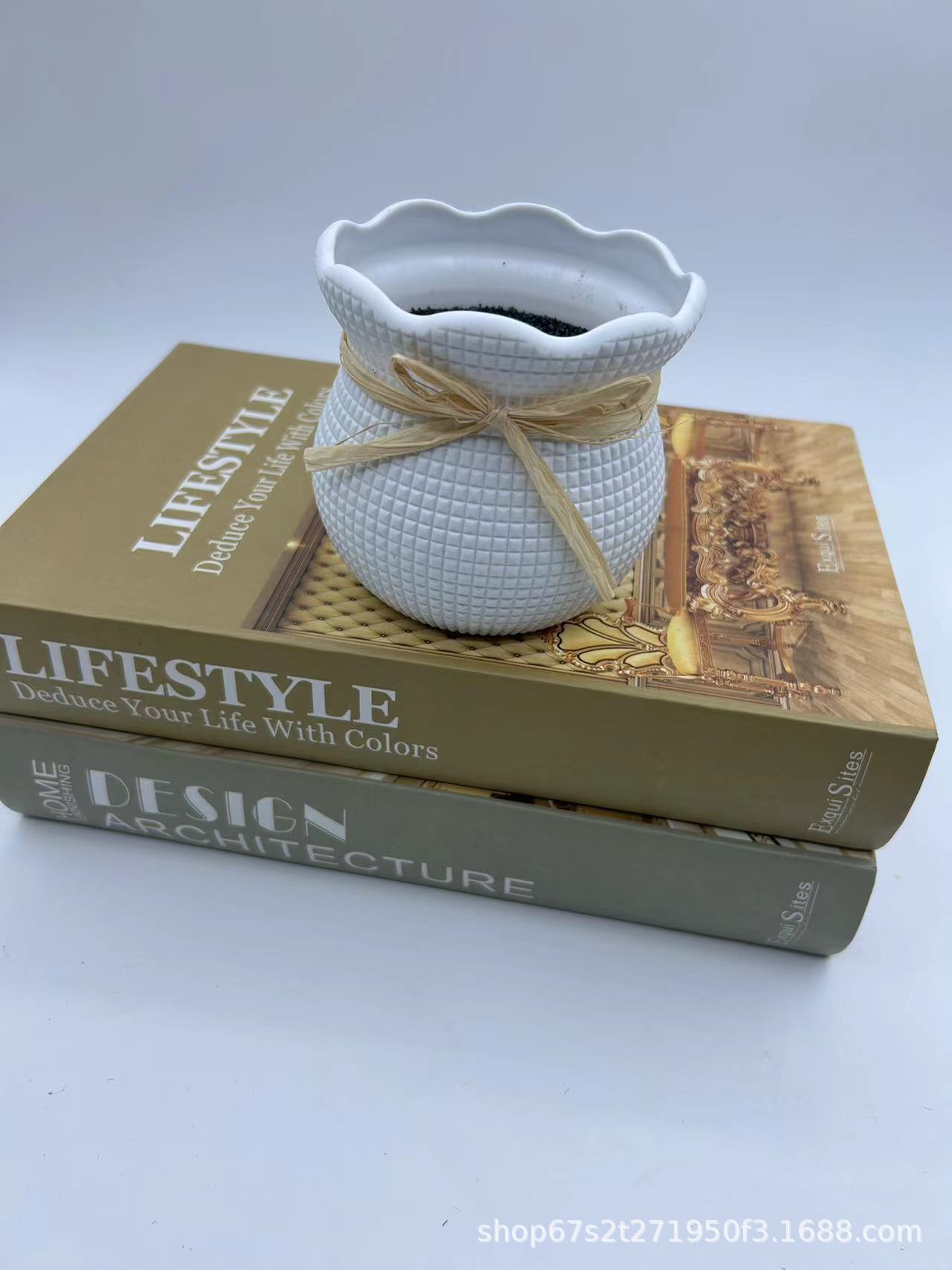 • 흰색 작은 격자 무늬 꽃 냄비