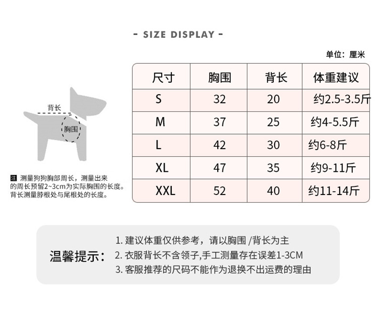 6、尺寸问题:每件商品都有量取详细尺寸,每个人量法不同,误差属正常。要是事后以推荐尺码错误理由怪罪卖家,那很抱歉,不接受以此为理由的退货。