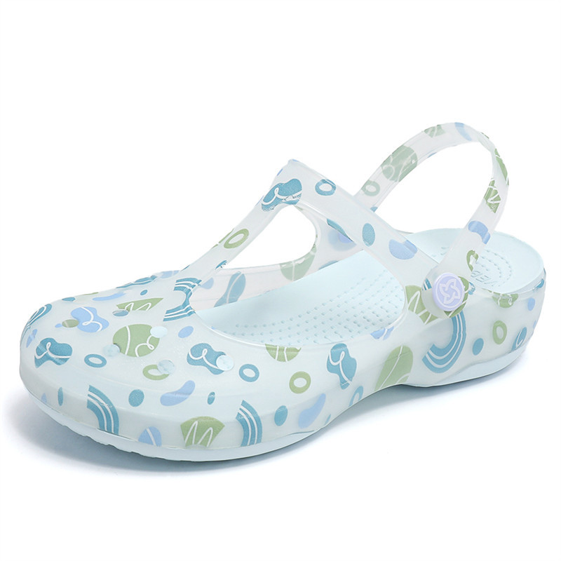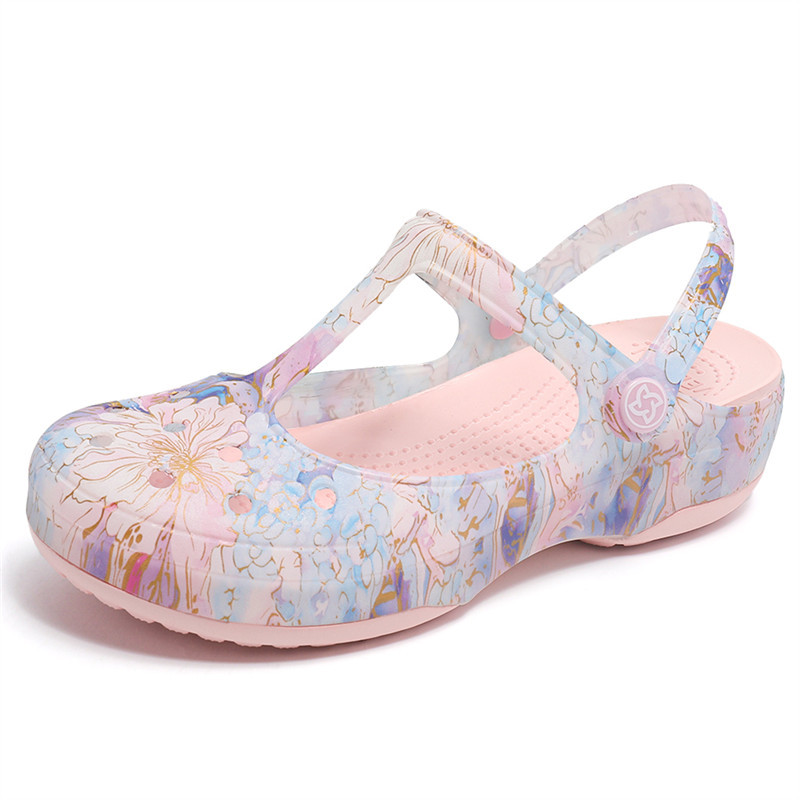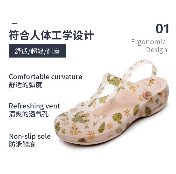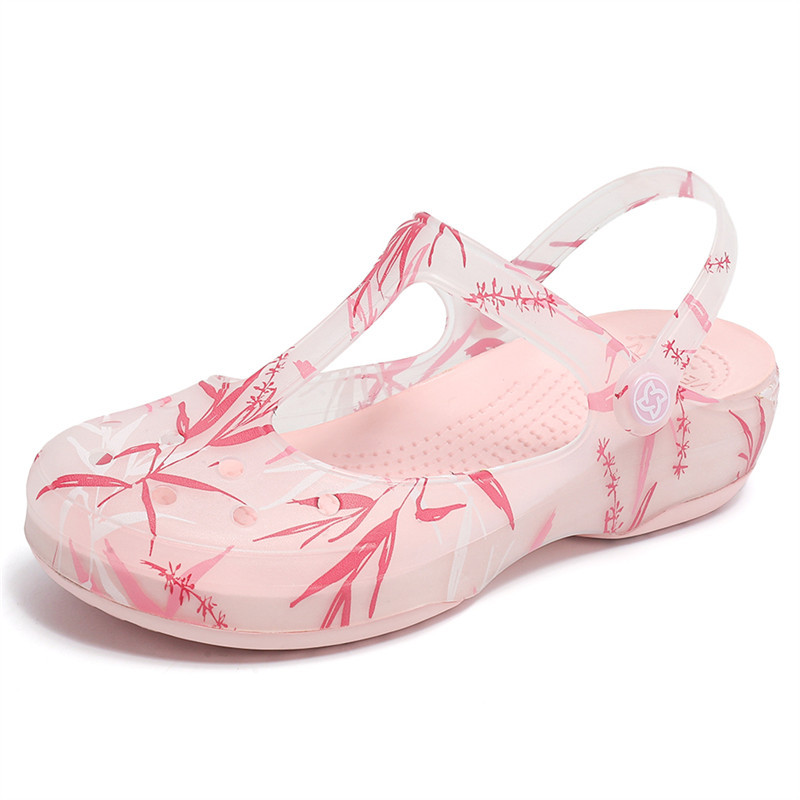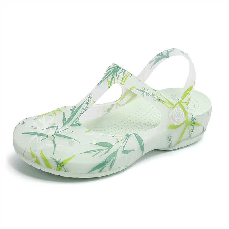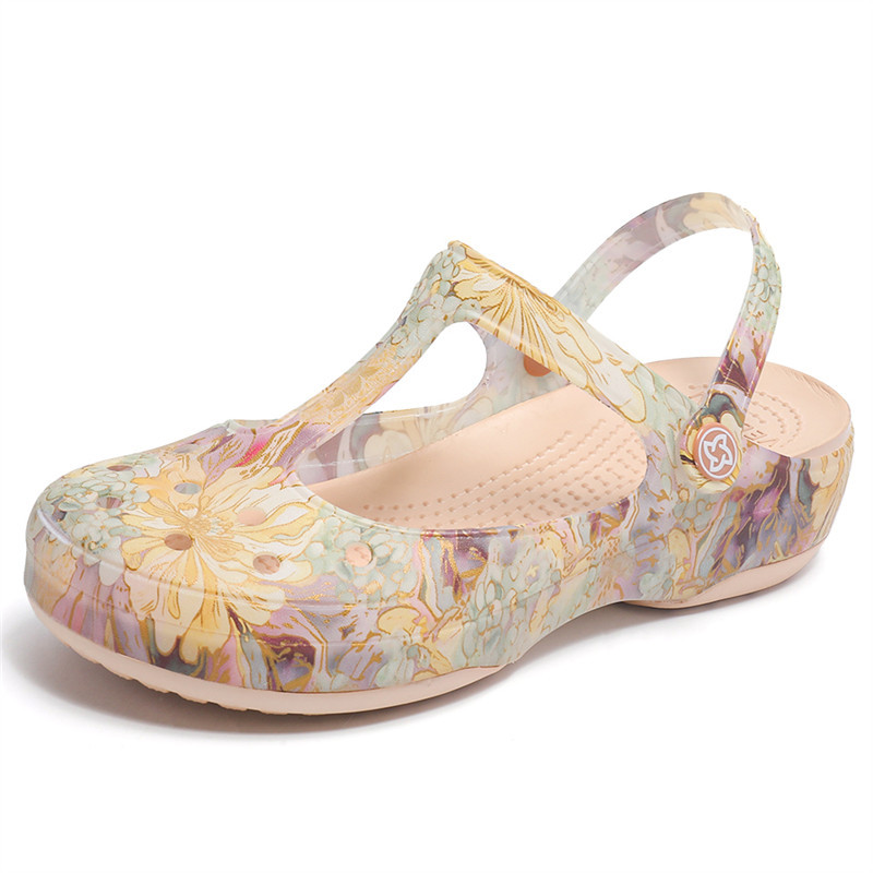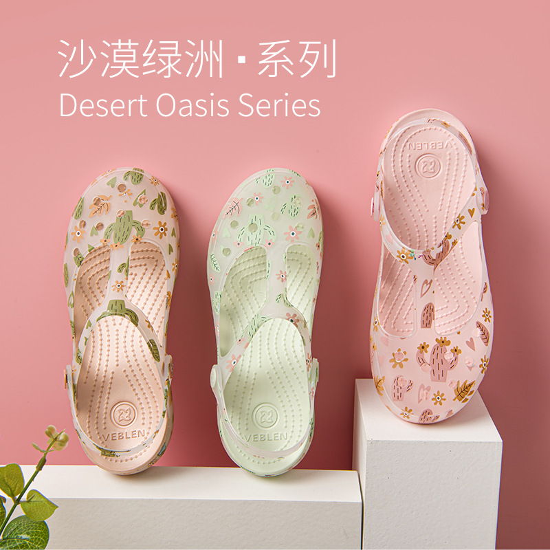VEBLEN 홀 슈즈 여성용 여름 겉옷 미끄럼 방지 비치 슈즈 젤리 두꺼운 바닥 통기성 해변 인쇄 Baotou 슬리퍼