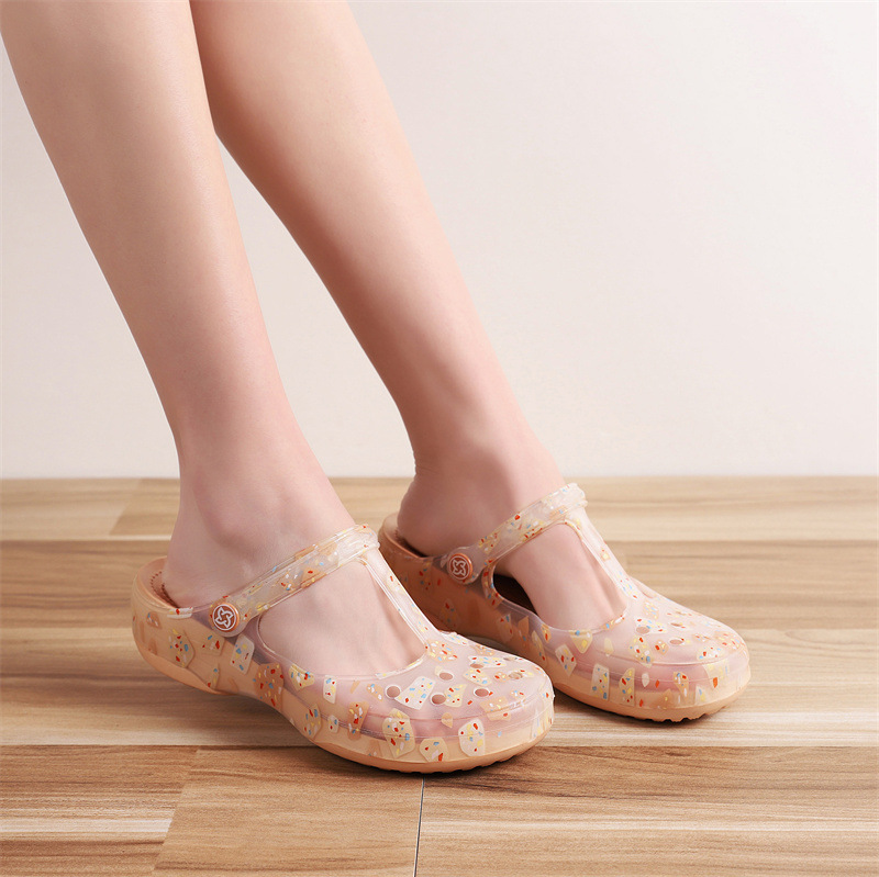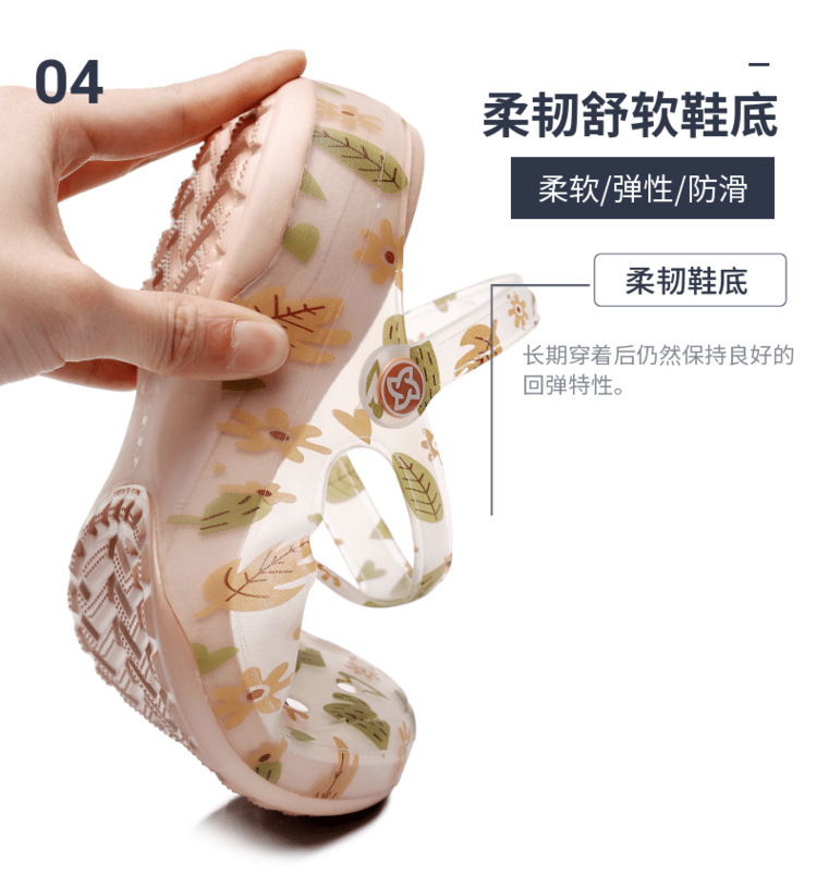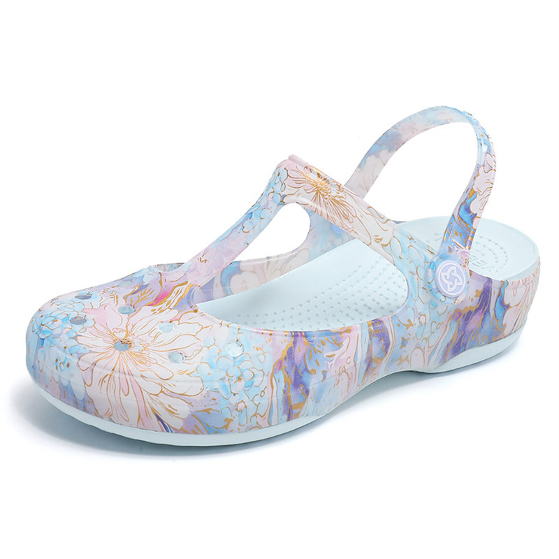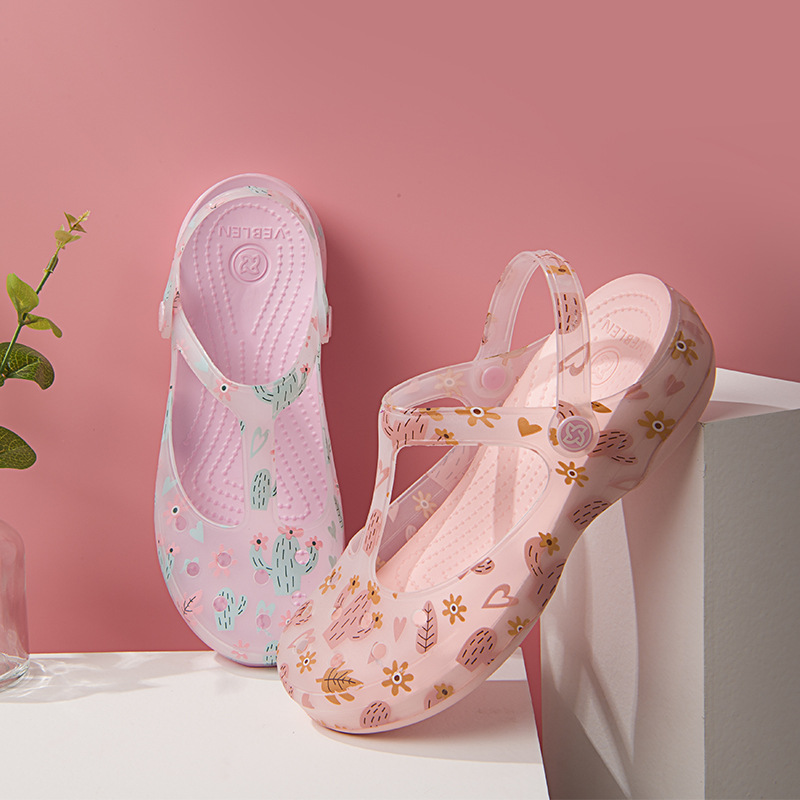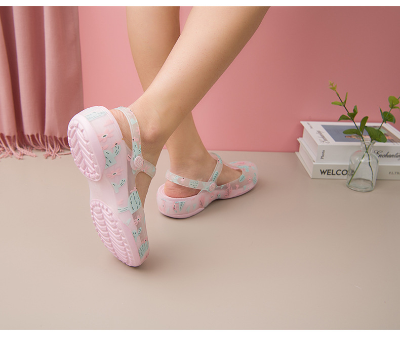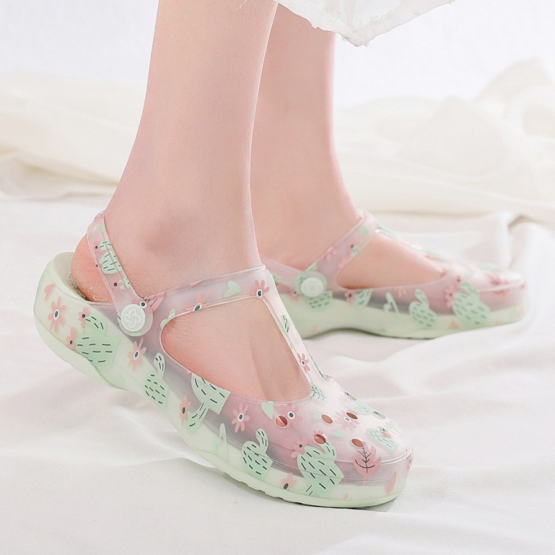VEBLEN 홀 슈즈 여성용 여름 겉옷 미끄럼 방지 비치 슈즈 젤리 두꺼운 바닥 통기성 해변 인쇄 Baotou 슬리퍼