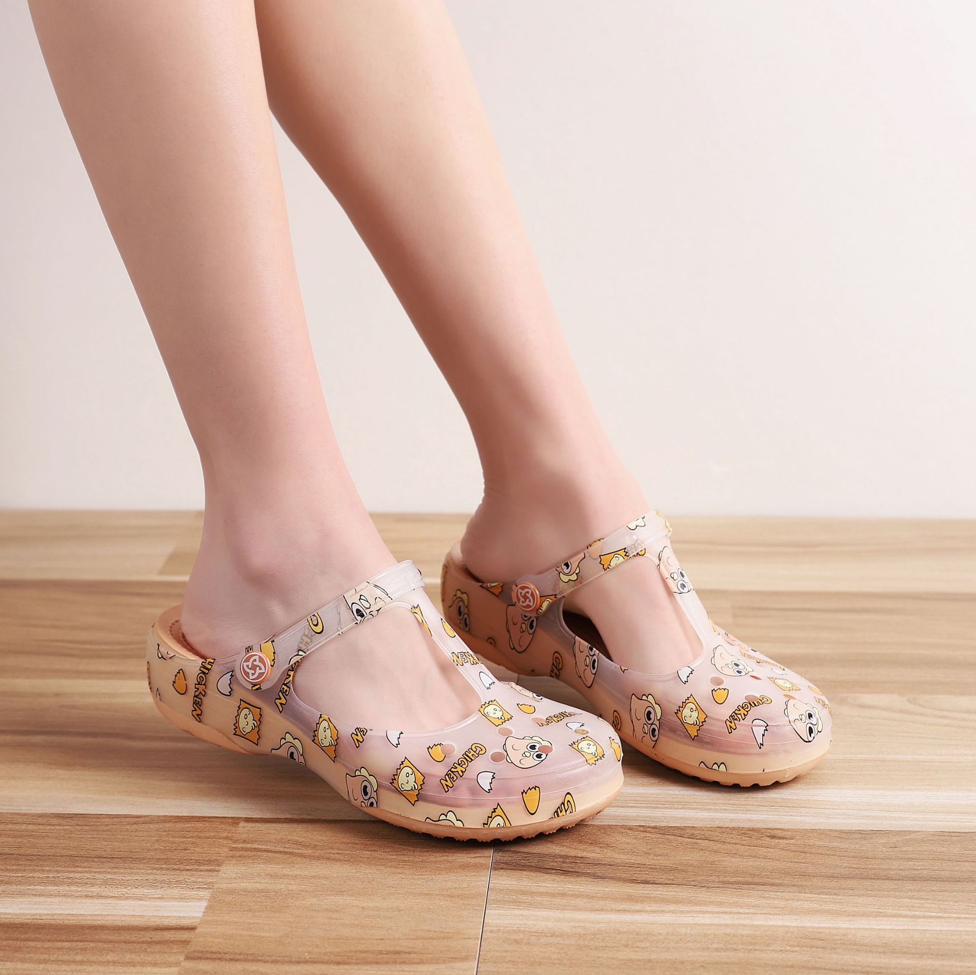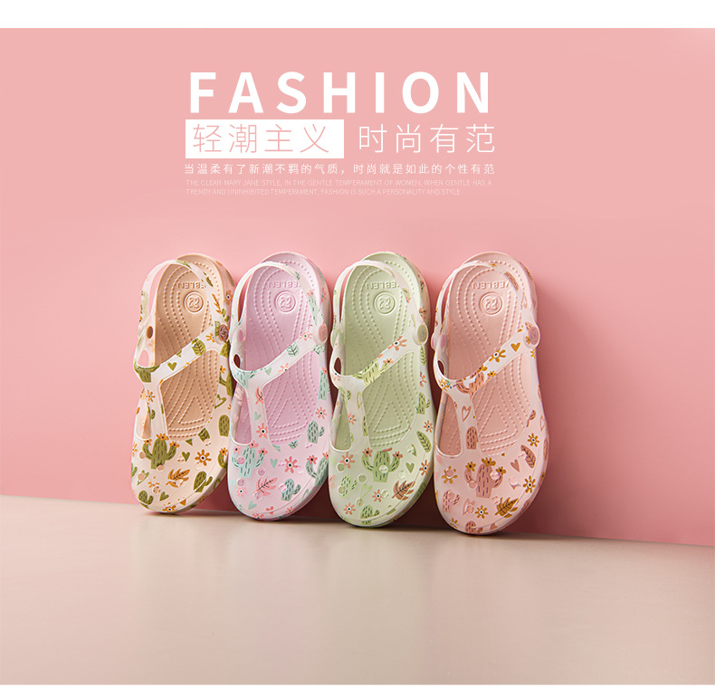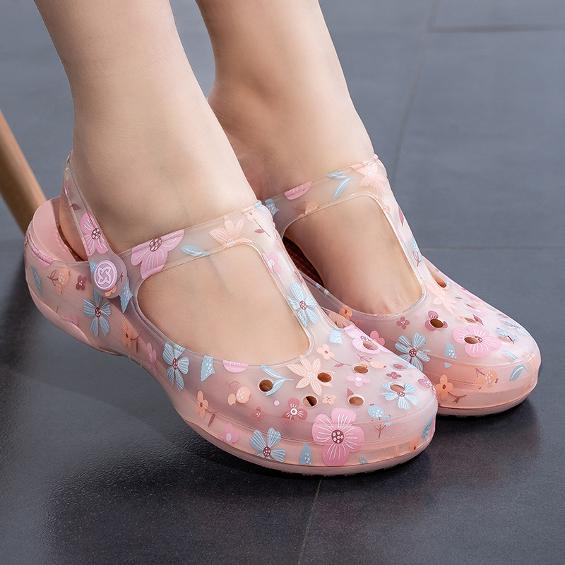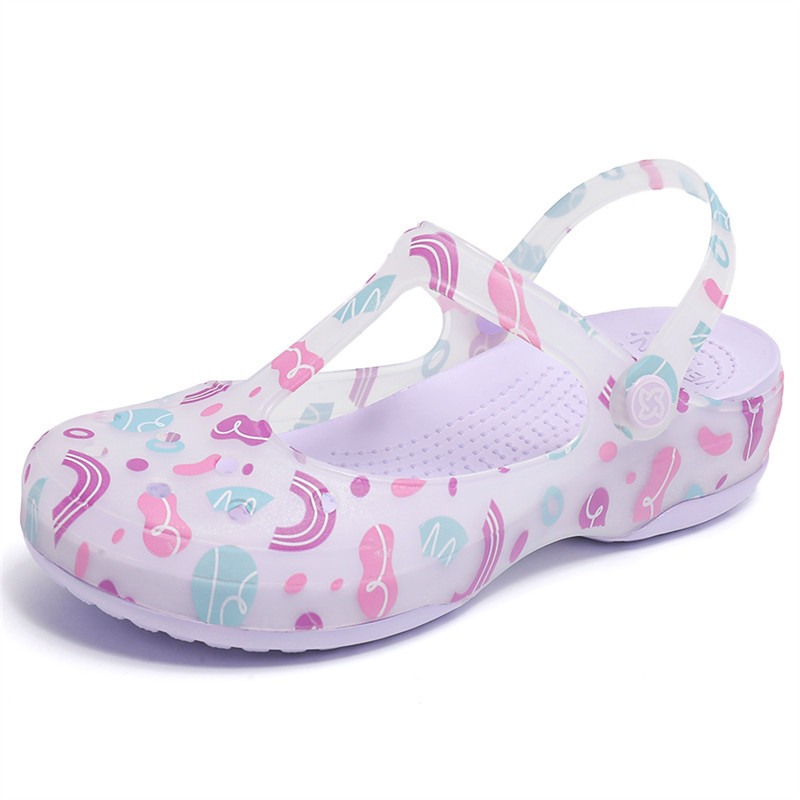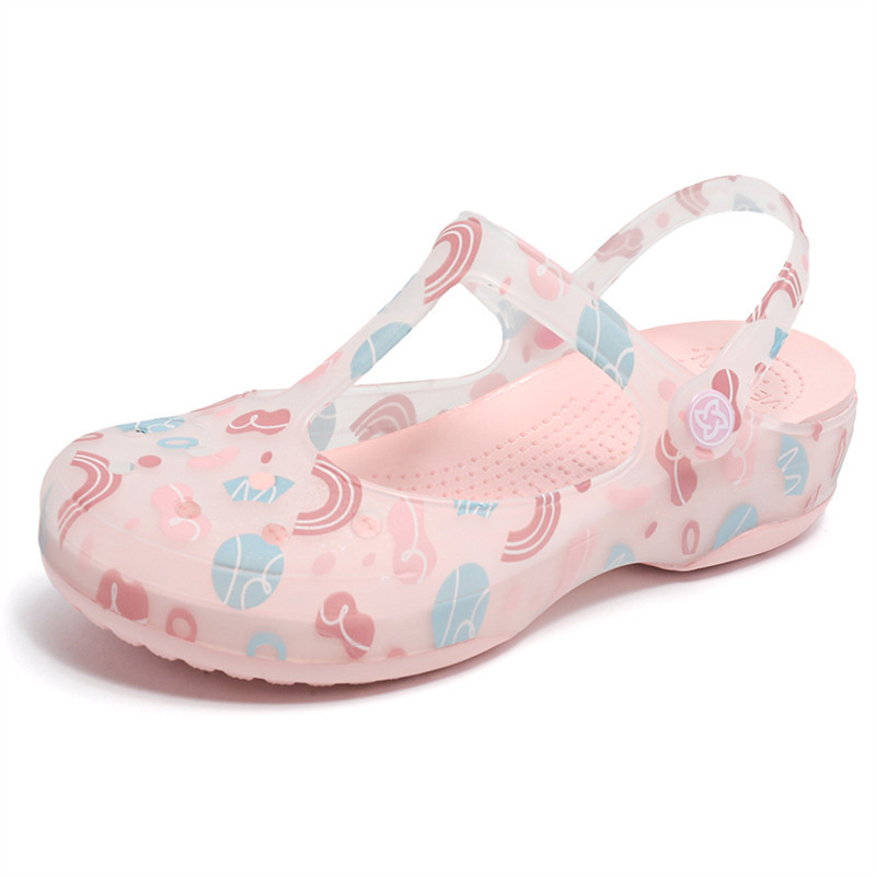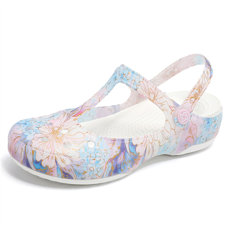 VEBLEN 홀 슈즈 여성용 여름 겉옷 미끄럼 방지 비치 슈즈 젤리 두꺼운 바닥 통기성 해변 인쇄 Baotou 슬리퍼