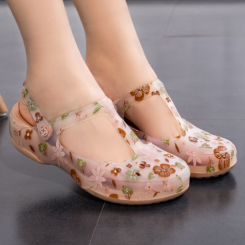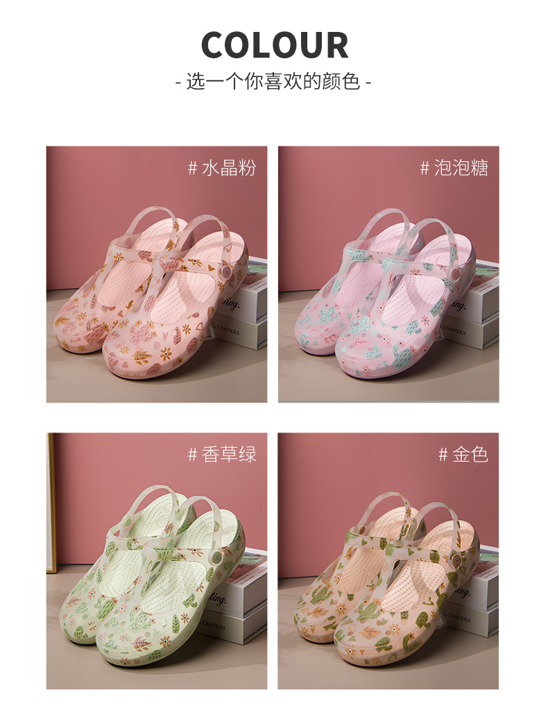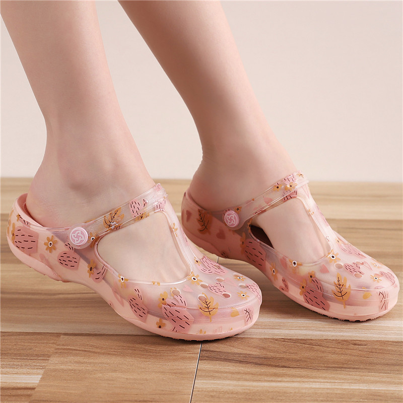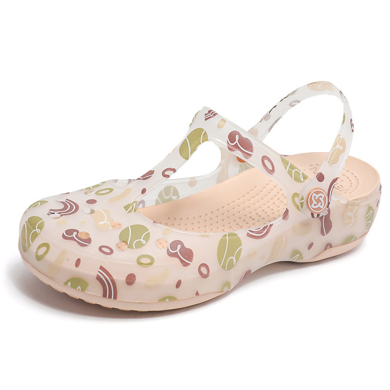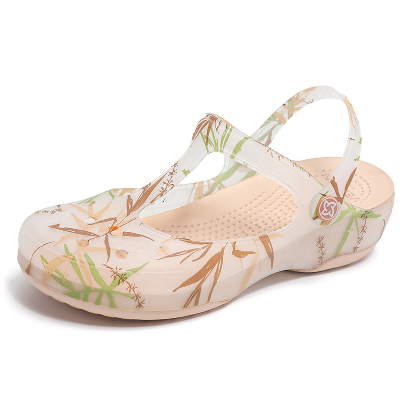 VEBLEN 홀 슈즈 여성용 여름 겉옷 미끄럼 방지 비치 슈즈 젤리 두꺼운 바닥 통기성 해변 인쇄 Baotou 슬리퍼스토어 가기