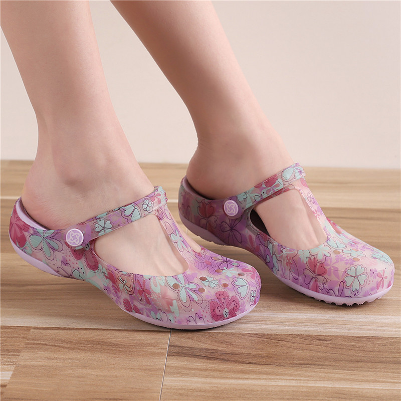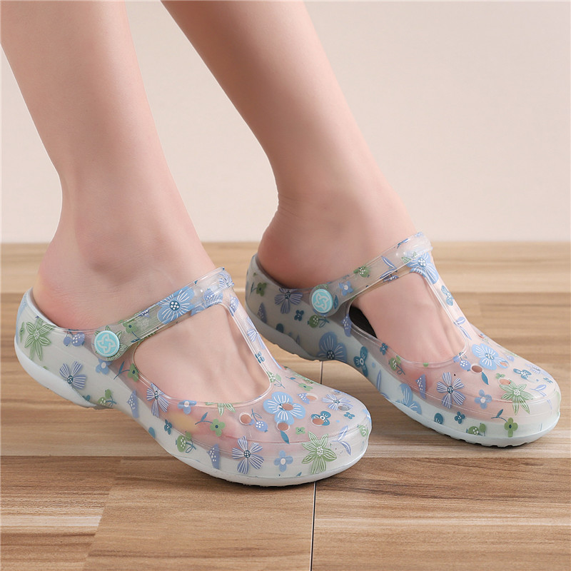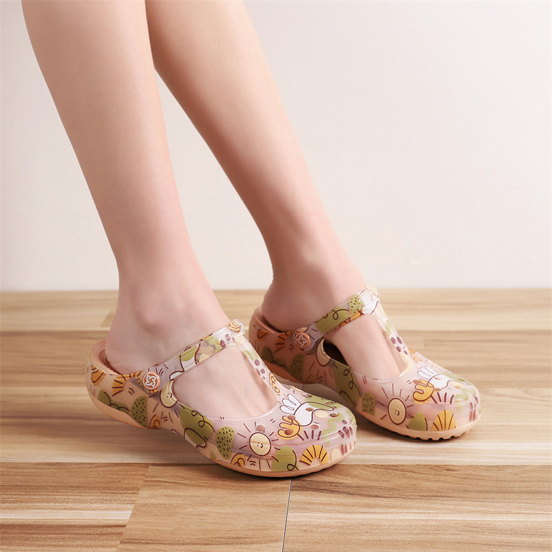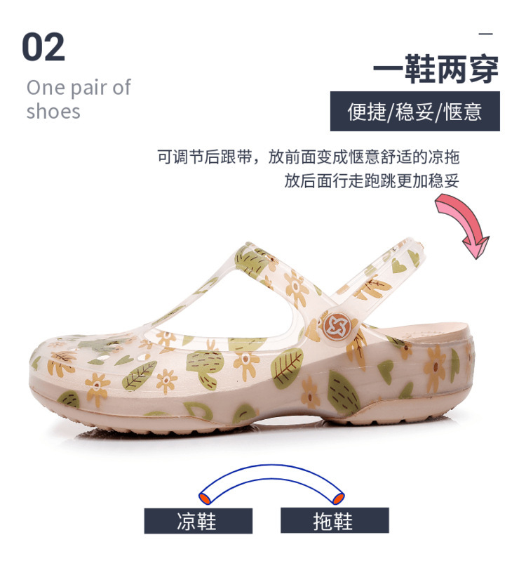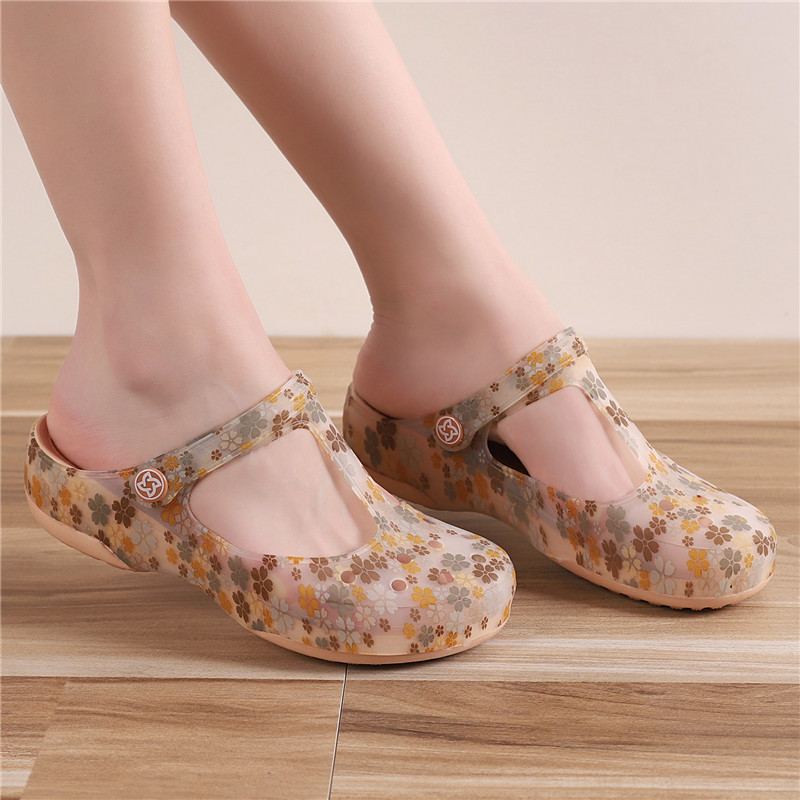 VEBLEN 홀 슈즈 여성용 여름 겉옷 미끄럼 방지 비치 슈즈 젤리 두꺼운 바닥 통기성 해변 인쇄 Baotou 슬리퍼스토어 가기
