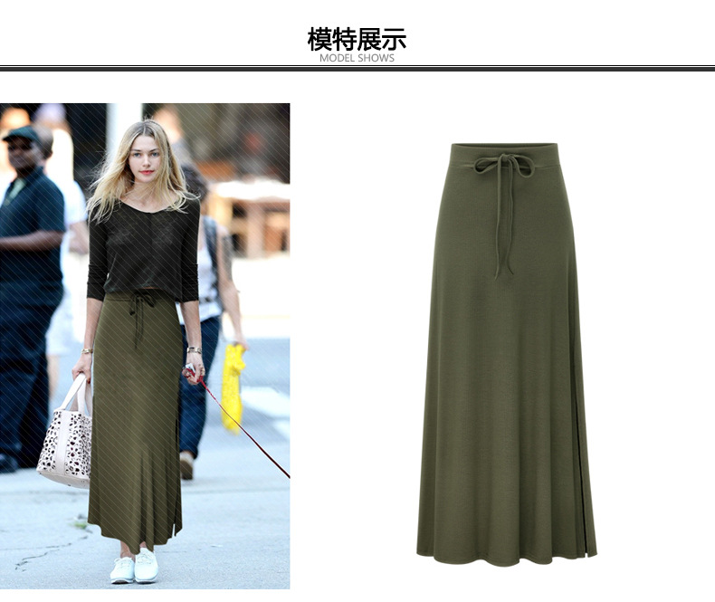 유럽과 미국 플러스 사이즈 여성 패션 니트 스커트 200kg 높은 허리 긴 슬릿 A 라인 스커트 탄성 무릎