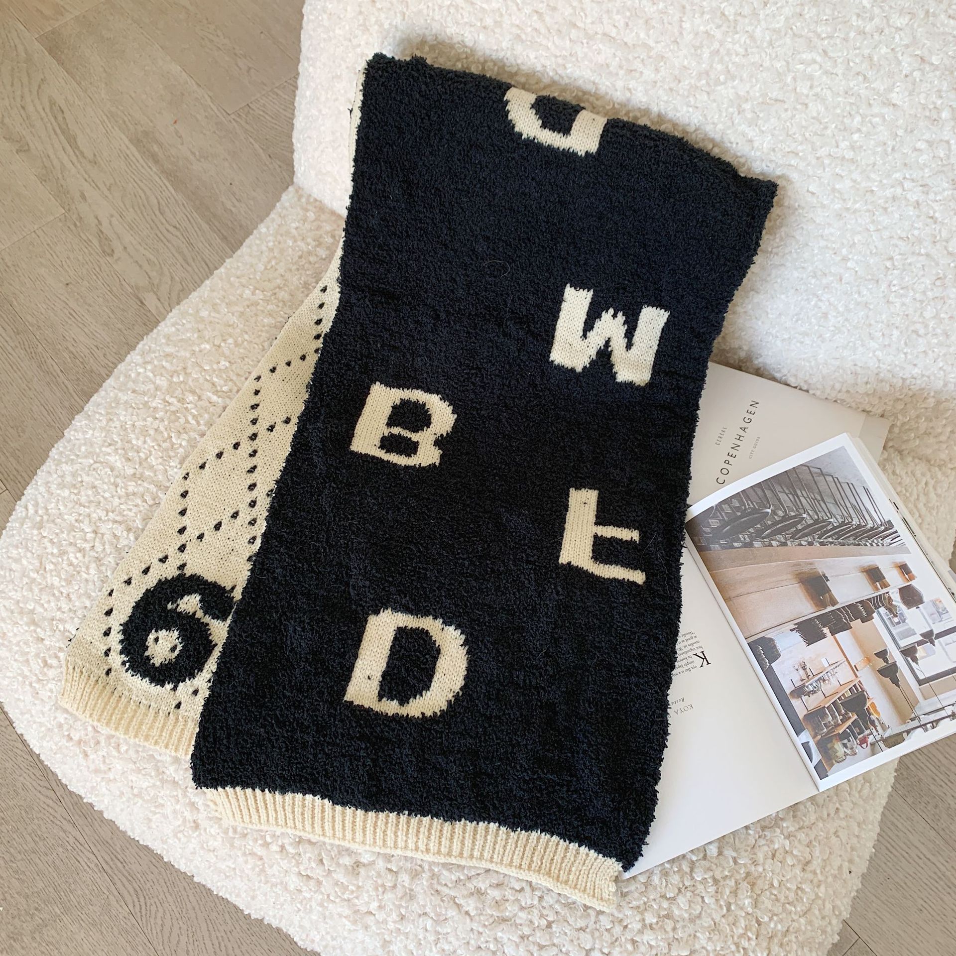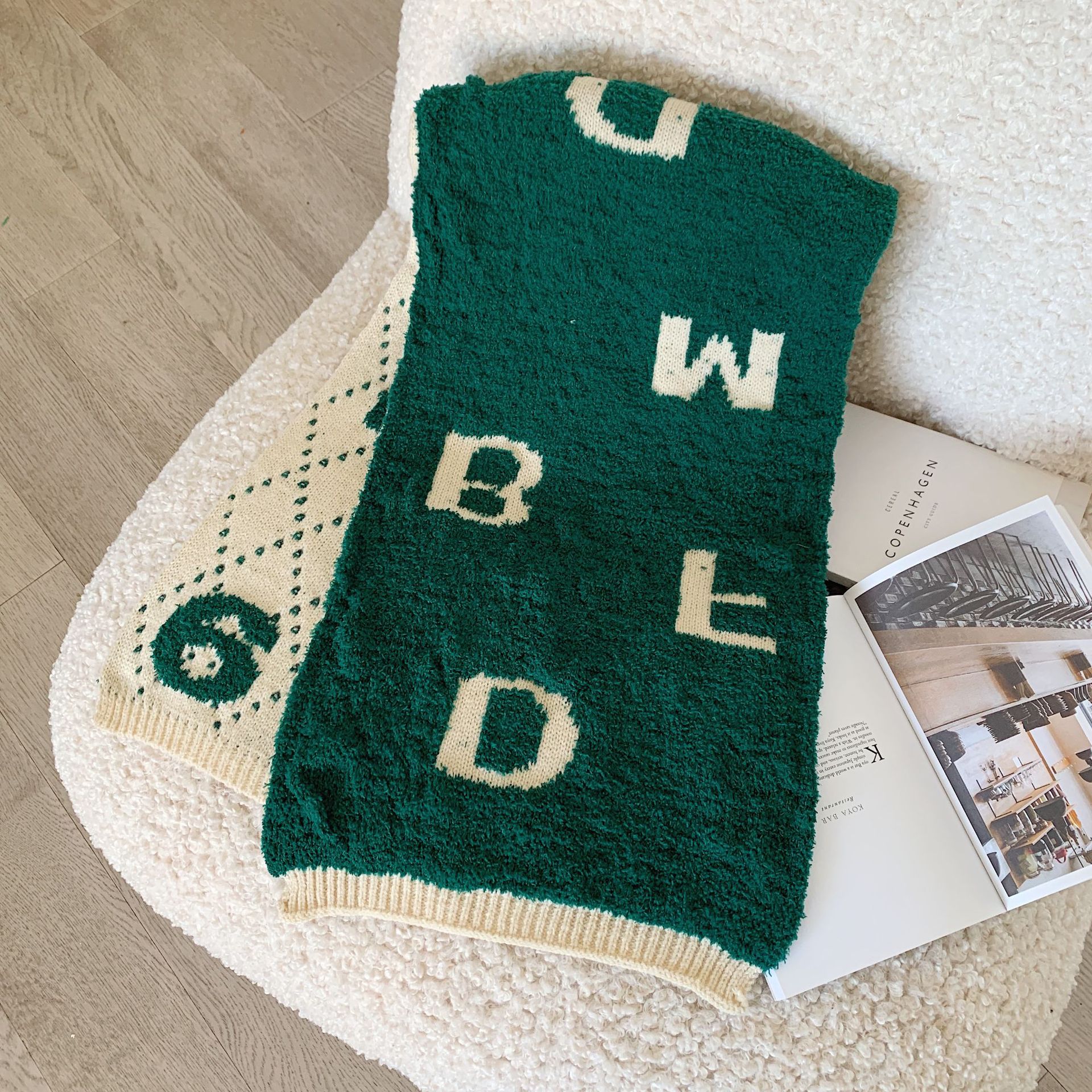 한국 편지 천 라벨 녹색 양모 작은 스카프 여성의 가을과 겨울 따뜻한 캐주얼 모든 매치 단색 니트 스카프