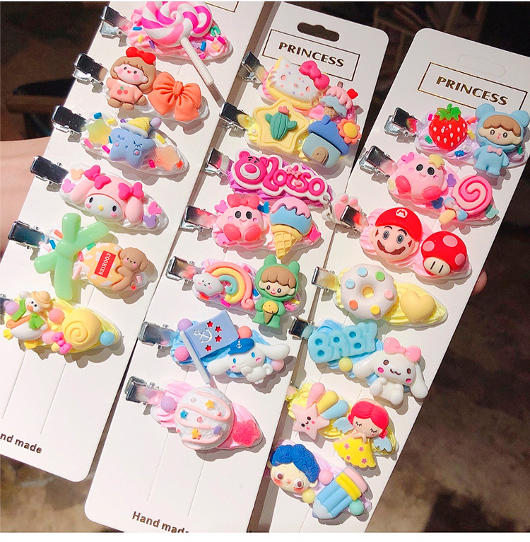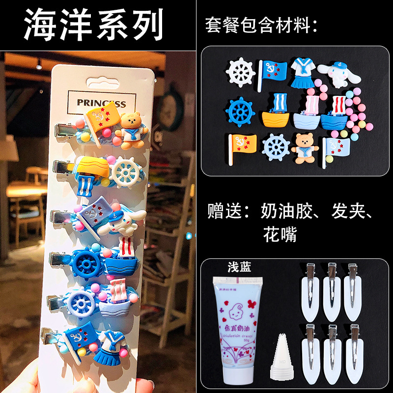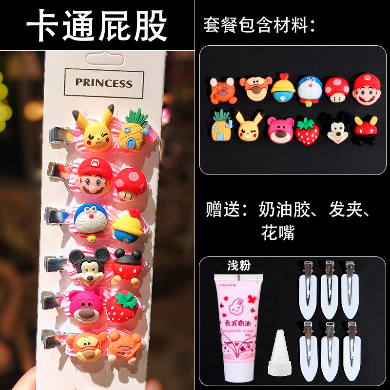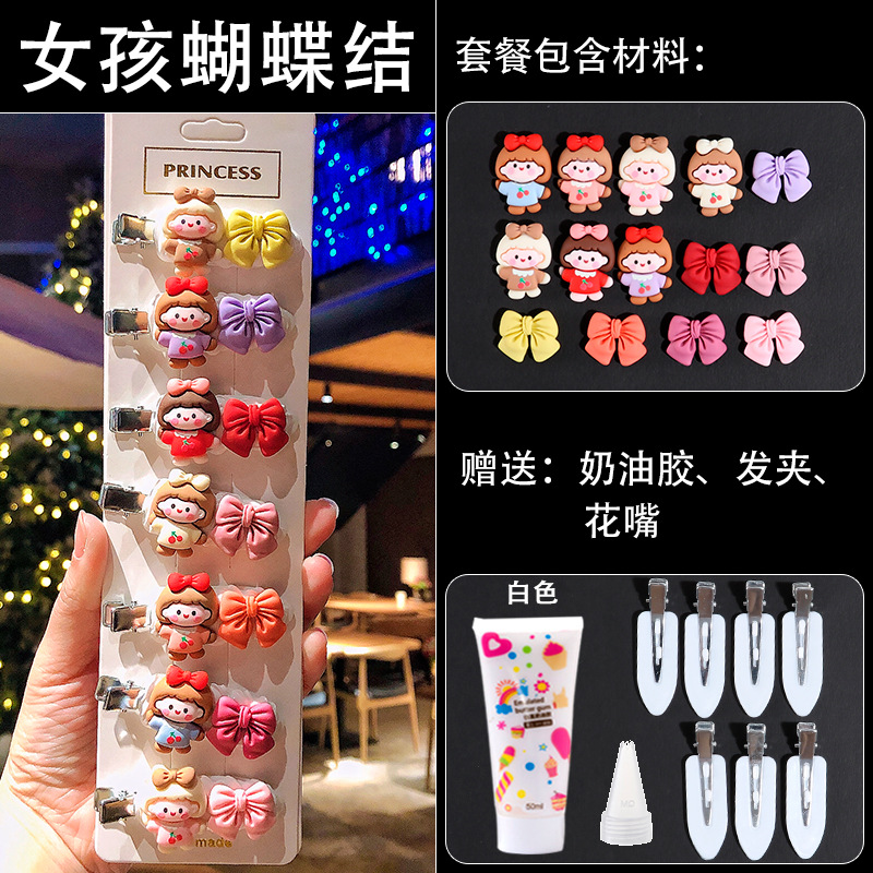 DIY 크림 접착제 머리핀 사이드 클립 소재 패키지 어린이 온라인 빨간색 만화 귀여운 수제 헤어 액세서리 클립
