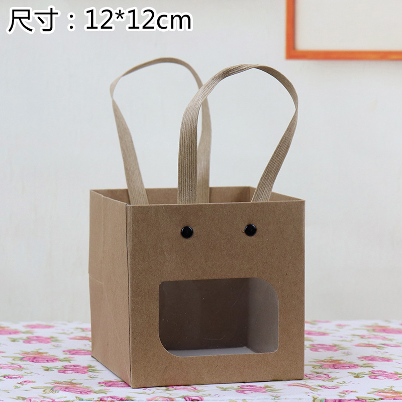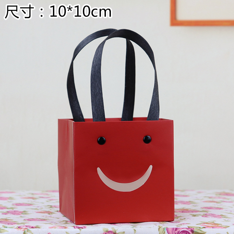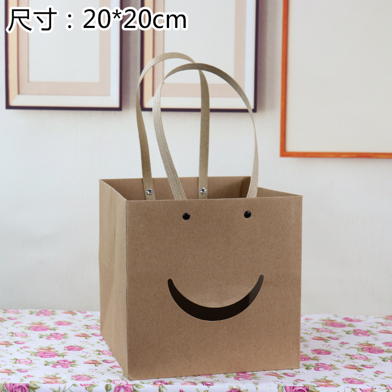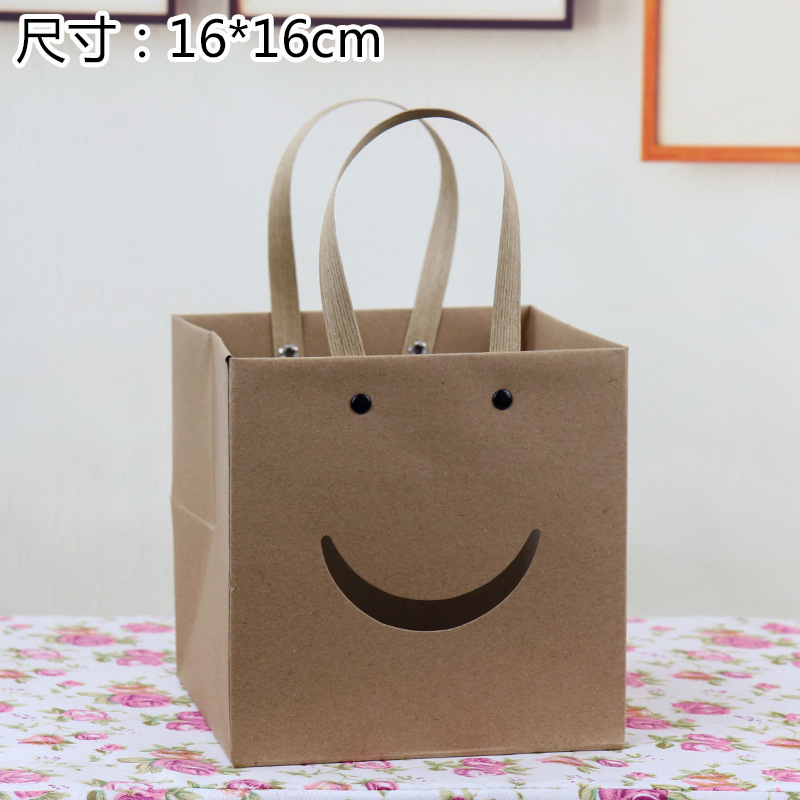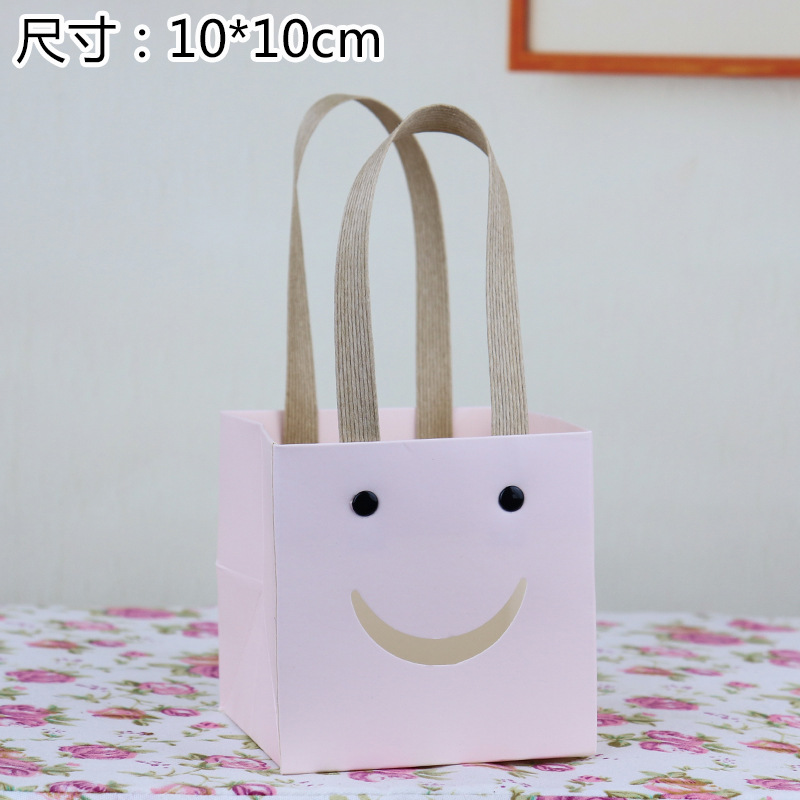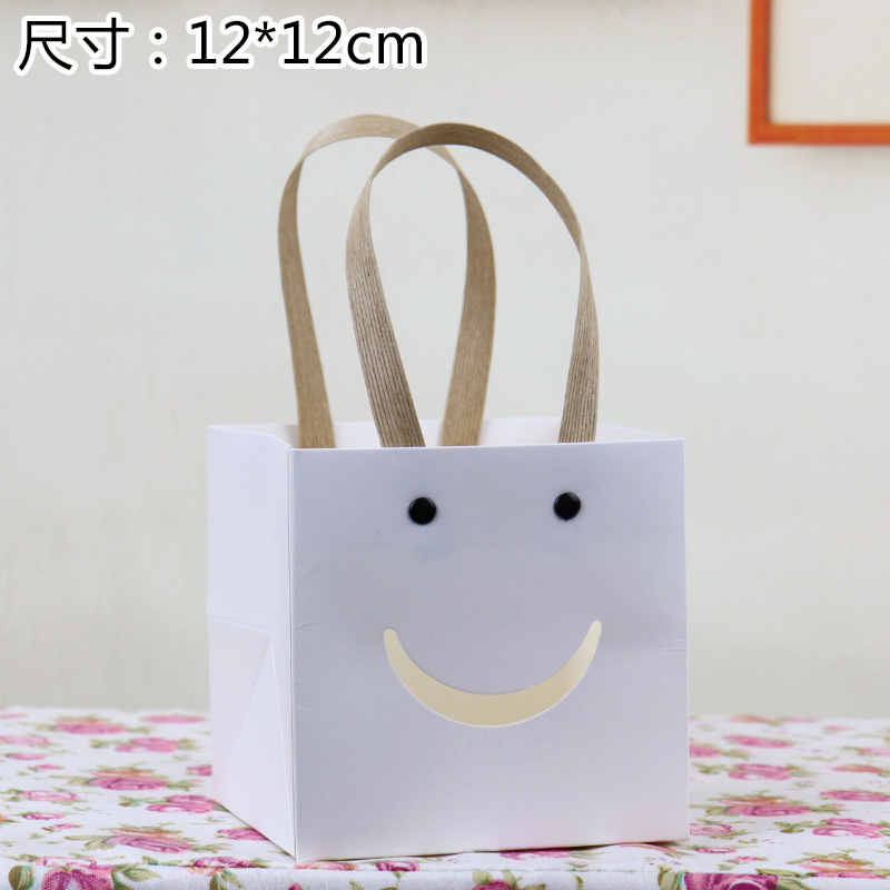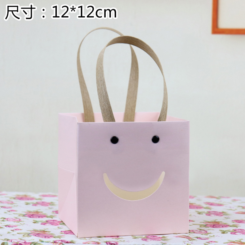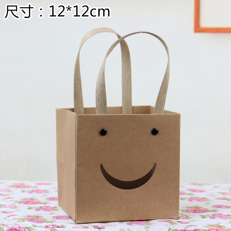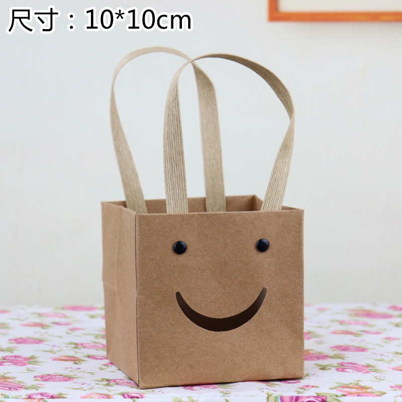 스마일리 창 크래프트 종이 미니 스퀘어 선물 가방 리벳 작은 핸드백 꽃 선물 가방