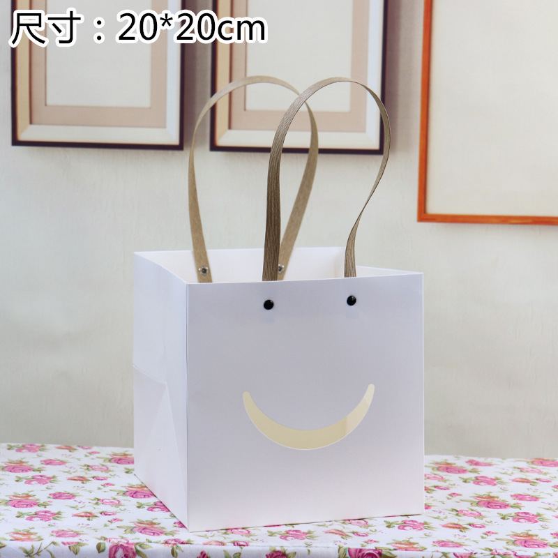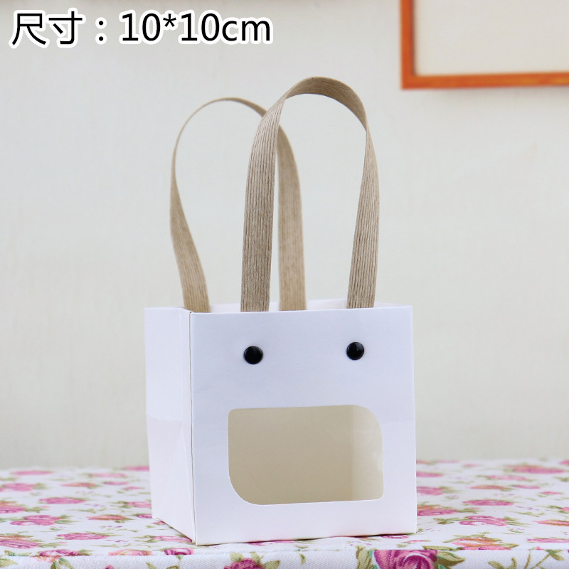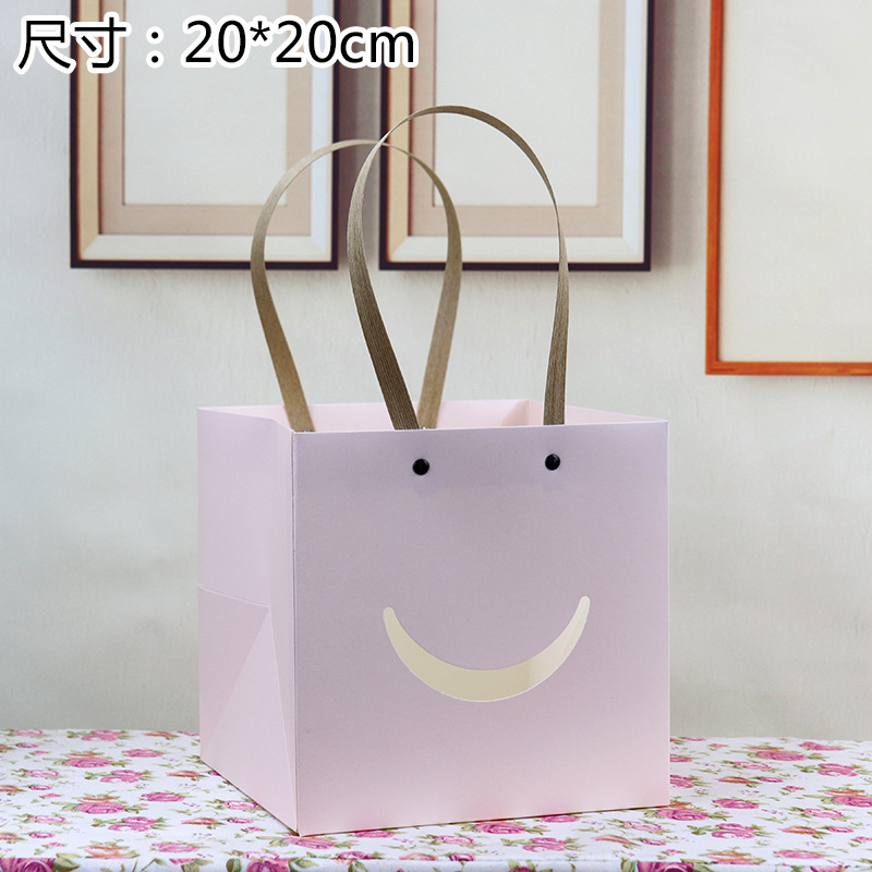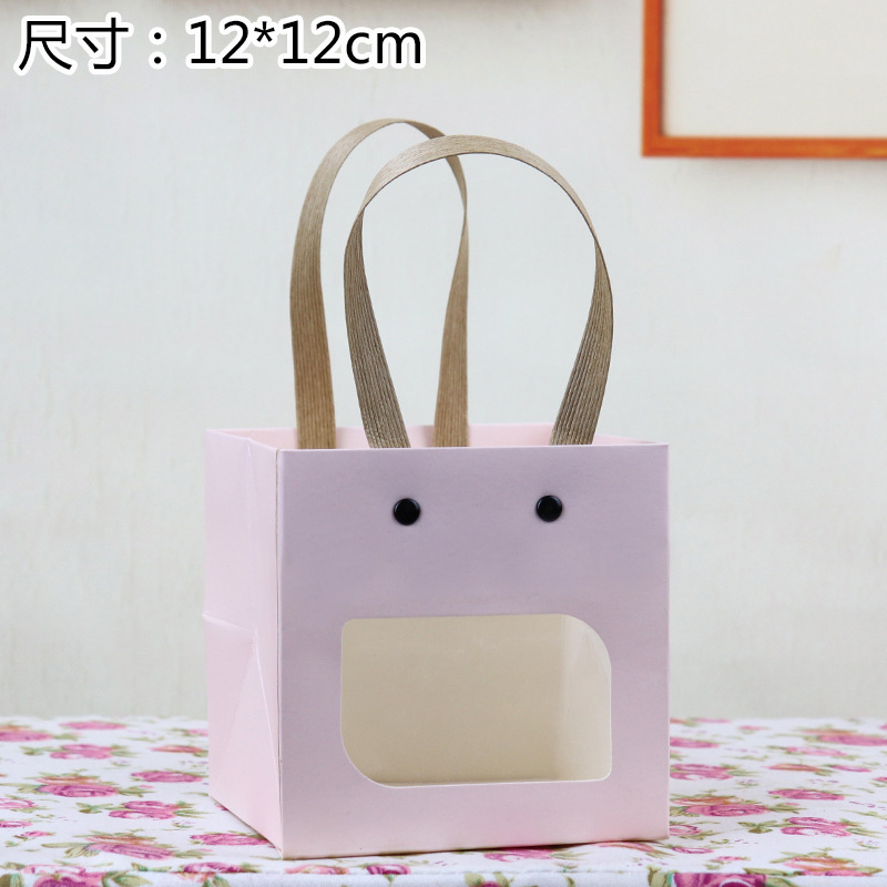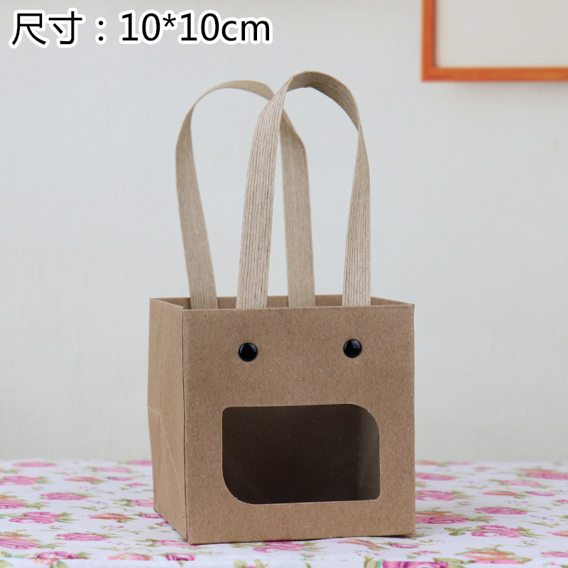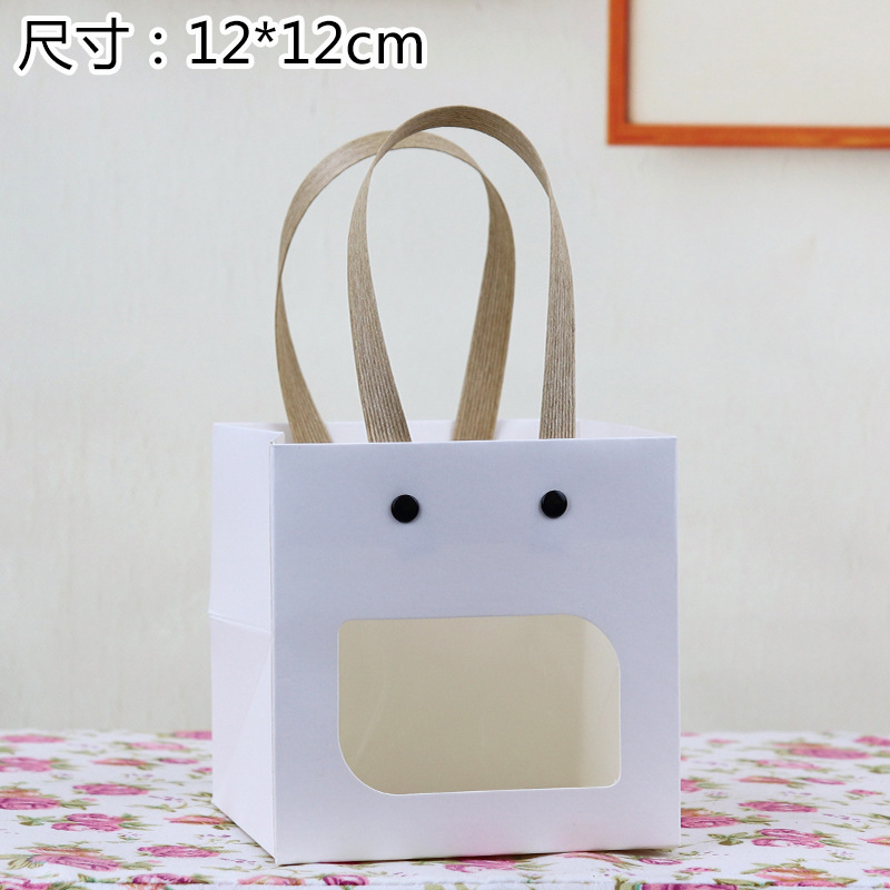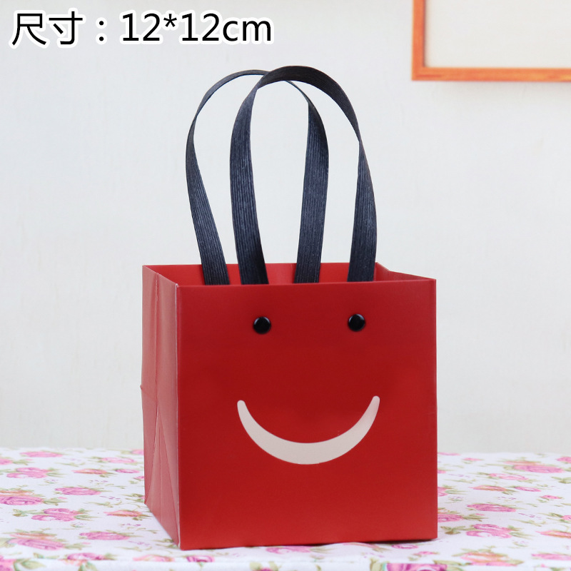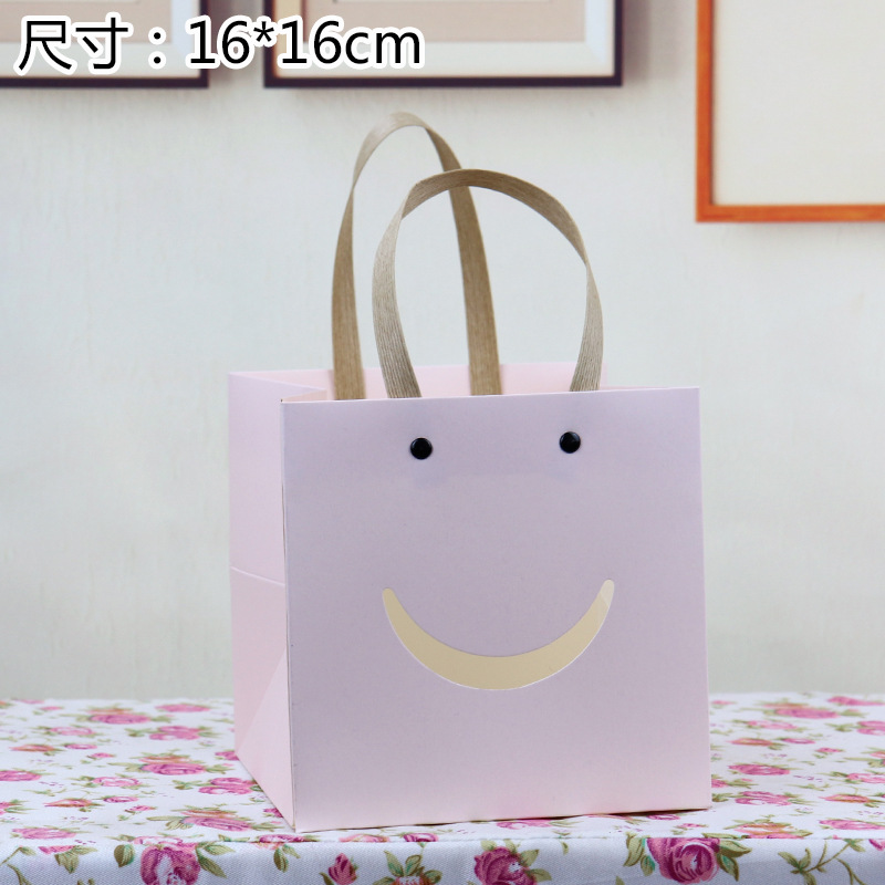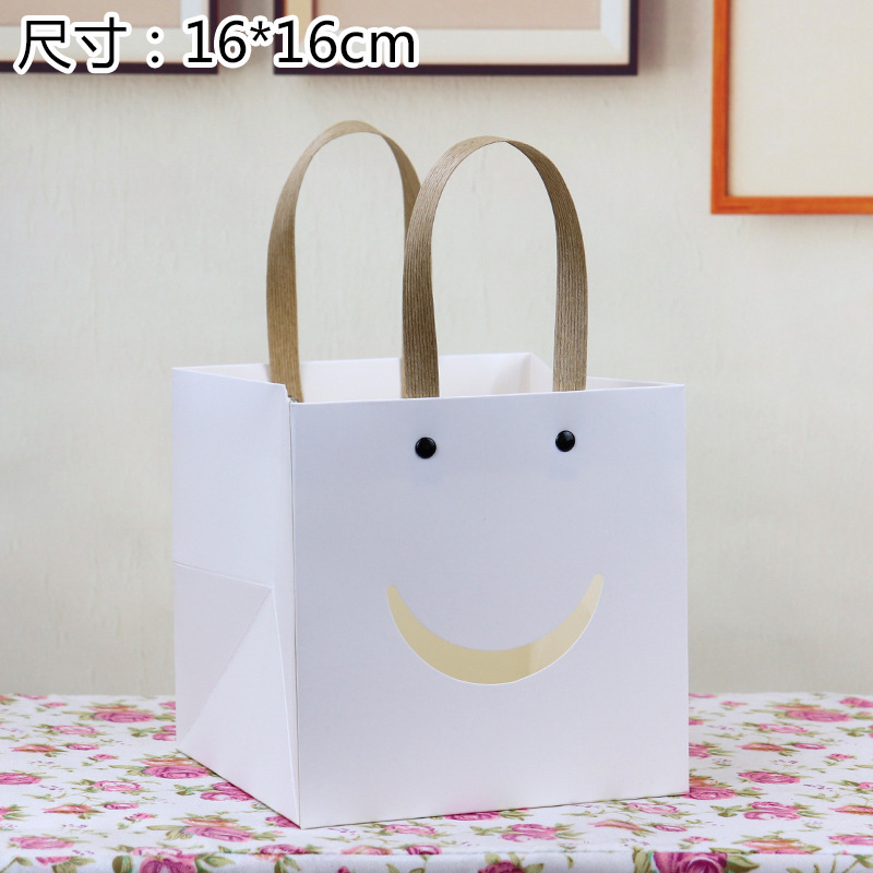 스마일리 창 크래프트 종이 미니 스퀘어 선물 가방 리벳 작은 핸드백 꽃 선물 가방