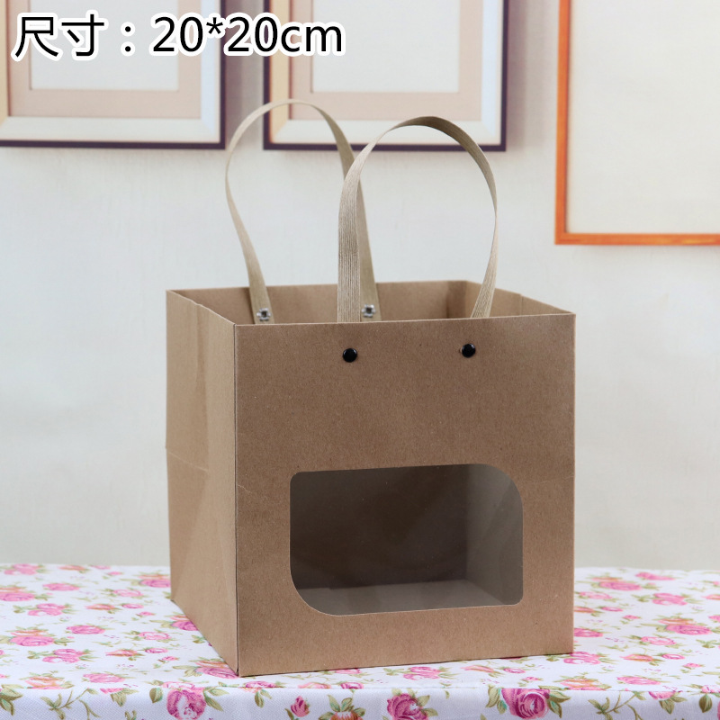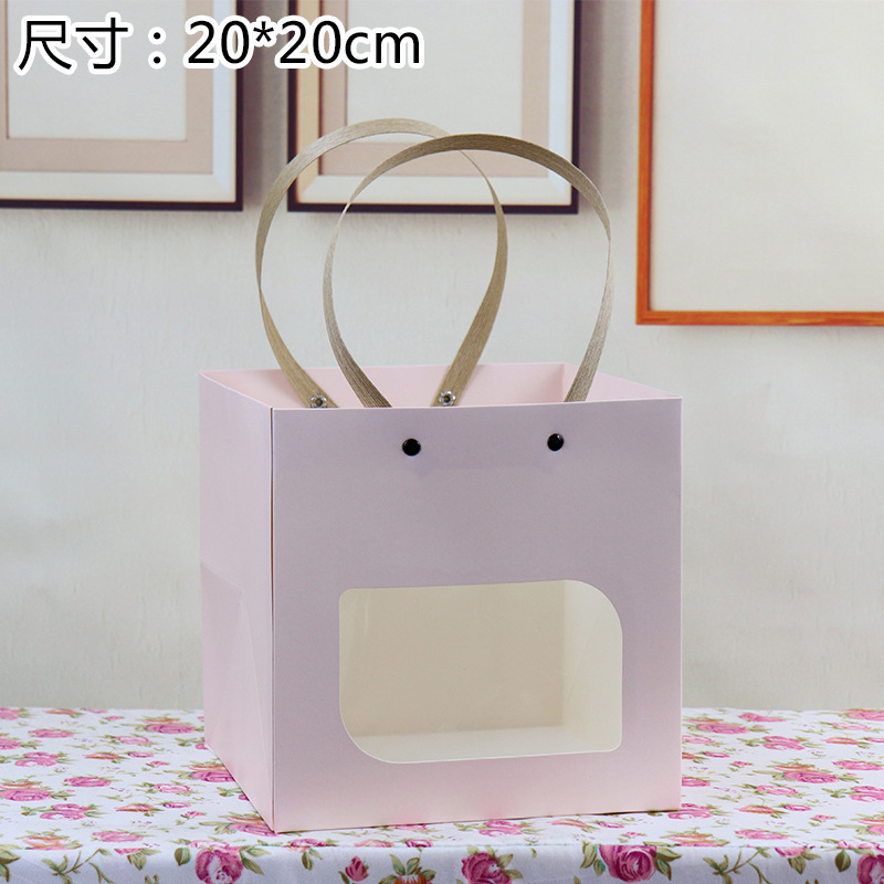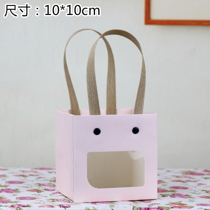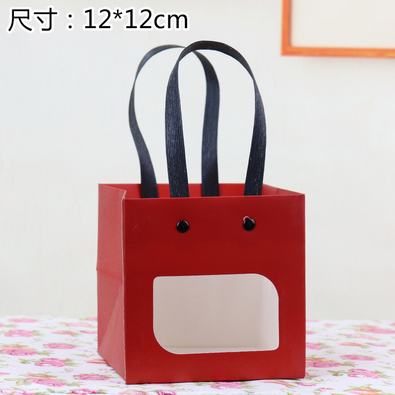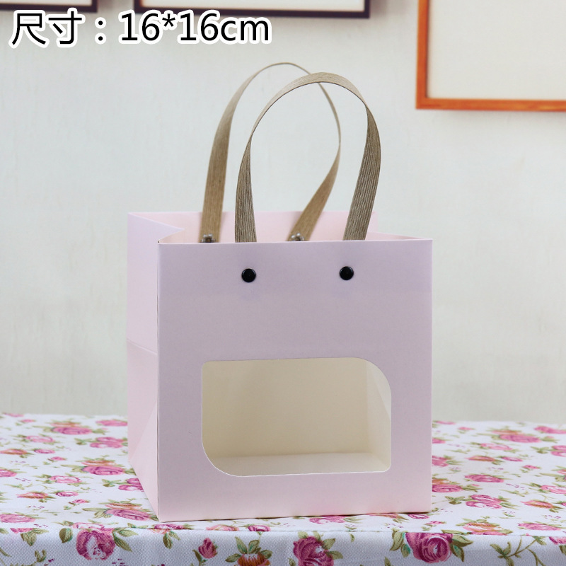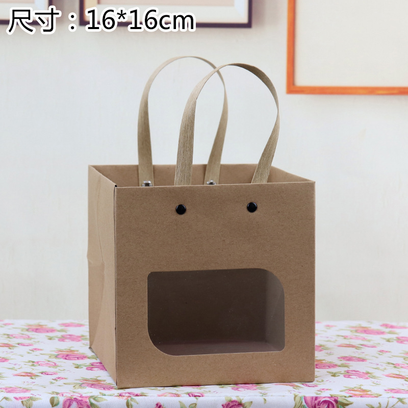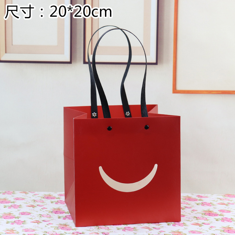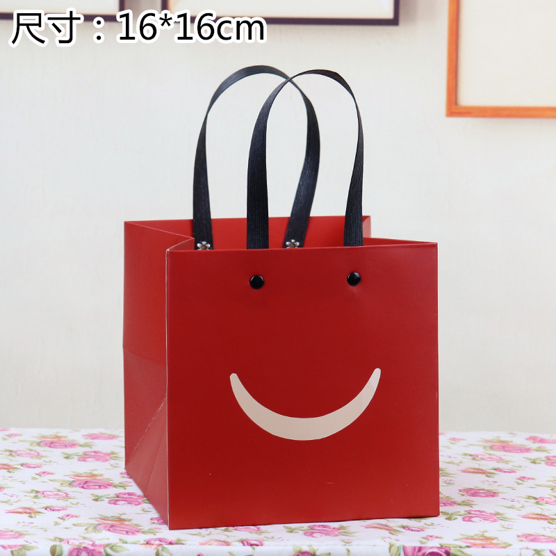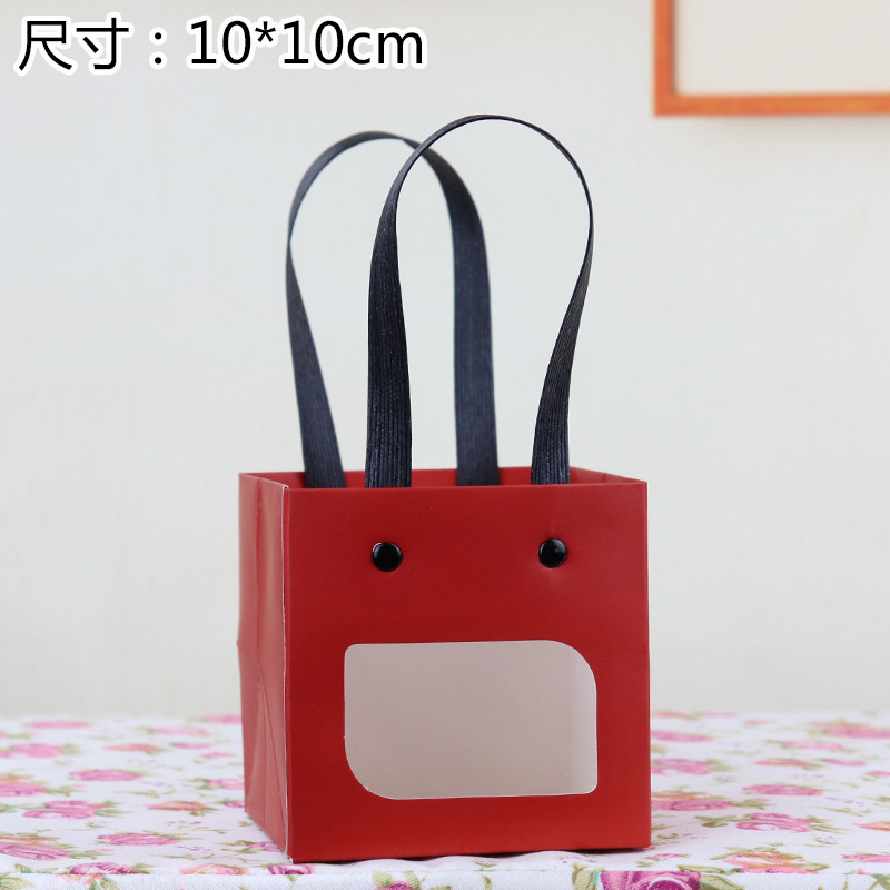 스마일리 창 크래프트 종이 미니 스퀘어 선물 가방 리벳 작은 핸드백 꽃 선물 가방