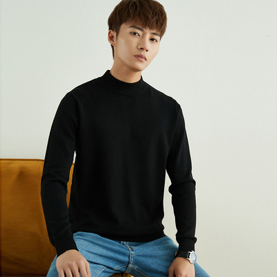 秋冬季羊绒衫男商务青年半高领套头打底衫加厚保暖羊绒针织衫男装