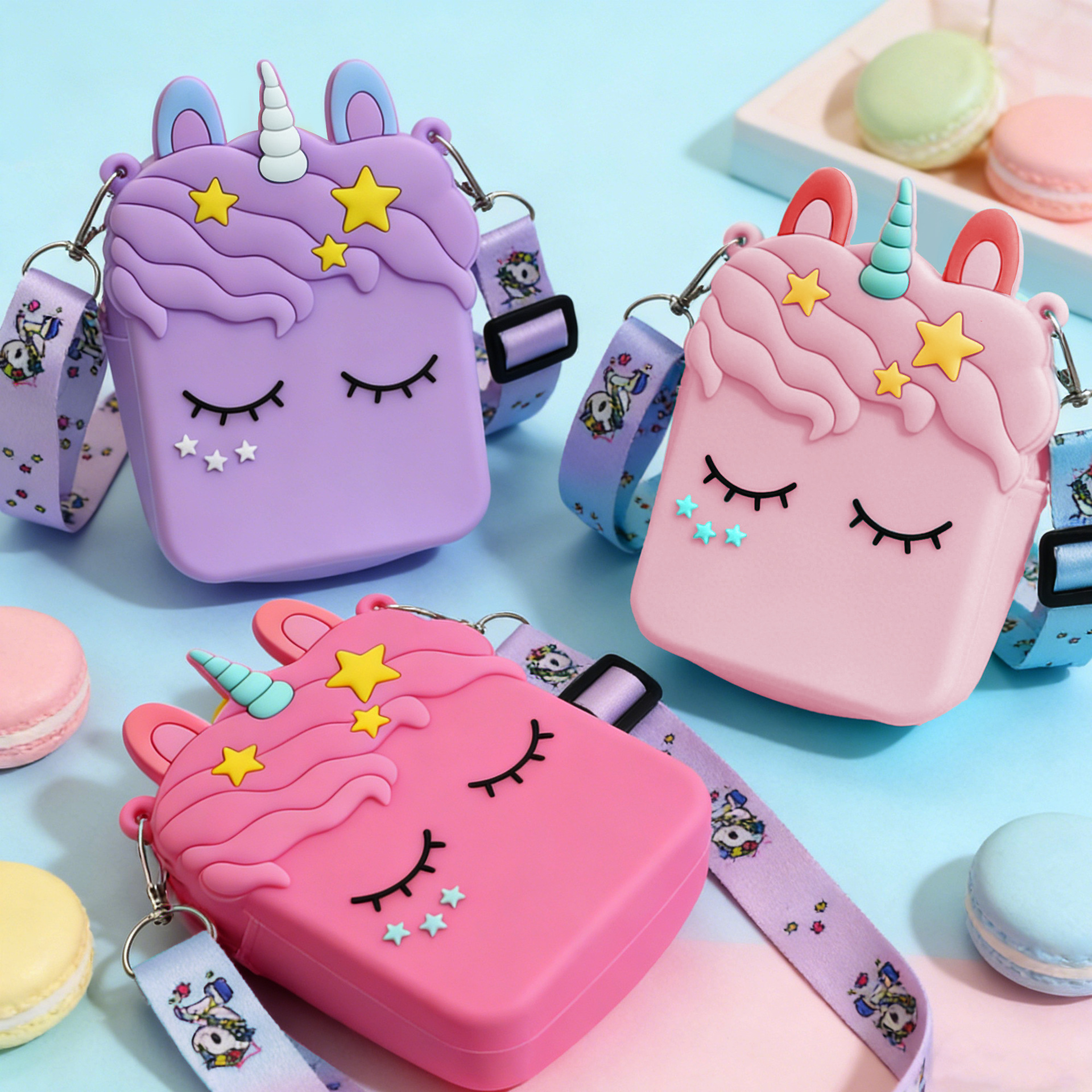• 스퀘어 퍼플 유니콘 프레스 숄더백