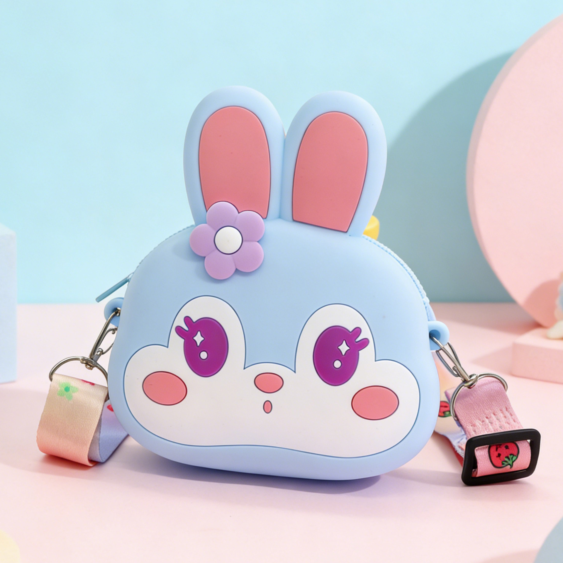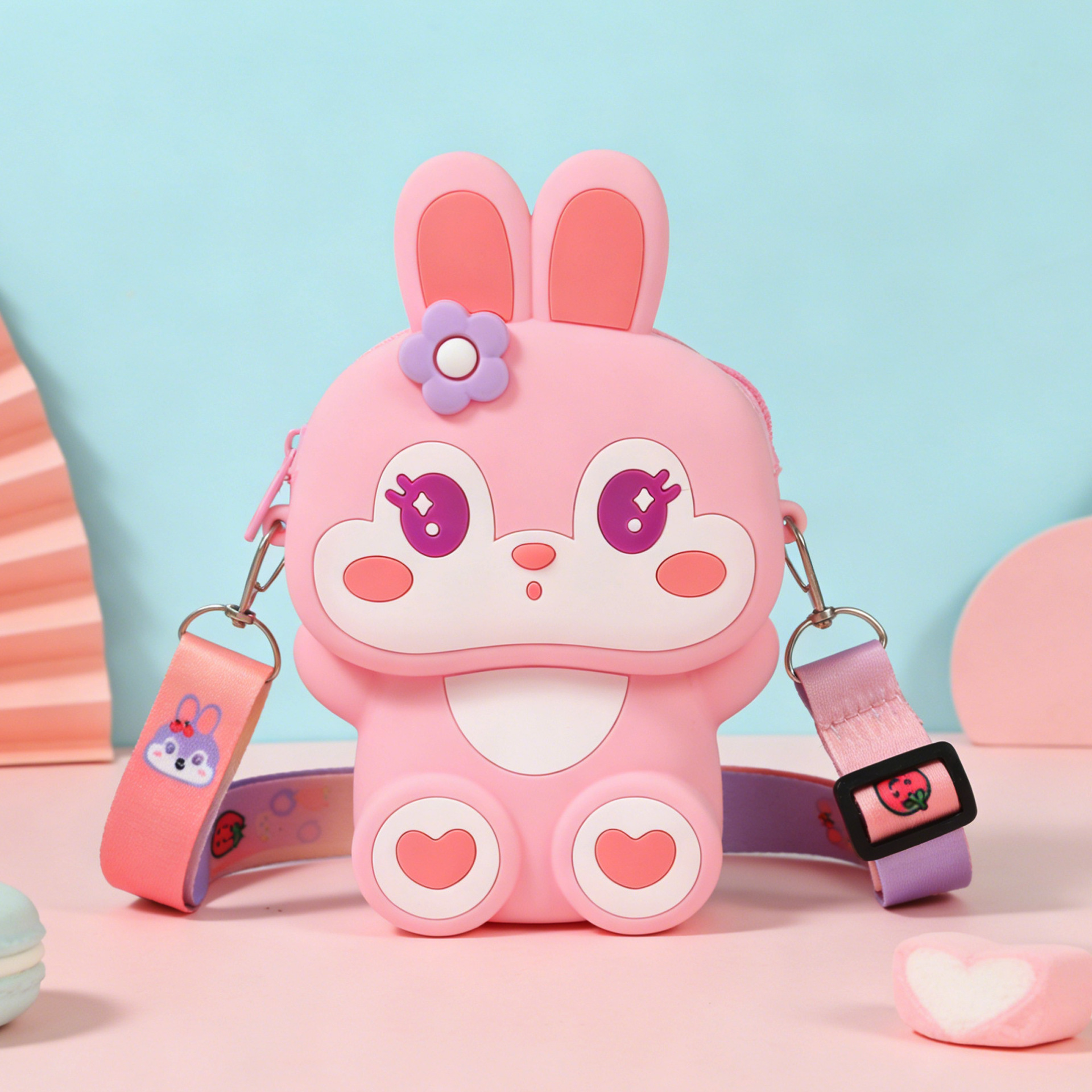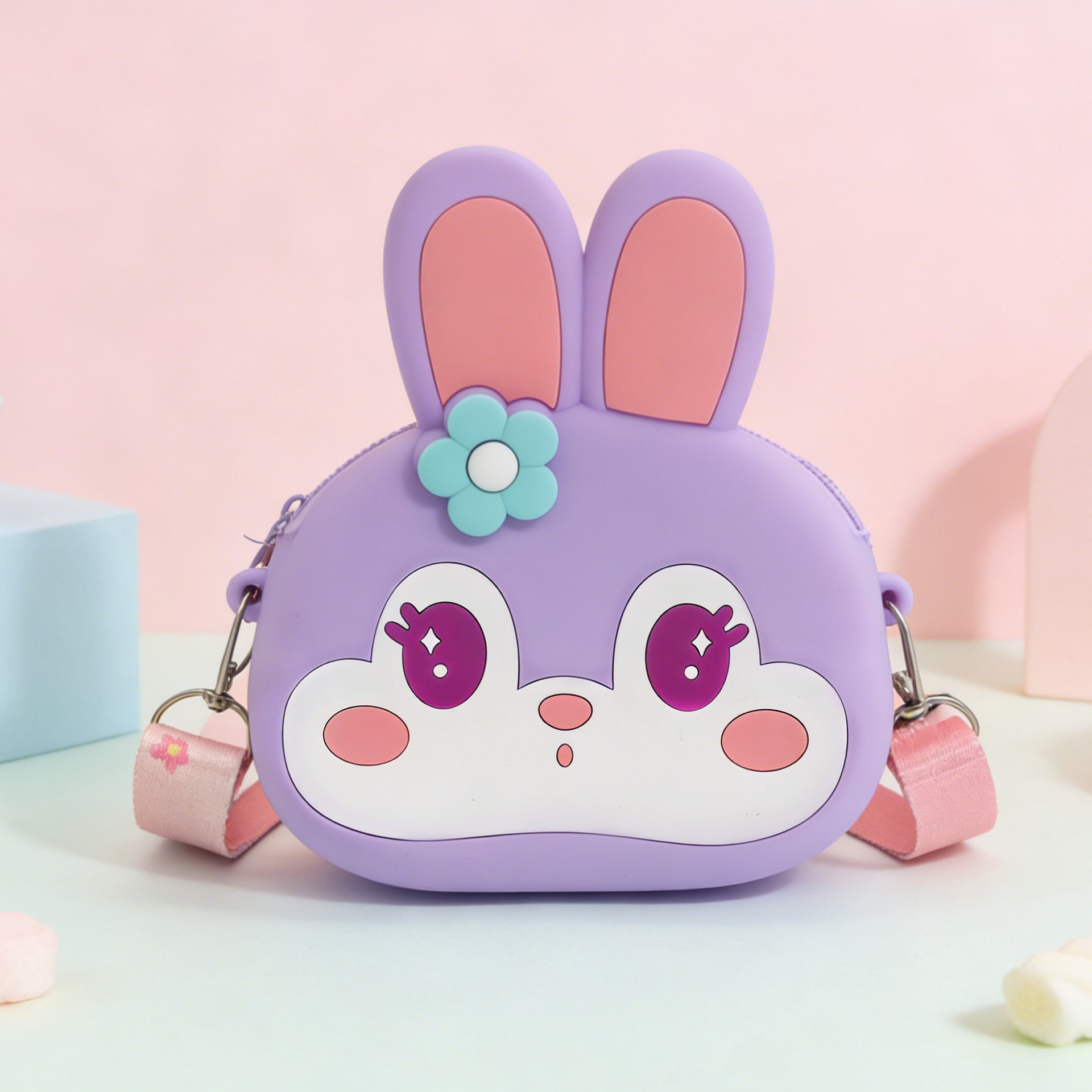 • 라운드 핑크 꽃 유니콘 프레스 숄더백