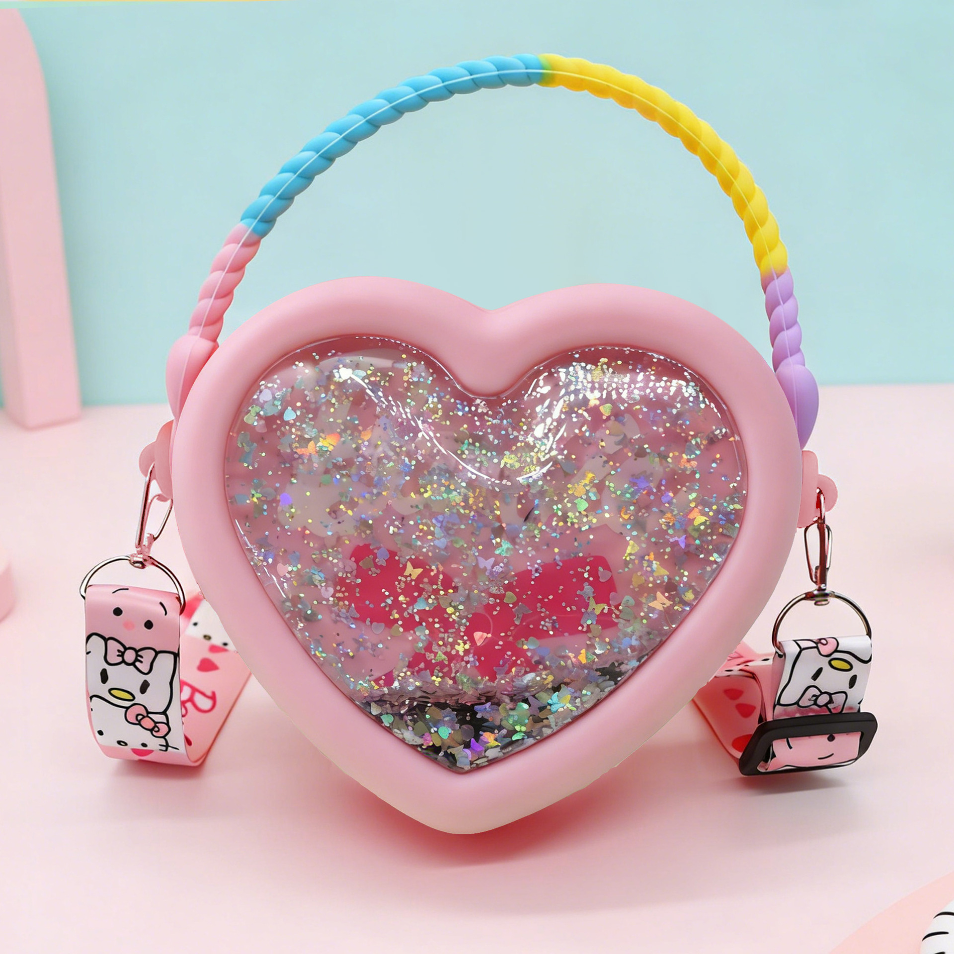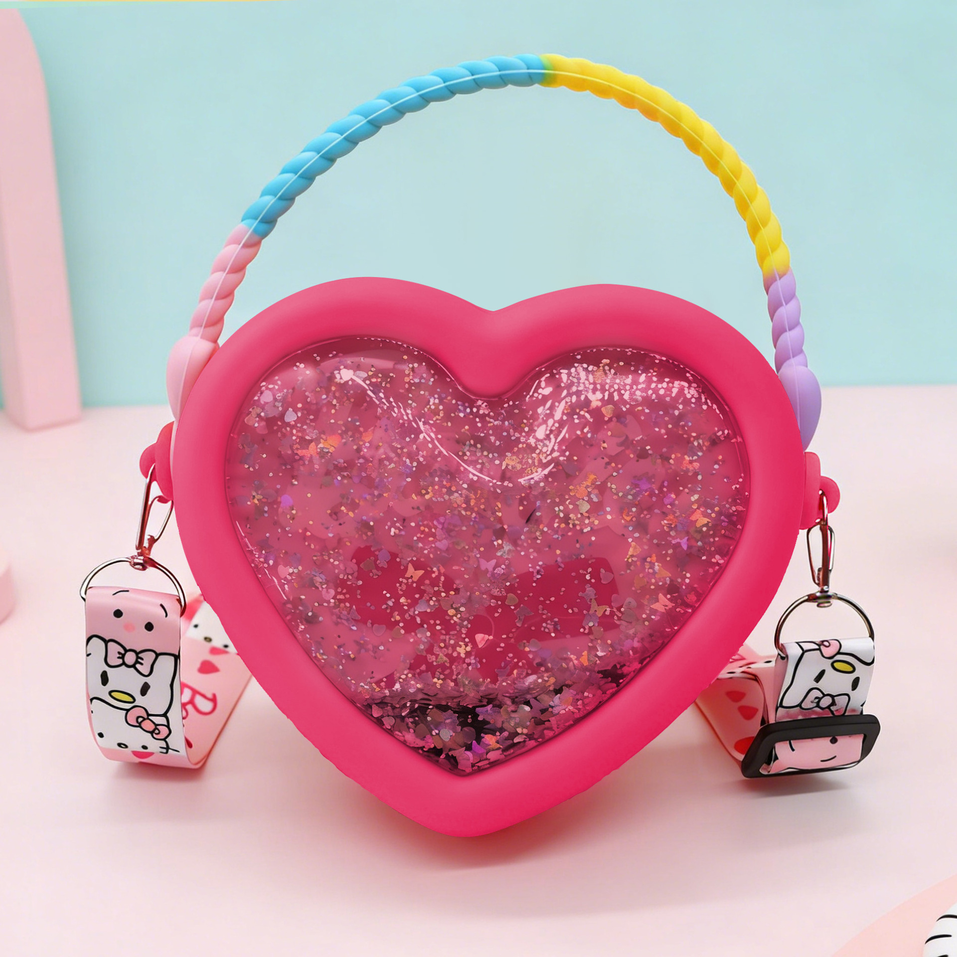 • 글리터 로즈 하트 숄더백