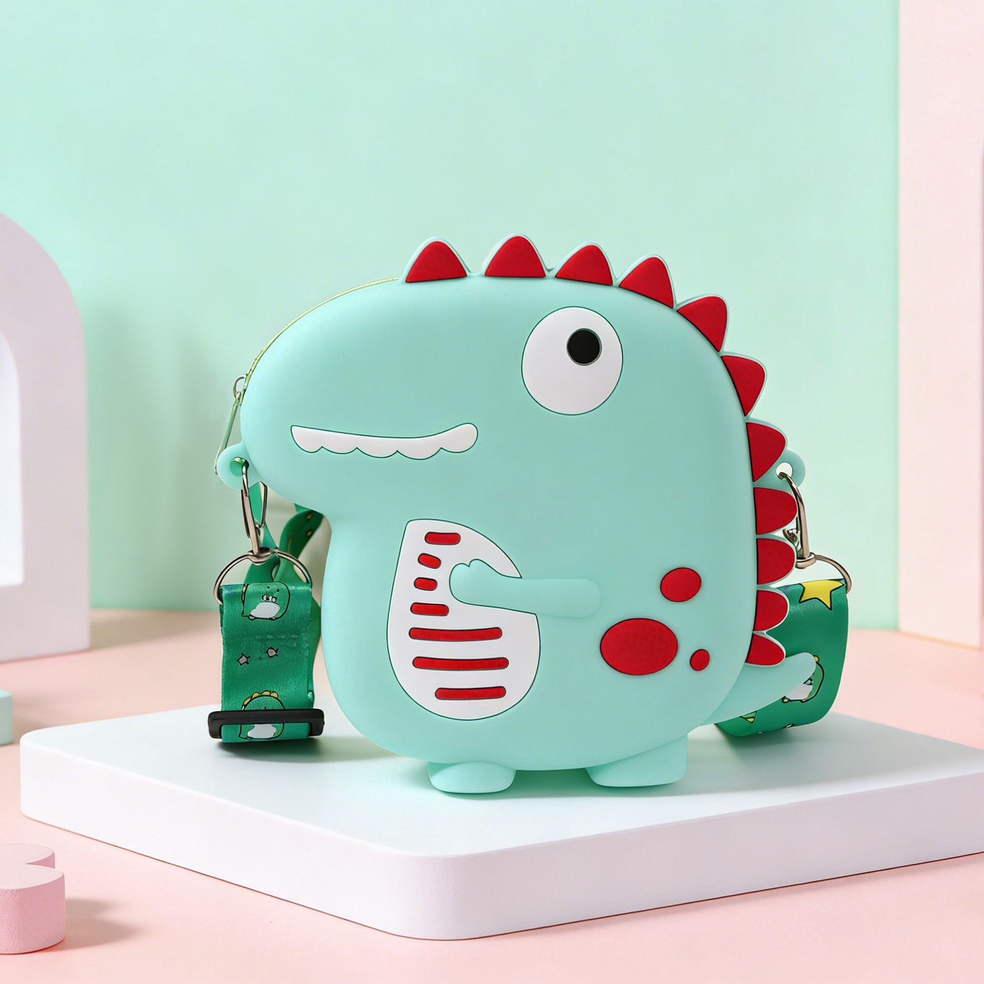 • 녹색 이빨 드러낸 공룡 숄더백