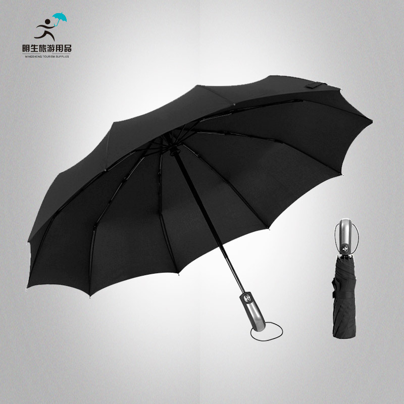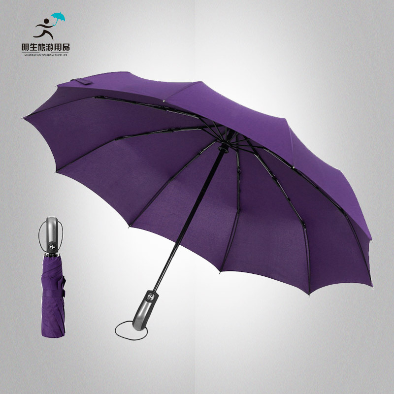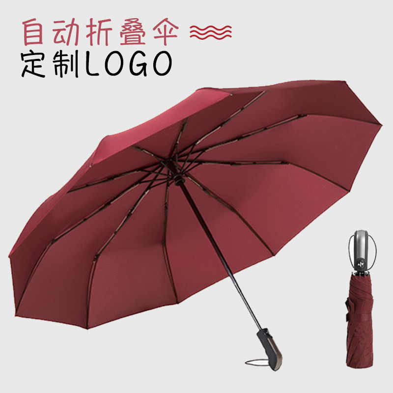 맞춤형 10 본 자동 접는 우산 남성용 자동 우산 이중 사용 2 인용 초대형 3 중 단색 광고 우산스토어 가기