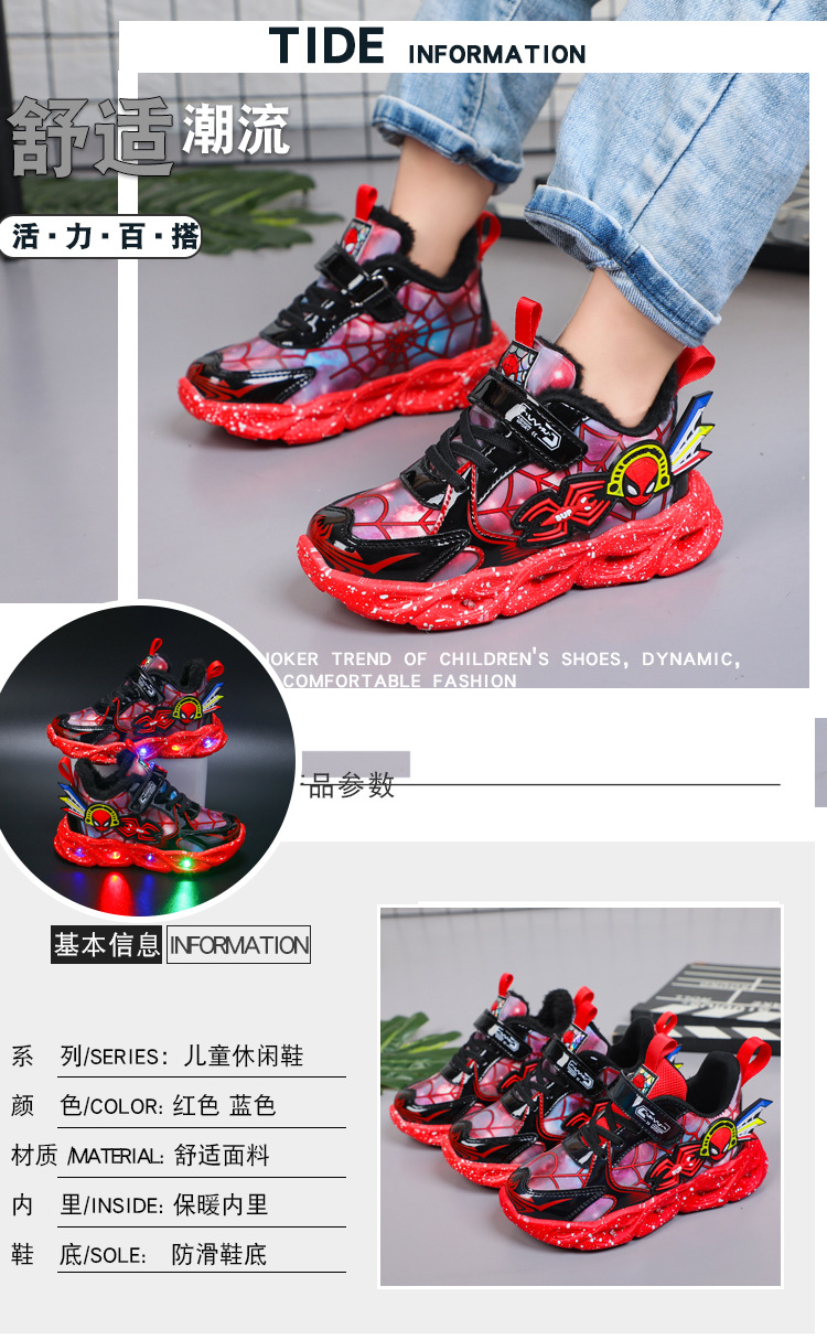 도매 조명 운동화 2025 가을 겨울 신상 가죽 소재 따뜻한 남아용 신발 어린이 러닝화스토어 가기