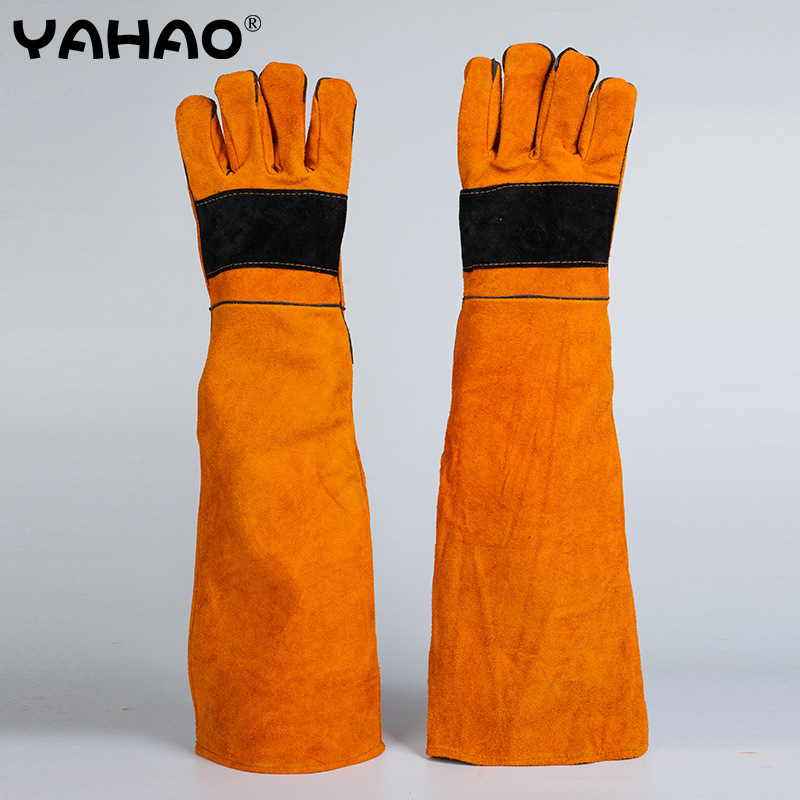Cowhide Lined 장갑 노동 보호 장갑 60CM 안티 애완 동물 고양이와 개 물고 스크래치 두꺼운 안티 바이트 장갑 L
