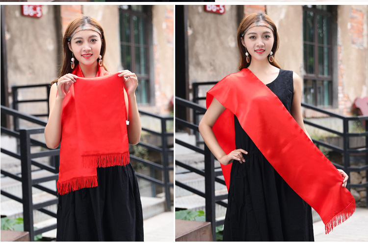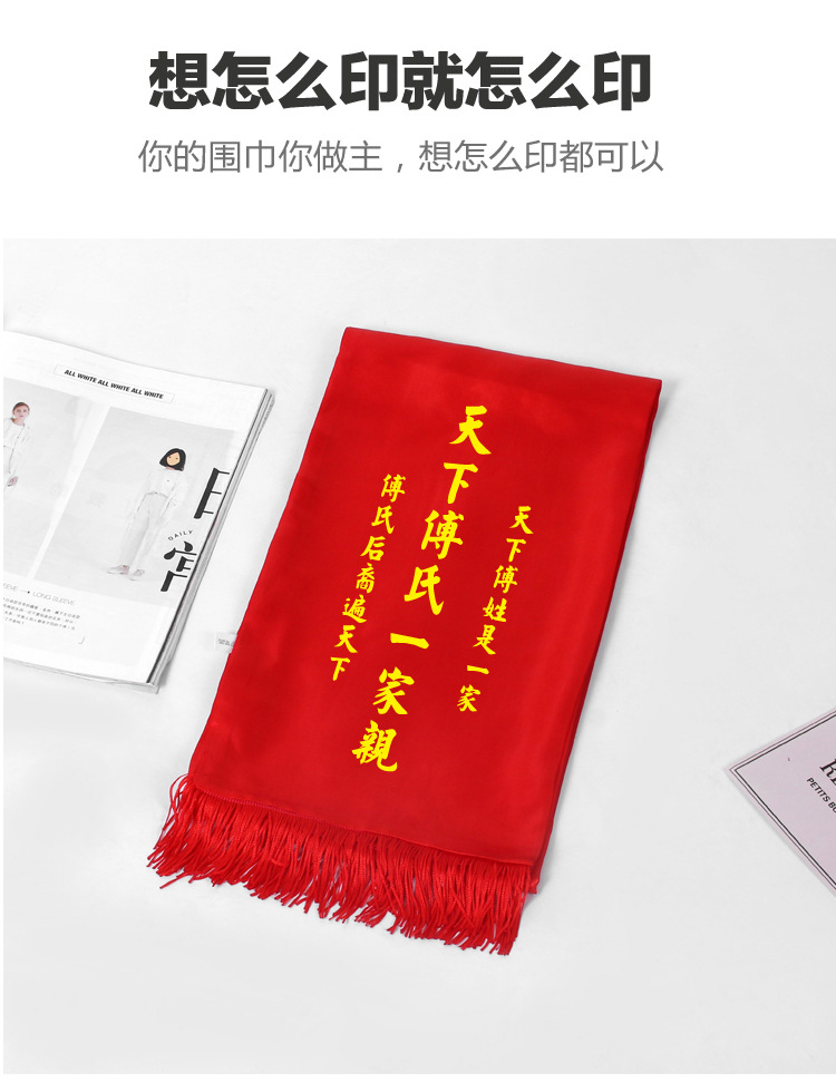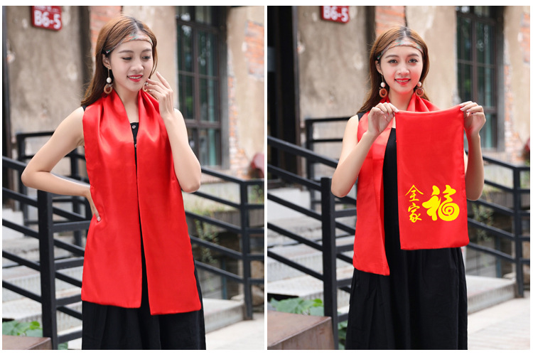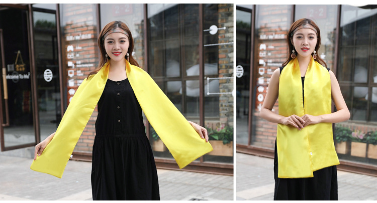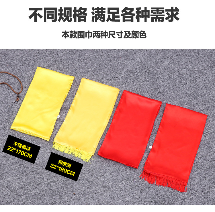 중국 빨간 스카프 연례 회의 조상 예배 긴 스카프 실크 새틴 예배 행사 유교 스카프 인쇄 노란 스카프 로고스토어 가기