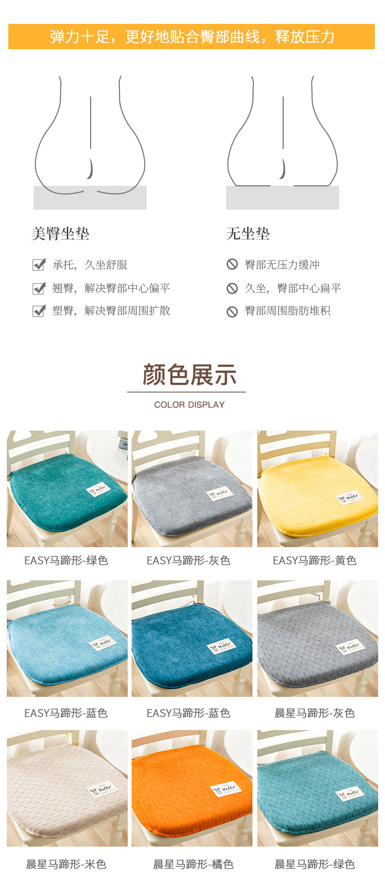 두꺼운 메모리 폼 시트 쿠션 셔닐 실 미끄럼 방지 식당 의자 쿠션 사무실 좌식 의자 학생 엉덩이 쿠션 도매스토어 가기