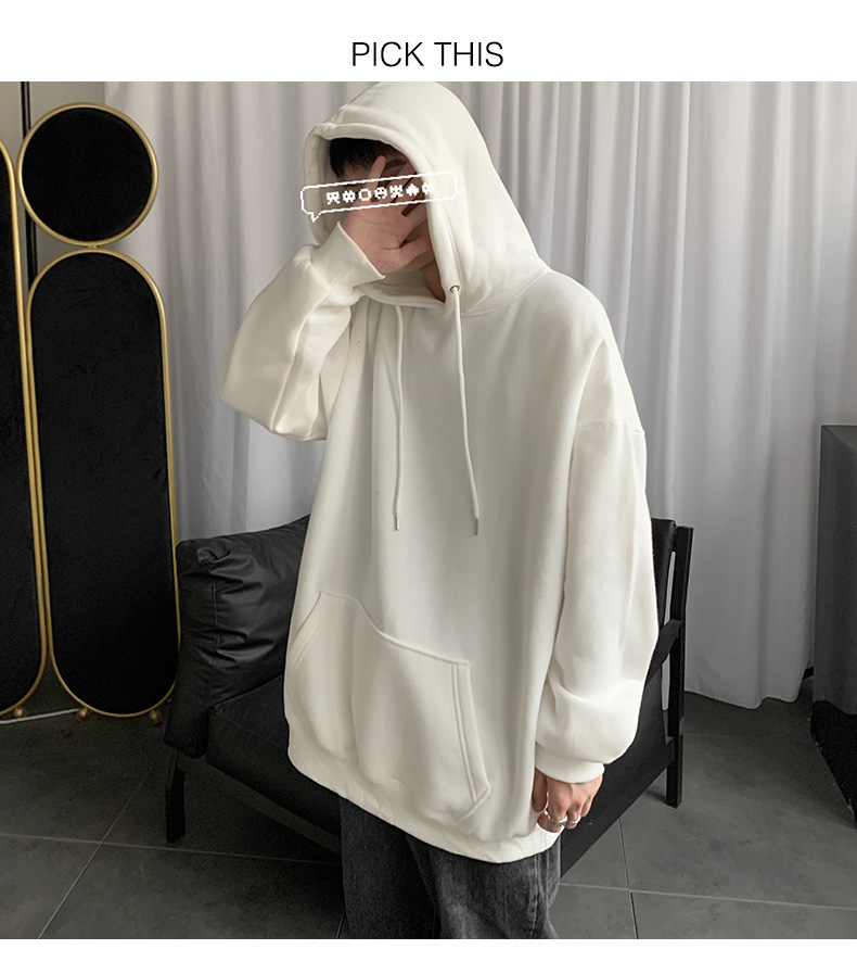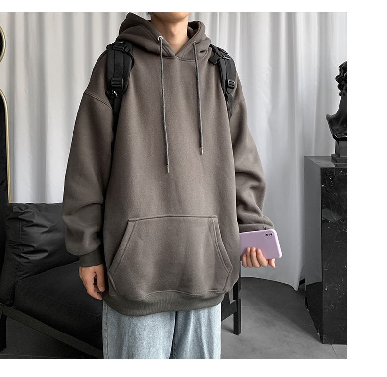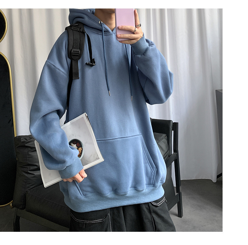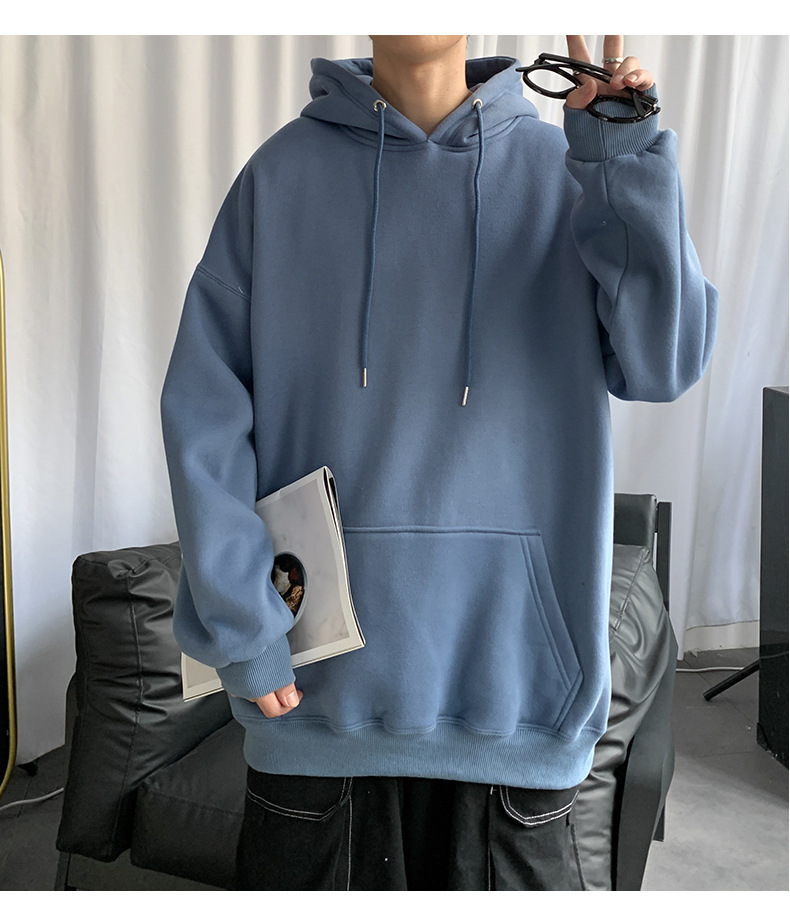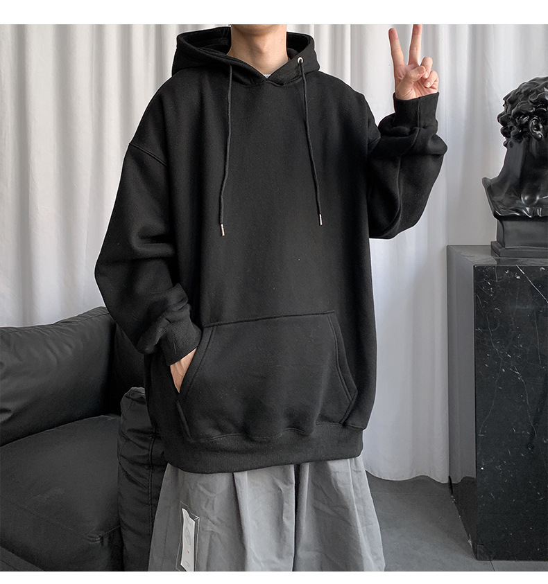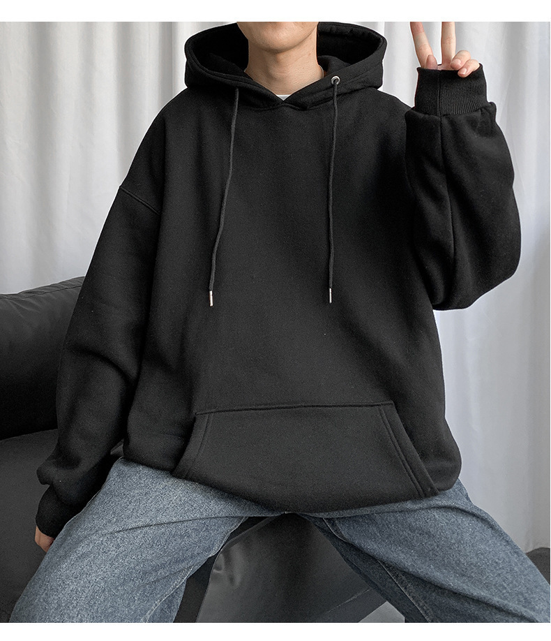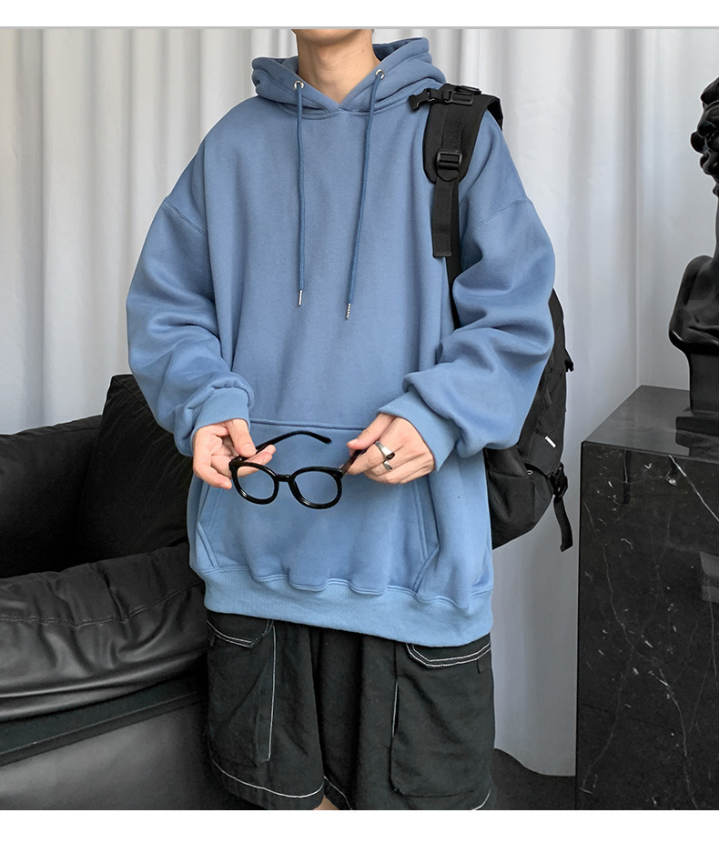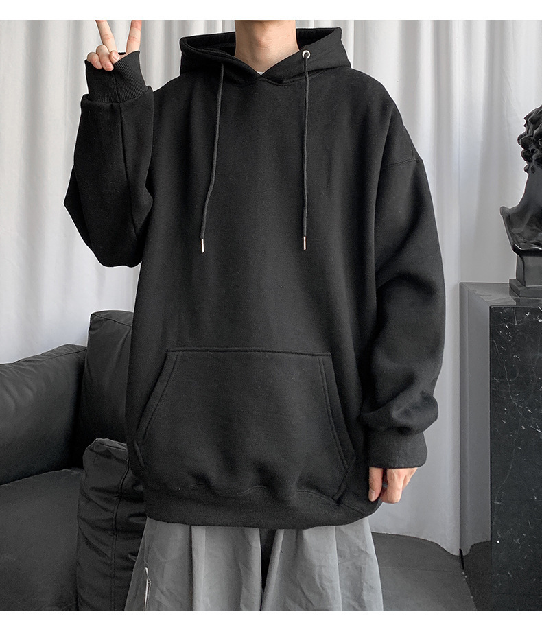 男士纯色卫衣春秋款ins港风连帽外套宽松潮流百搭秋季上衣服嘻哈
