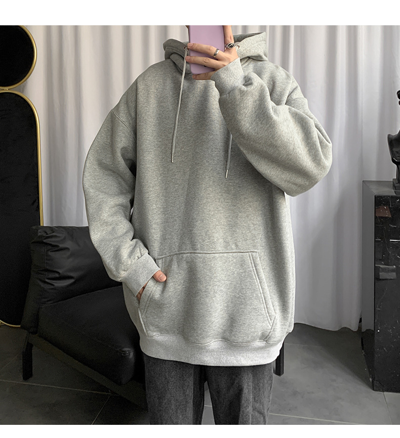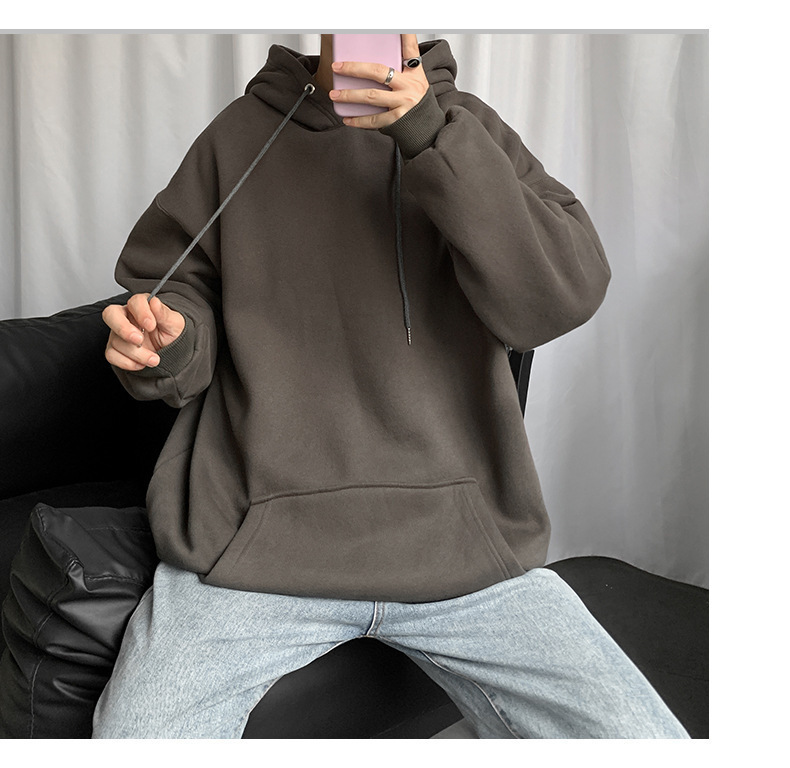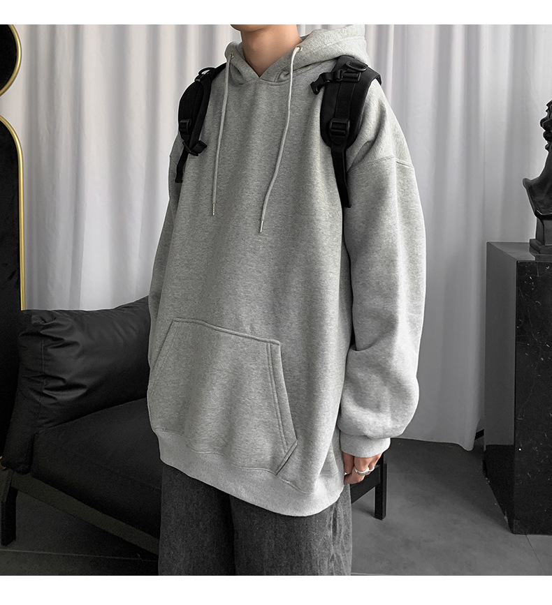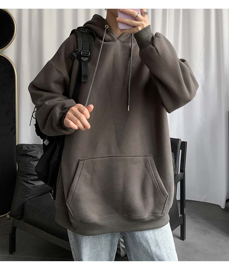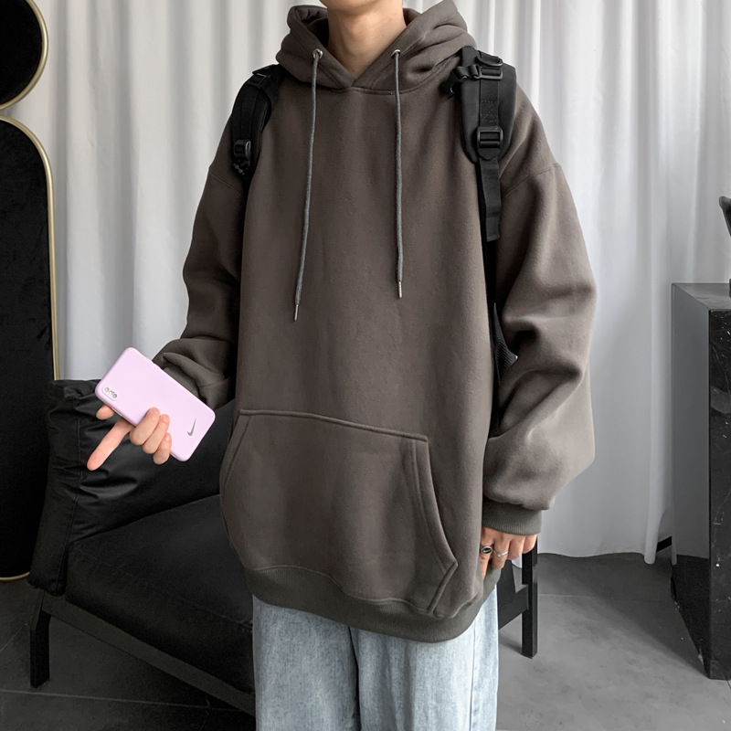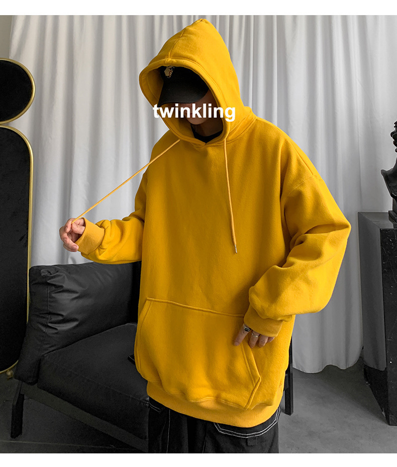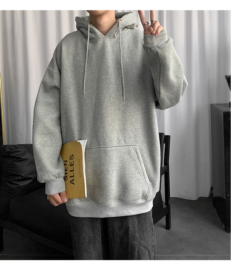 男士纯色卫衣春秋款ins港风连帽外套宽松潮流百搭秋季上衣服嘻哈