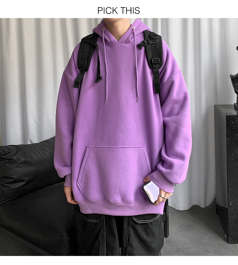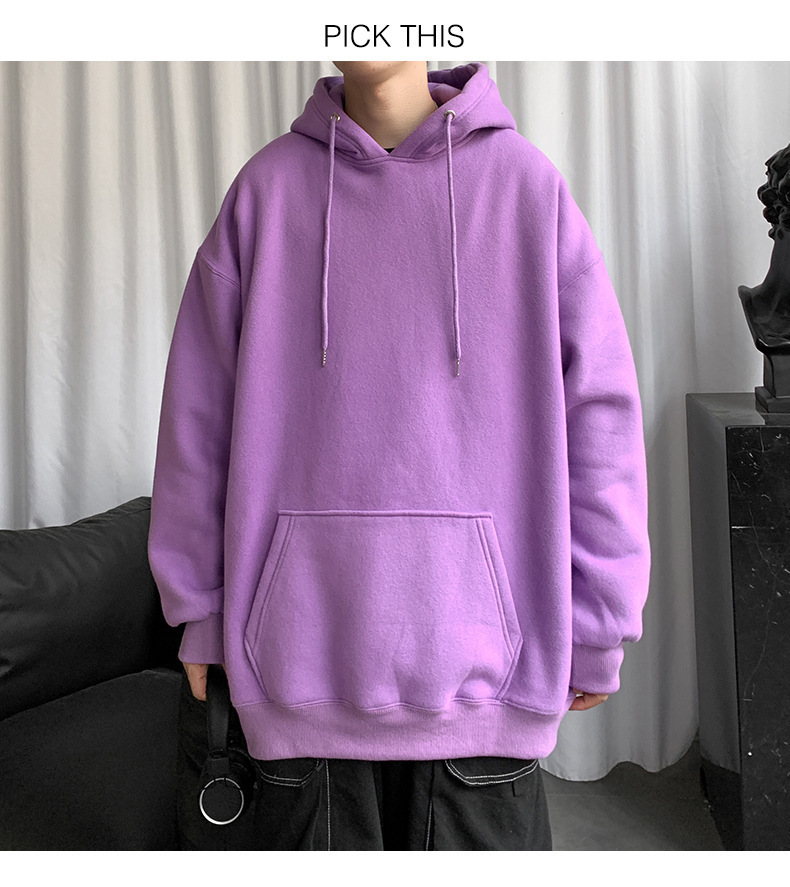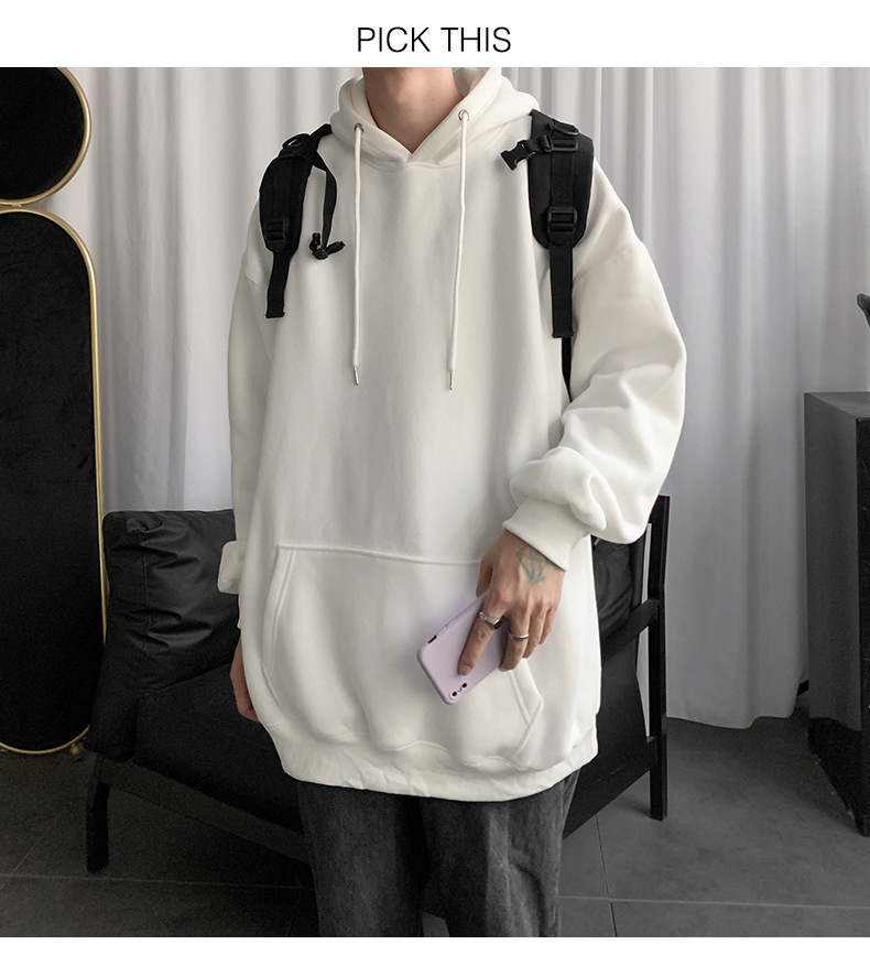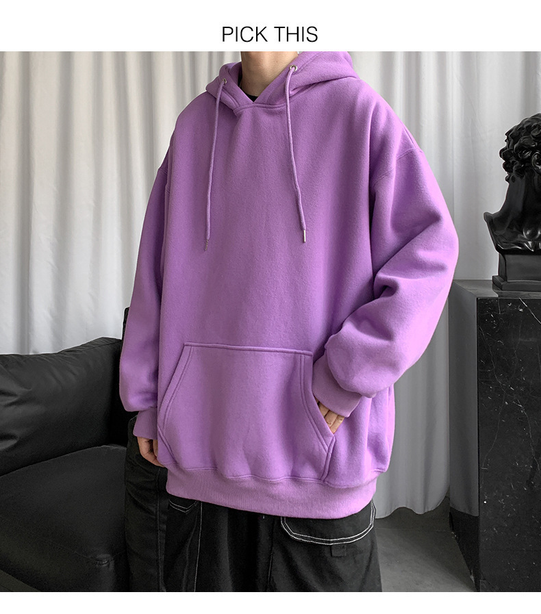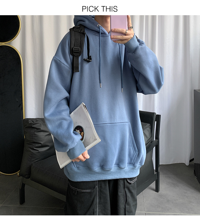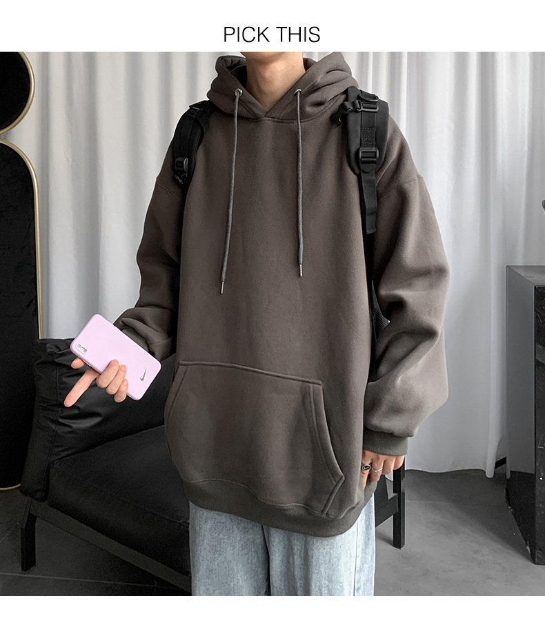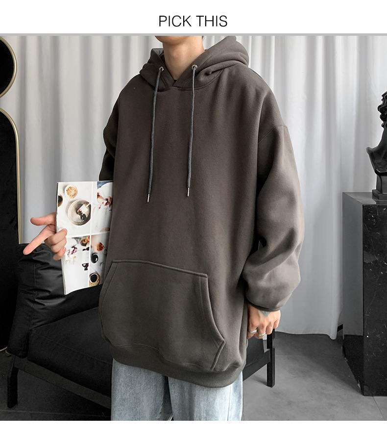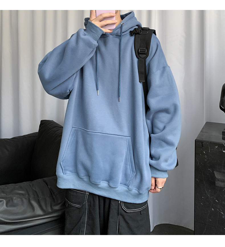 男士纯色卫衣春秋款ins港风连帽外套宽松潮流百搭秋季上衣服嘻哈